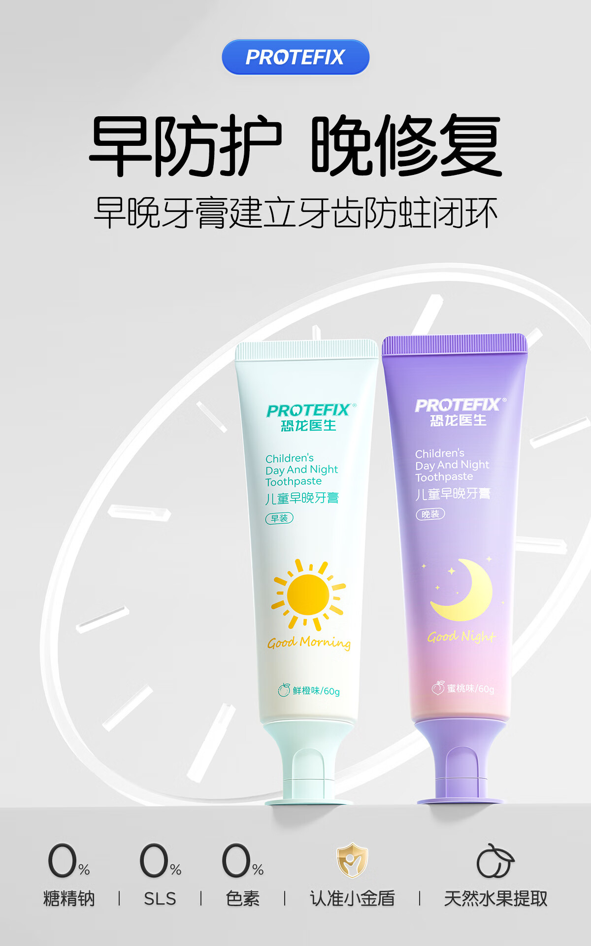 恐龙医生(PROTEFIX)儿童牙膏3-6-12岁防蛀含氟固齿德国奥拉氟小学生宝宝早晚牙膏