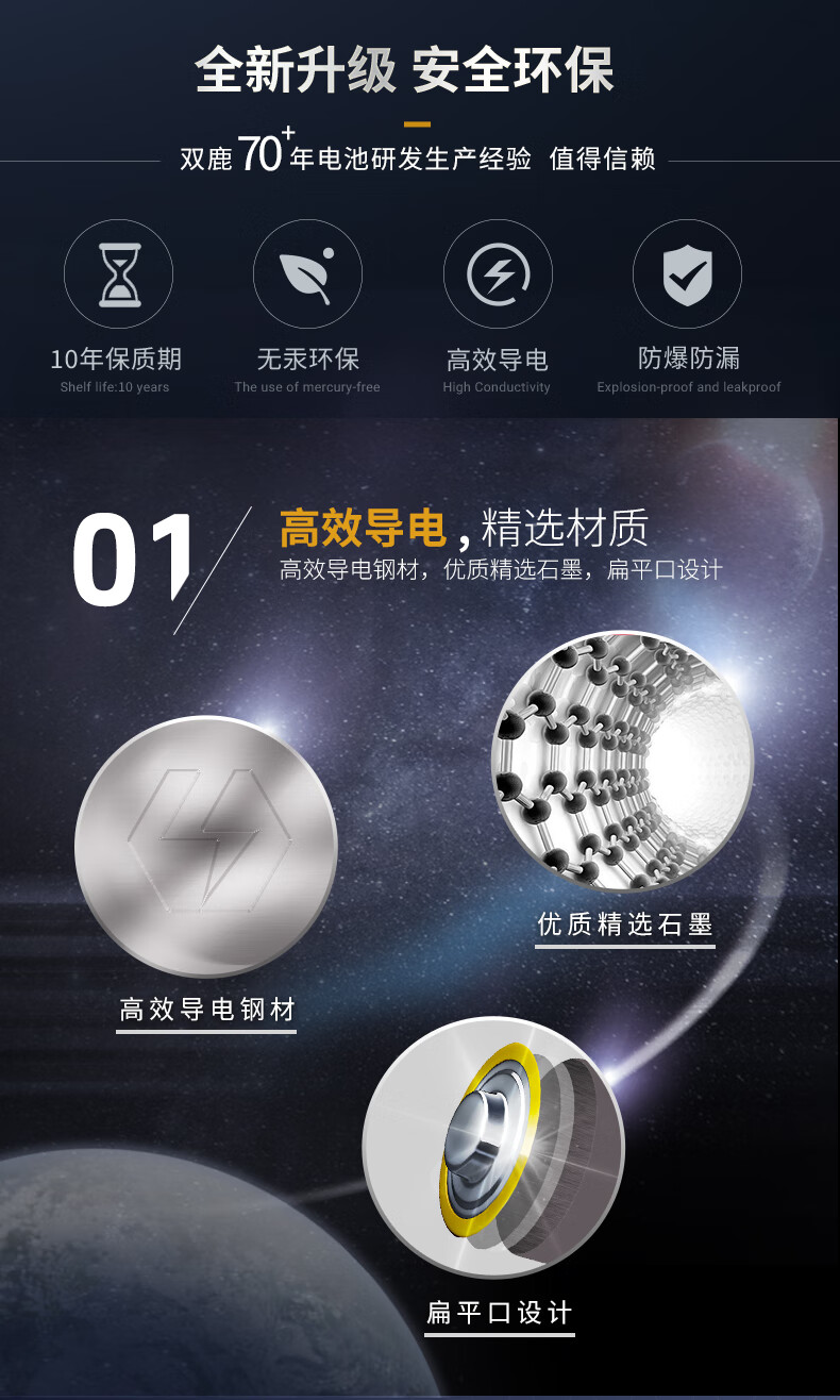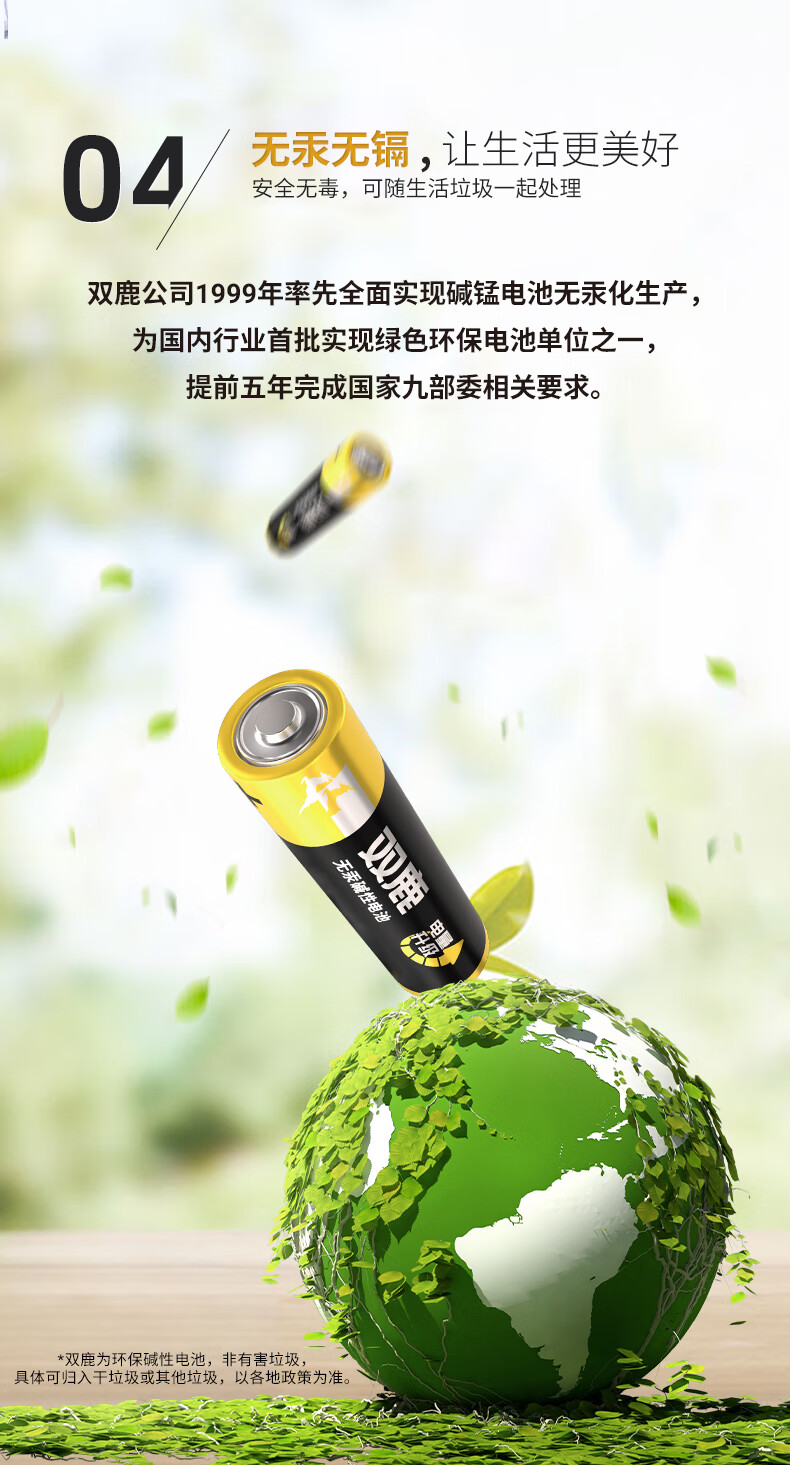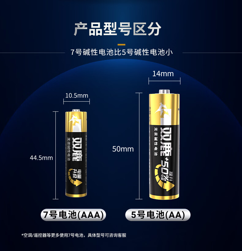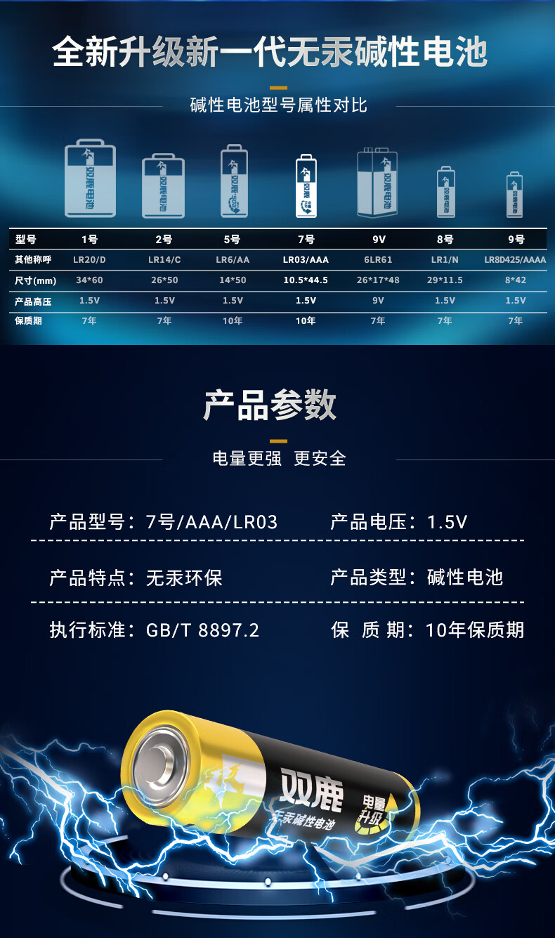 双鹿 7号电池6粒 七号碱性 适用于体温计/遥控器/鼠标键盘/电子秤/血氧仪/耳温枪等 LR03/AAA
