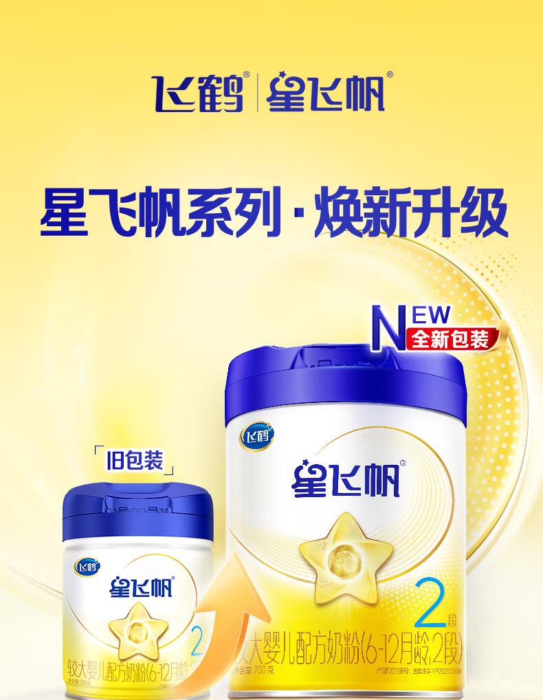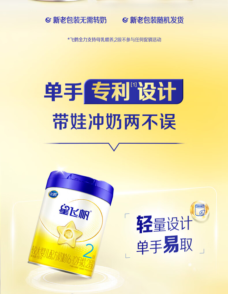飞鹤星飞帆较大婴儿配方奶粉2段(6-12月龄)700克g专利OPO 育儿补贴 2段 700g 6罐 【热销爆款】
