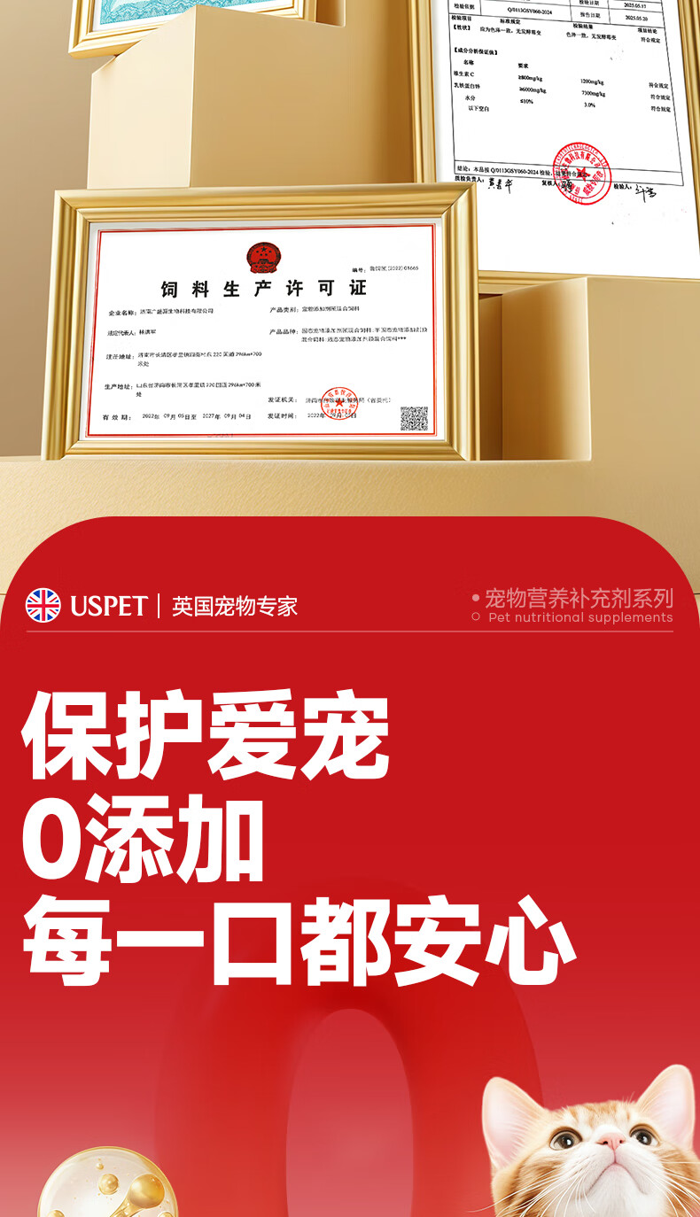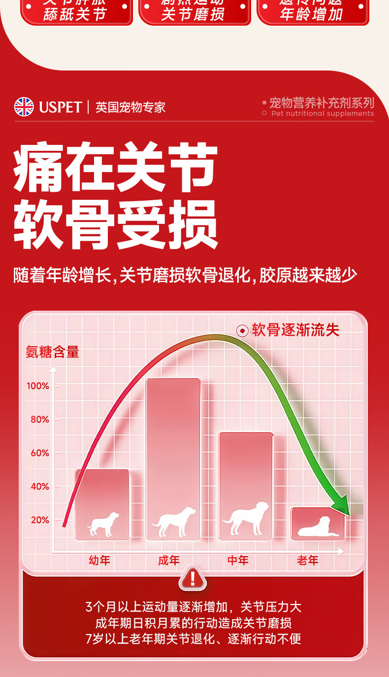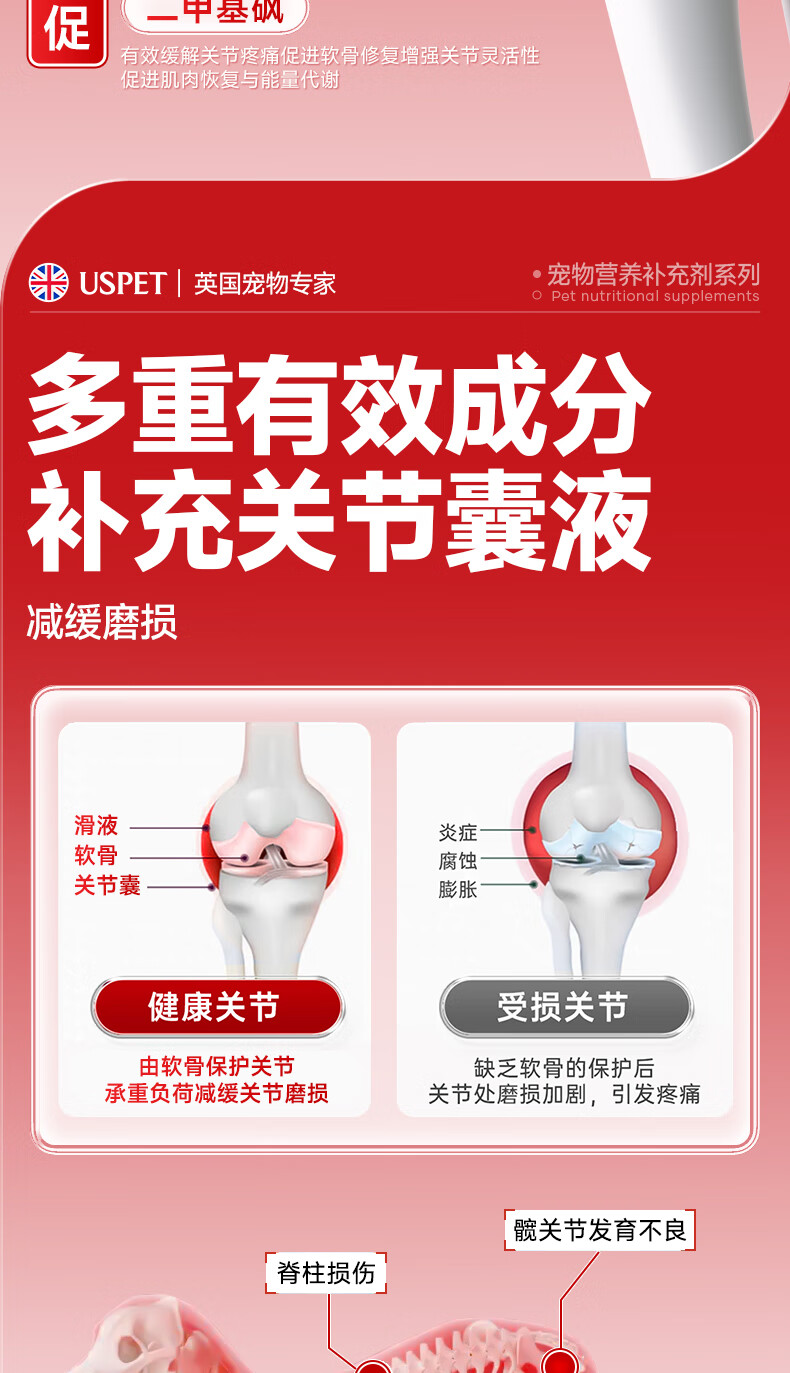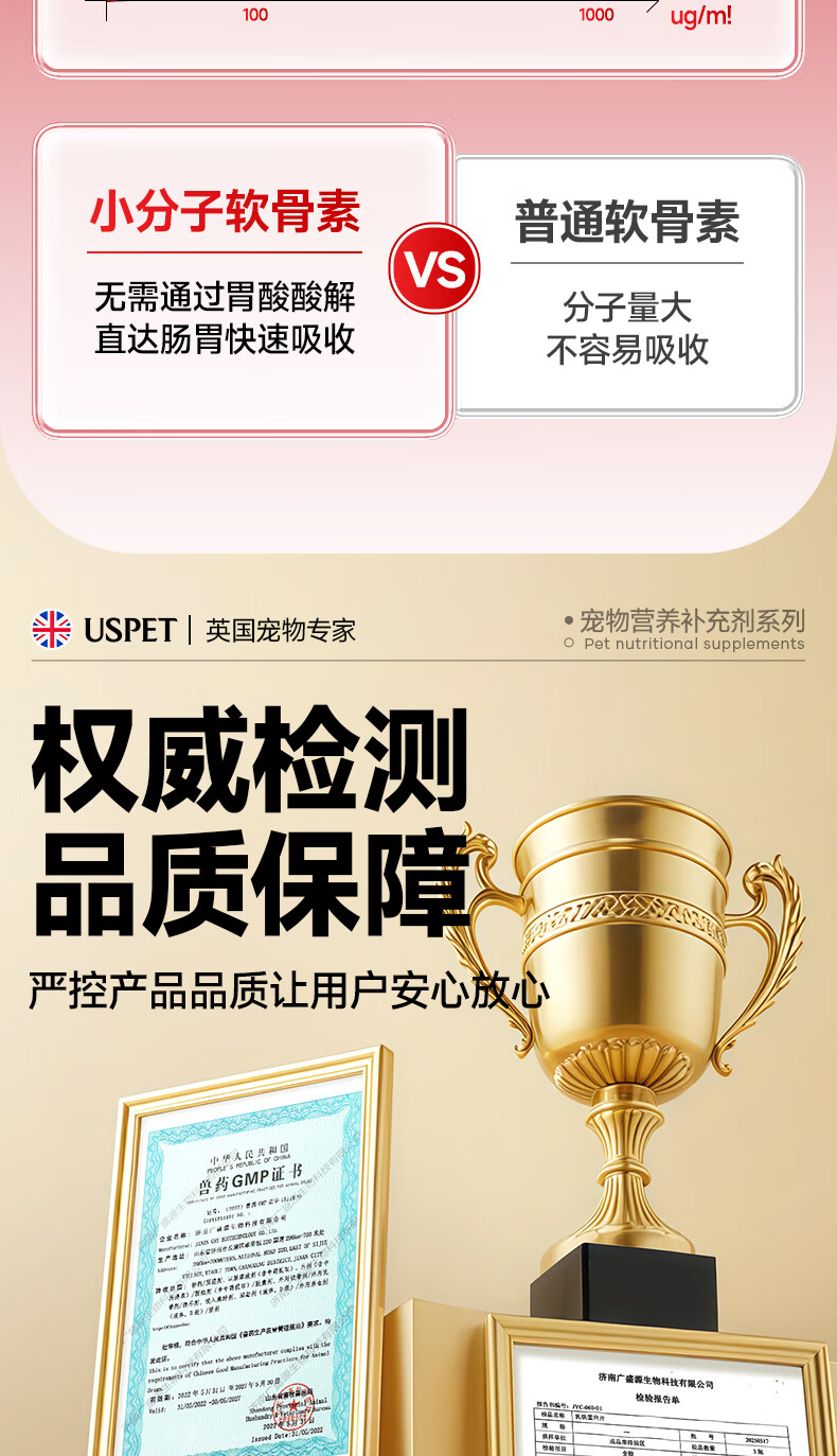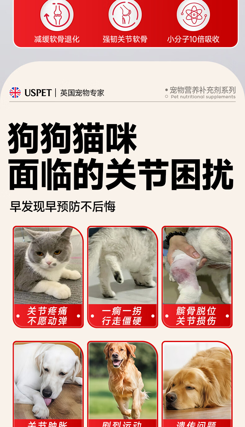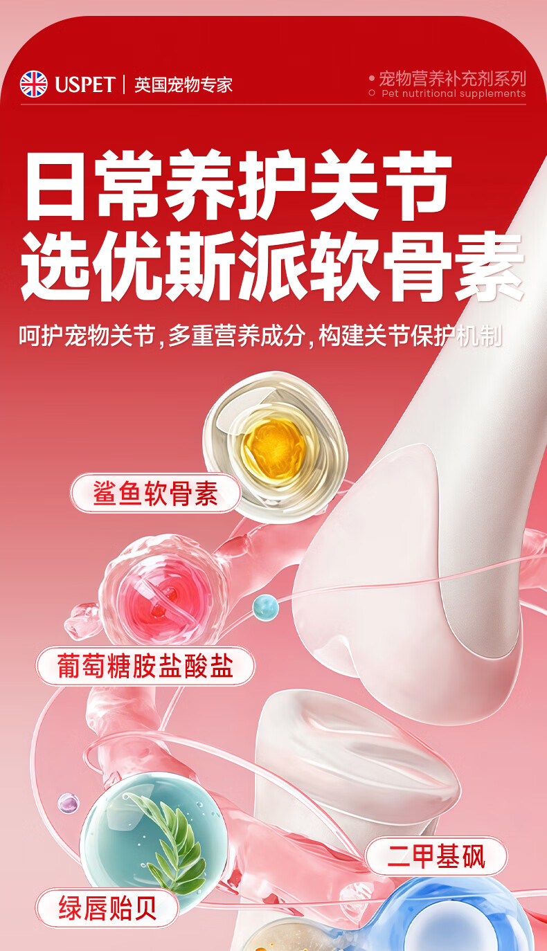USPET英国鲨鱼软骨素狗狗猫咪钙片宠物骨骼关节修复补钙健骨0.5g*200片