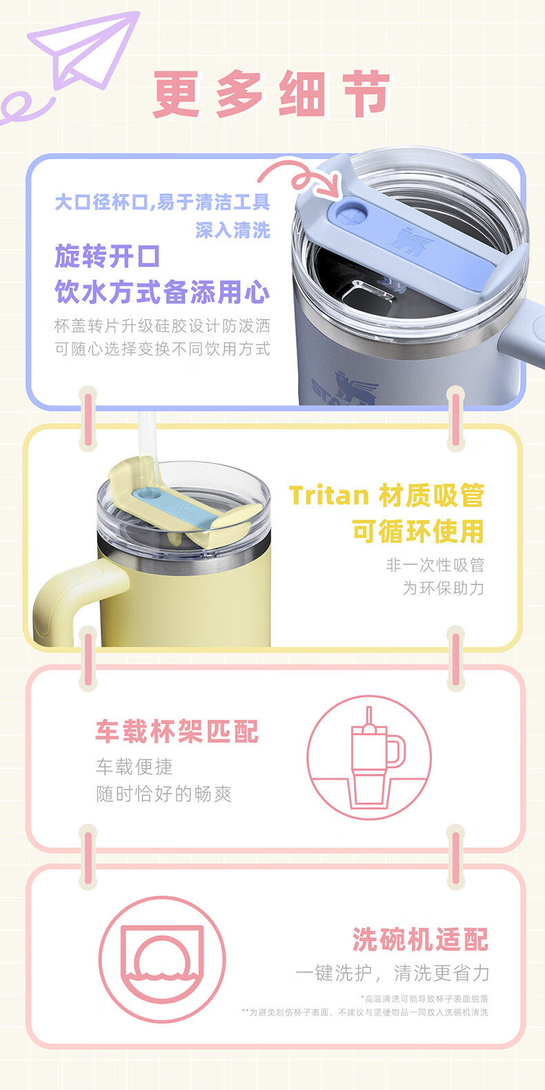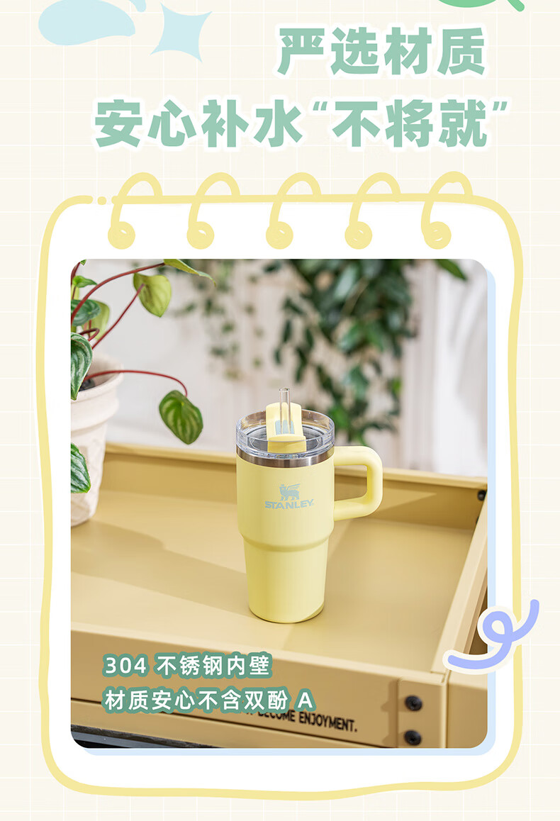 STANLEY保温杯水杯吸管杯大容量杯子保温保冷车载家居办公男女礼物 【新升级】米白色- 591ml