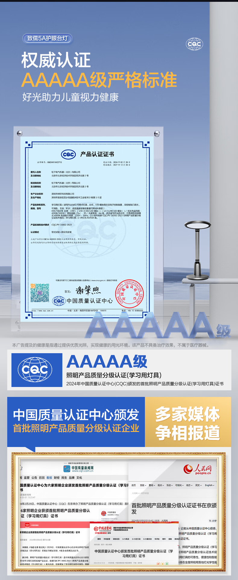 松下(Panasonic)立式护眼灯适阅全光谱100W 学习灯儿童大路灯台灯智能语音