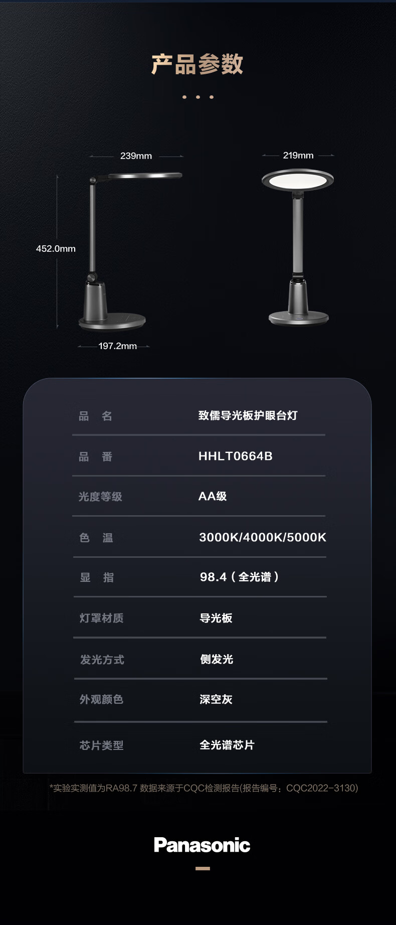 松下(Panasonic)护眼灯 全光谱导光板学生学习家用卧室床头灯致儒PRO