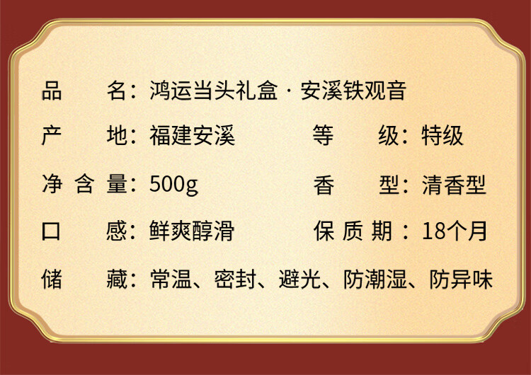 传奇会乌龙茶安溪铁观音清香型特级500g茶叶礼盒装春节送礼年货送长辈