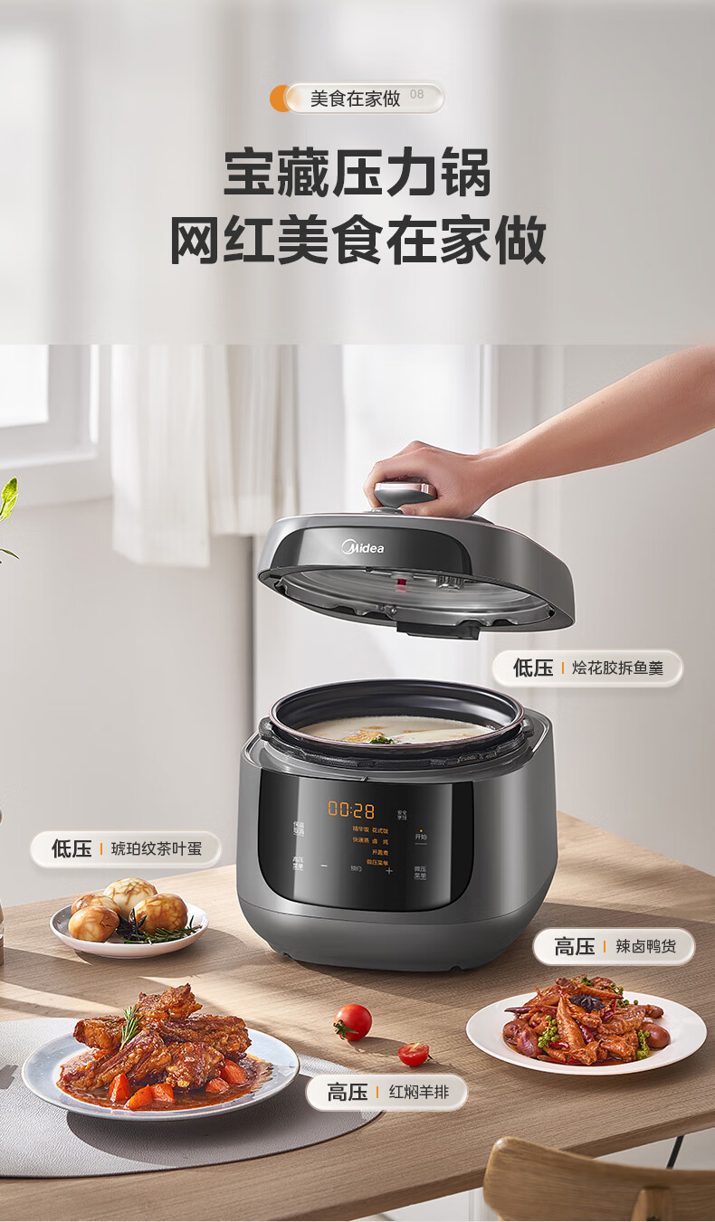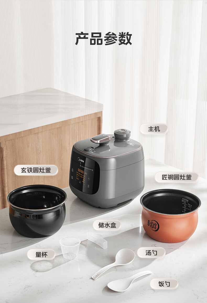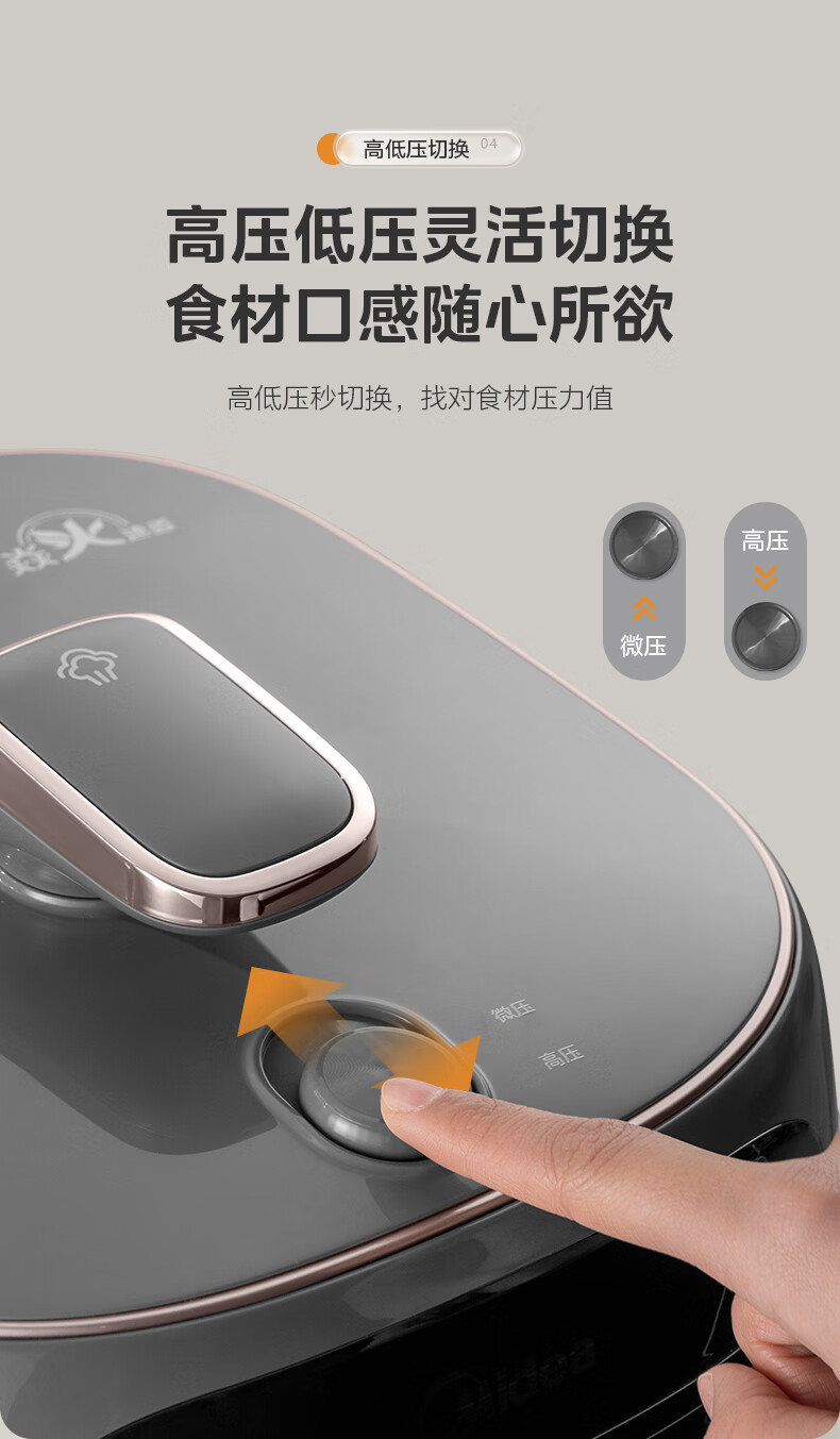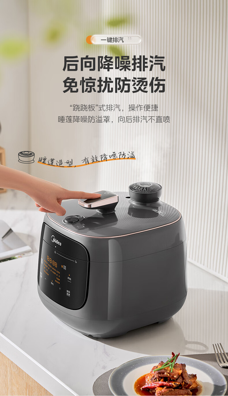 美的(Midea)双胆圆釜电压力锅十分钟快手菜 高低压70KPA 猛火全自动智能预约高压电饭煲5L MY-C5933 【球釜双胆】高微压切换 5L