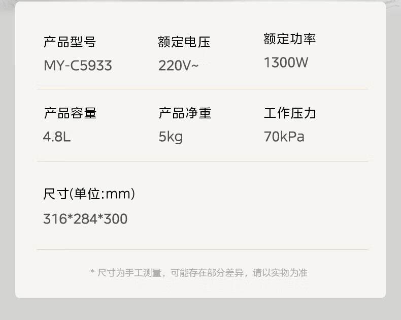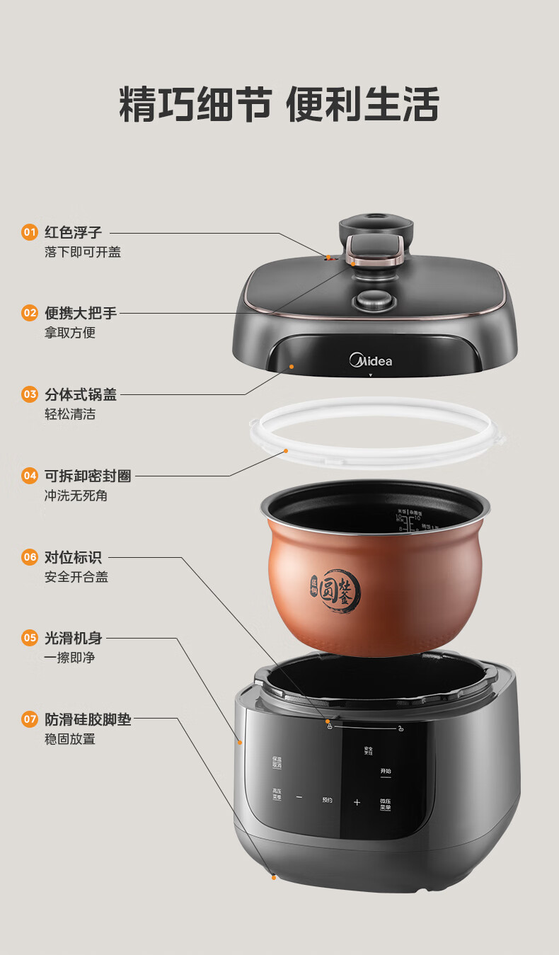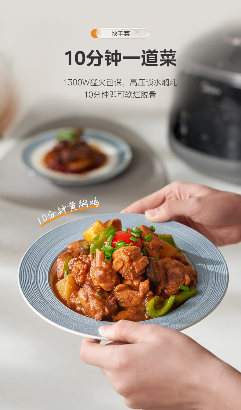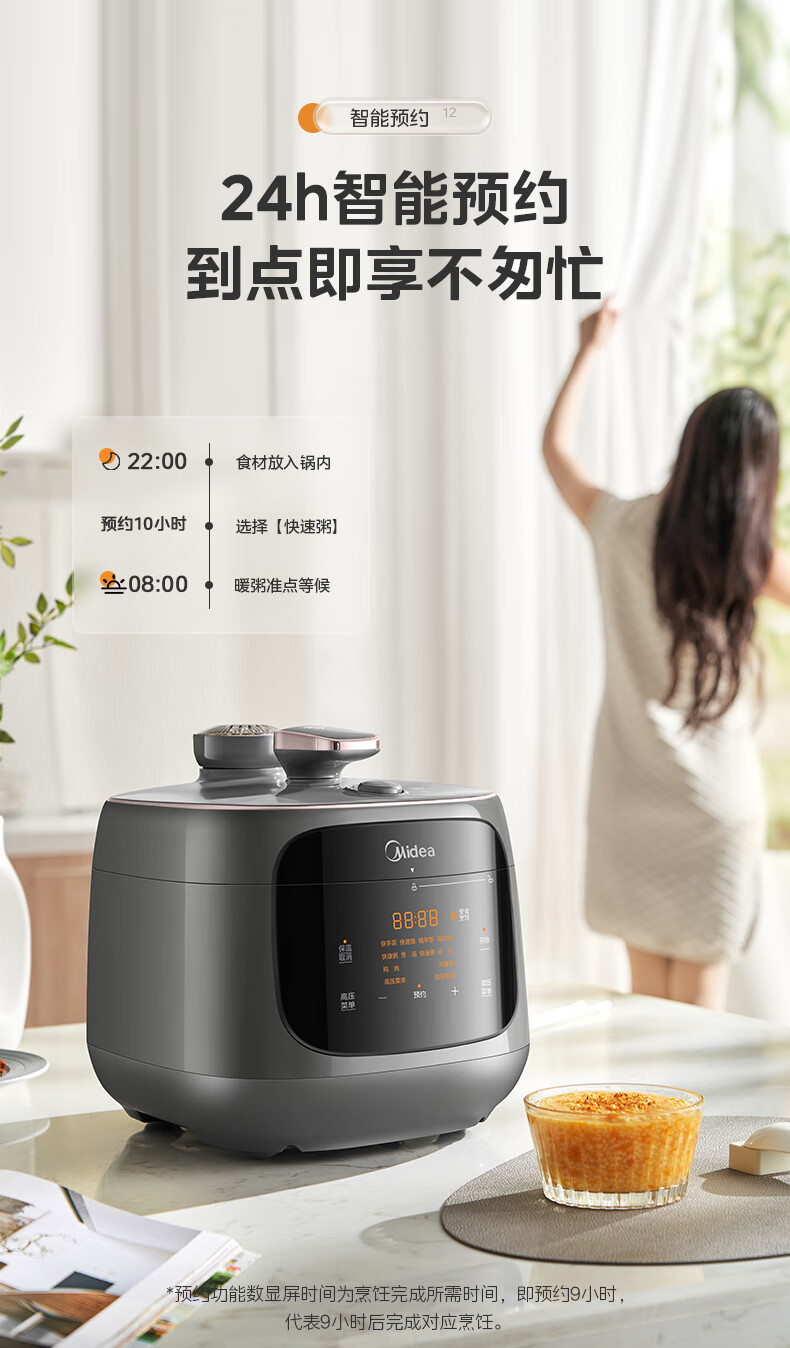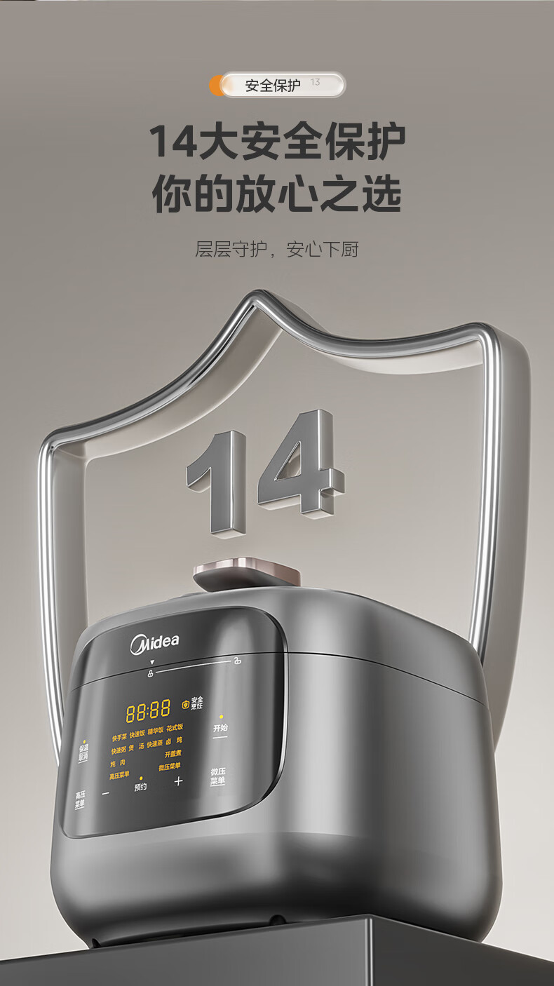 美的(Midea)双胆圆釜电压力锅十分钟快手菜 高低压70KPA 猛火全自动智能预约高压电饭煲5L MY-C5933 【球釜双胆】高微压切换 5L