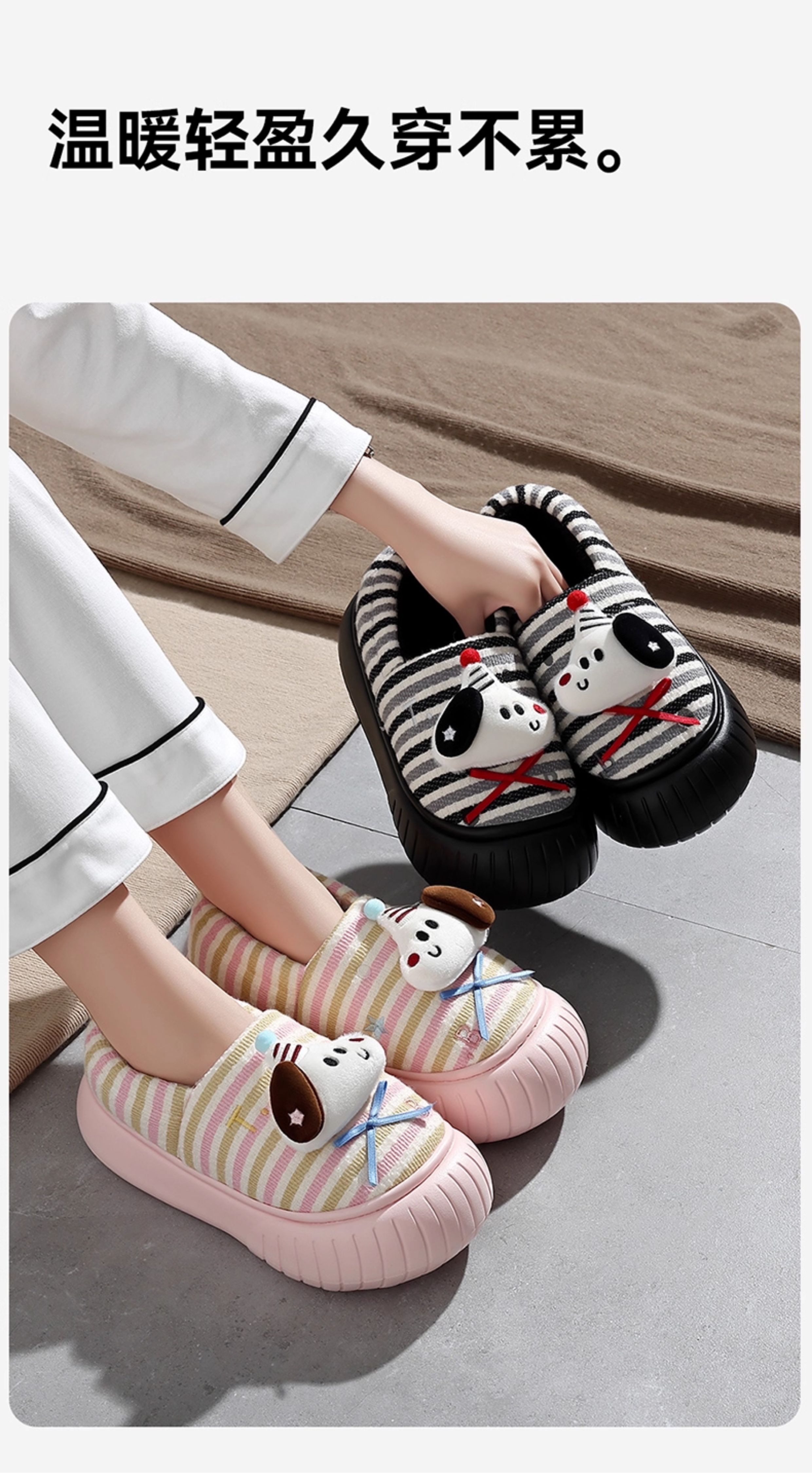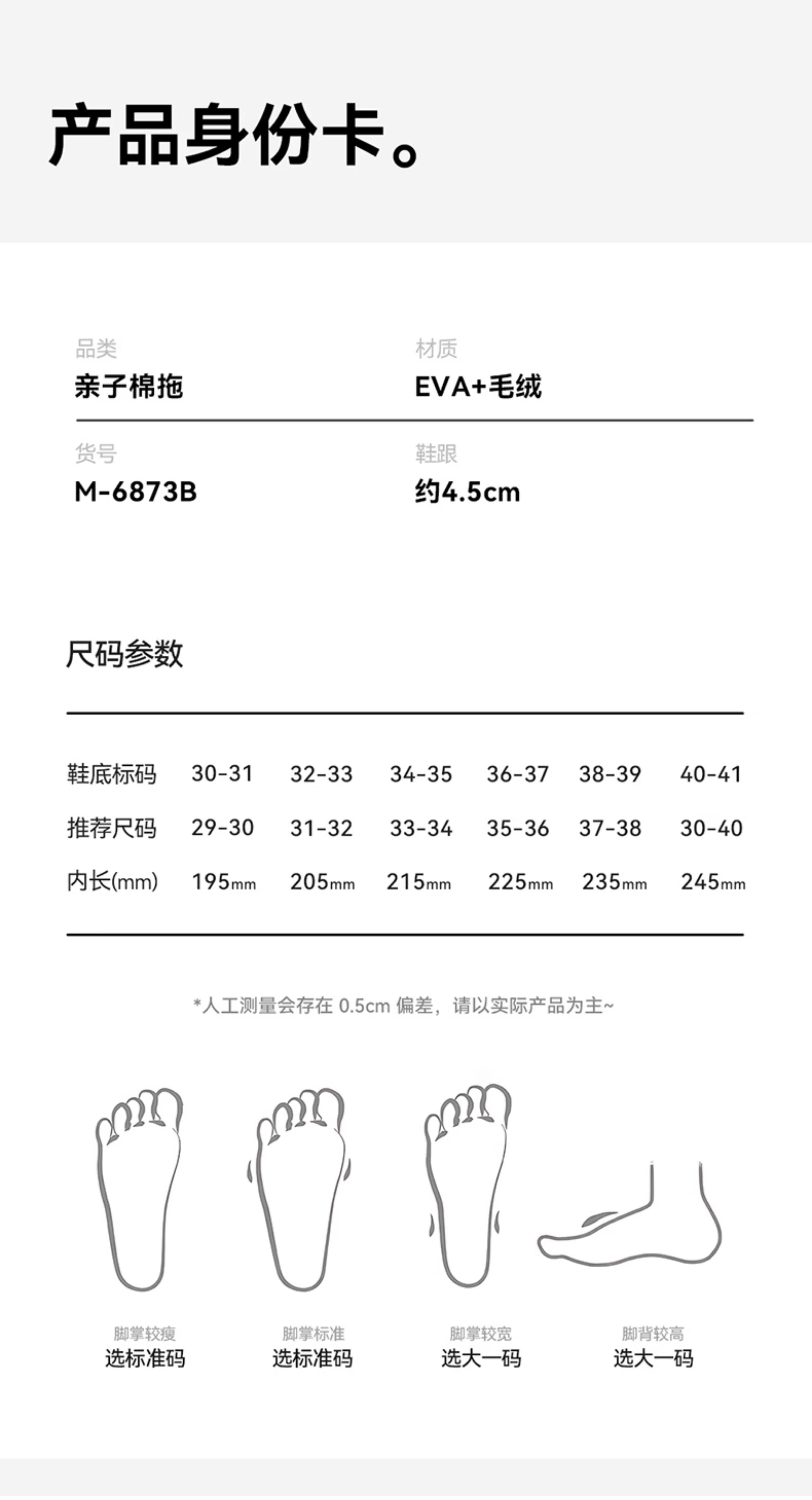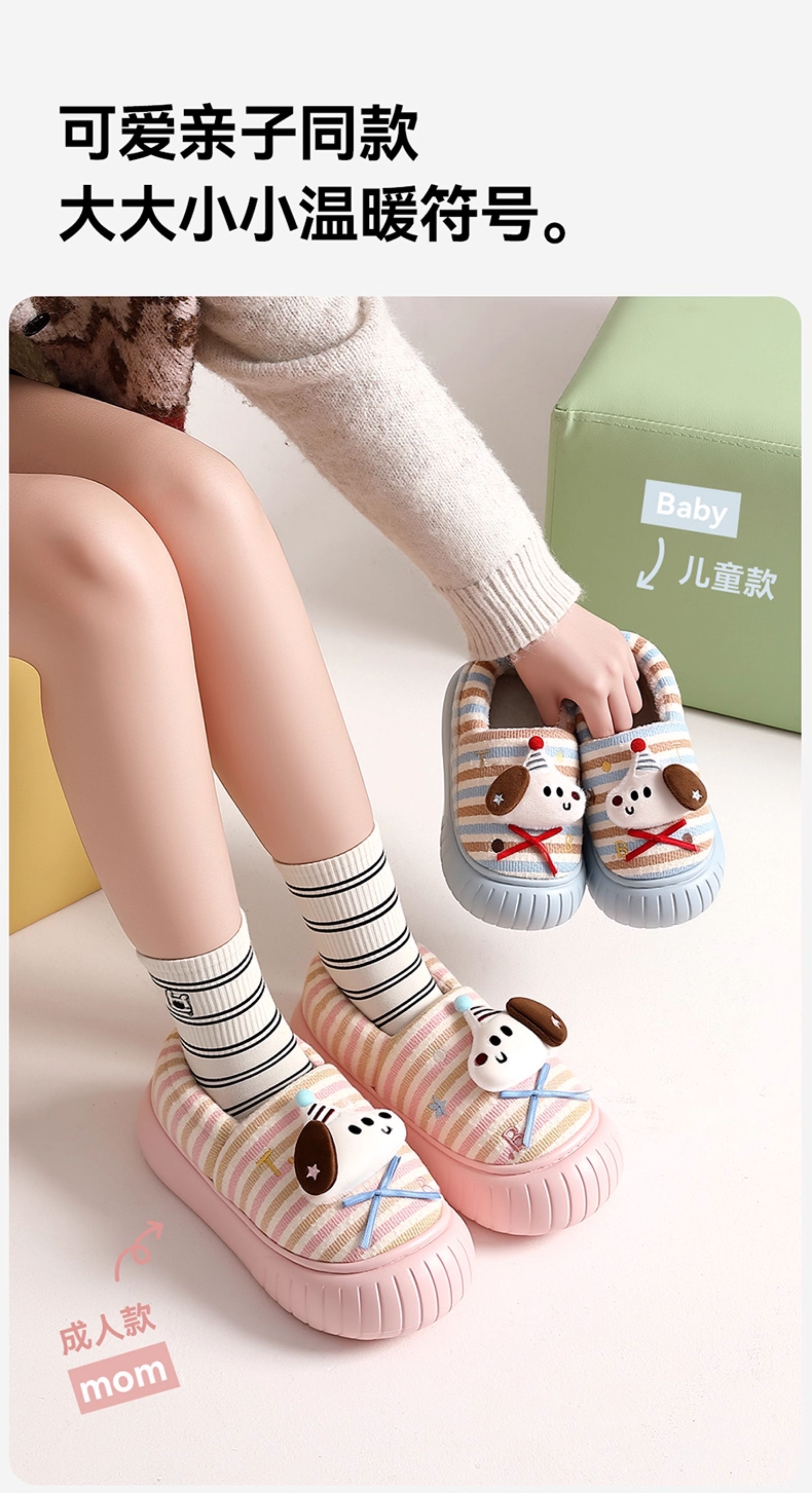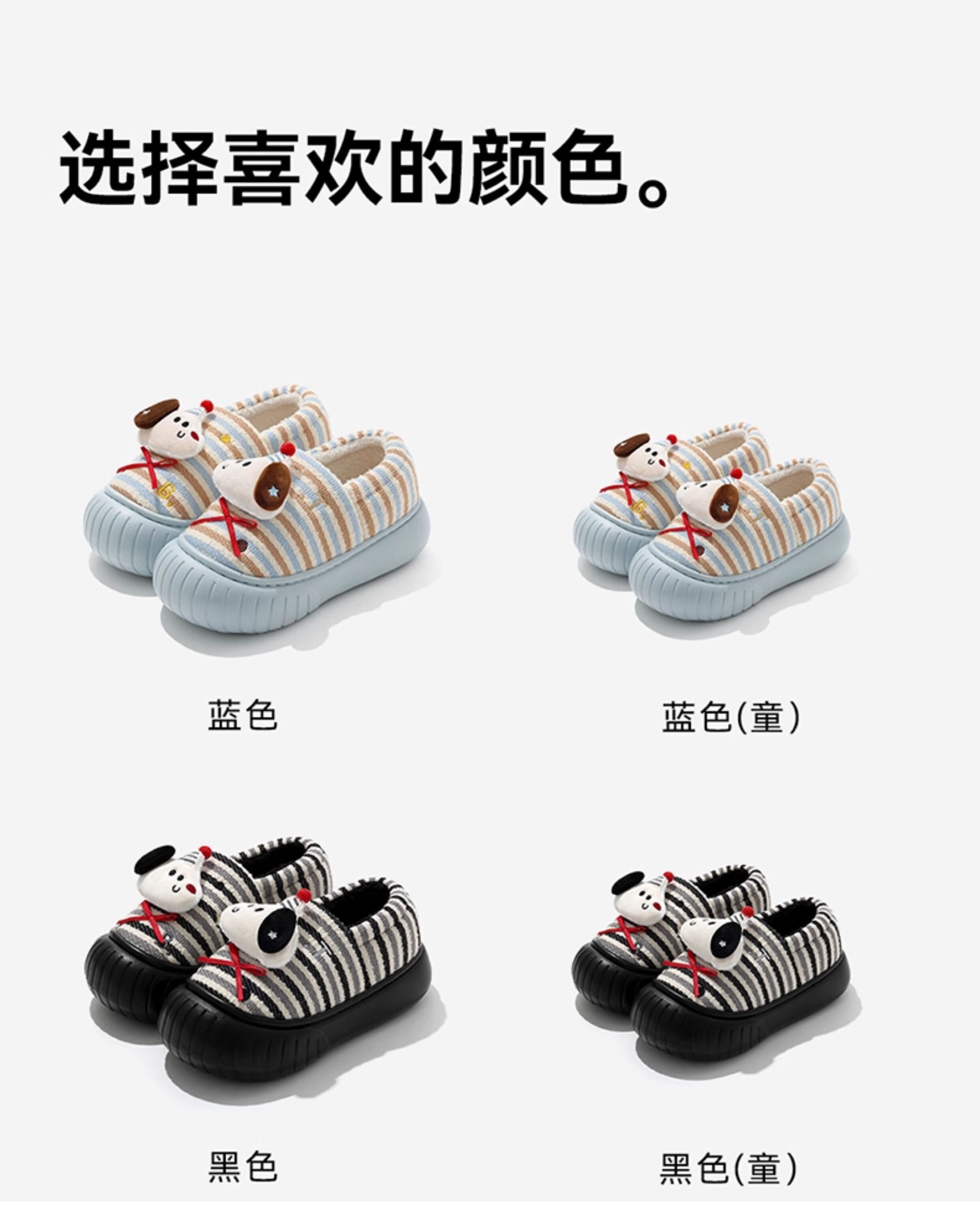 FZT棉拖鞋女款2025冬季新款可爱亲子室内家居包跟厚底毛绒保暖棉拖鞋 黑色 30 -31适合29-30(内长195mm)