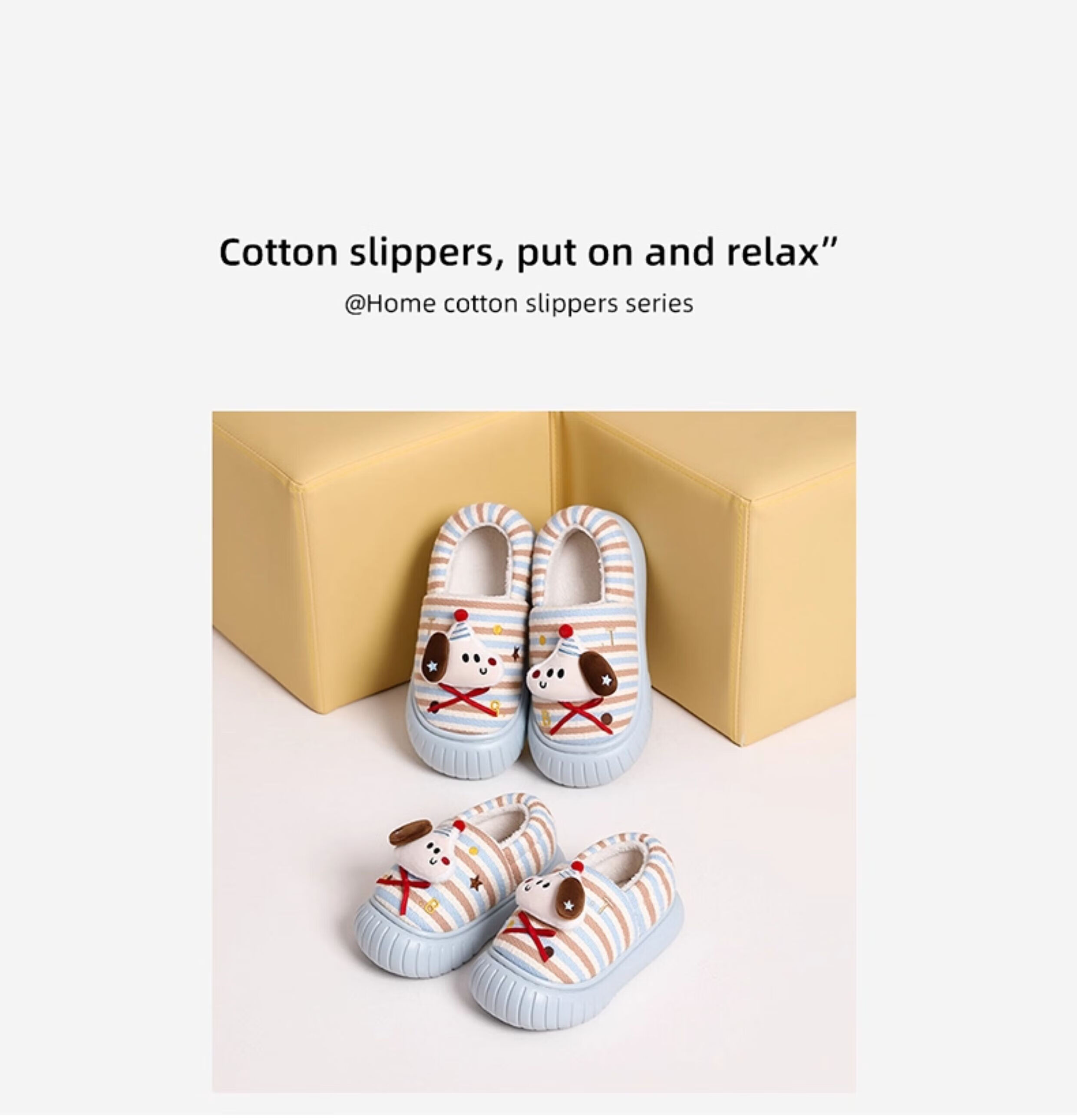 FZT卡通儿童棉拖鞋女款冬季包跟防臭室内家居保暖厚底加绒亲子棉拖鞋 灰色 29 -30【正码】