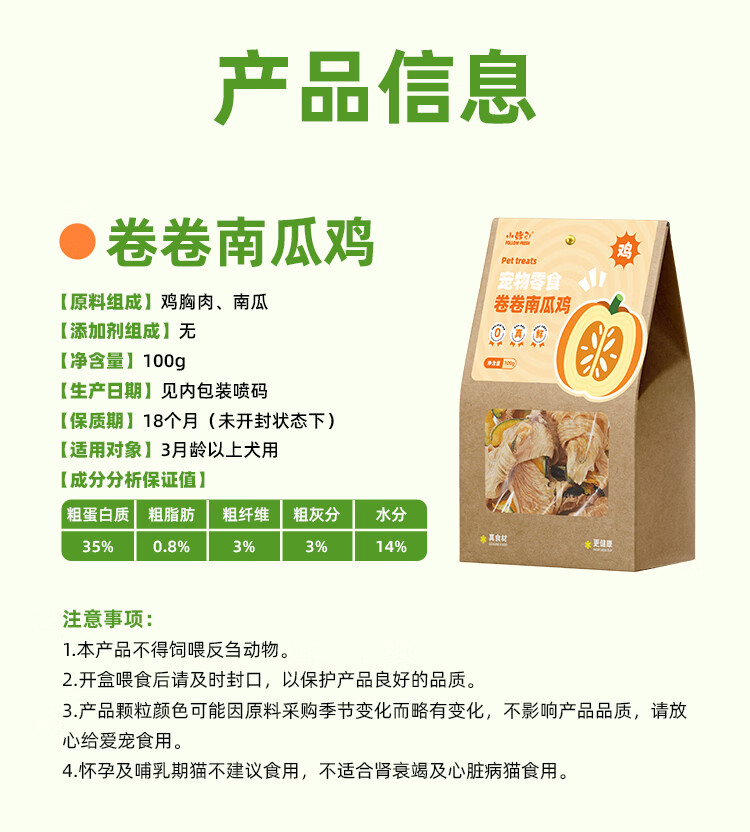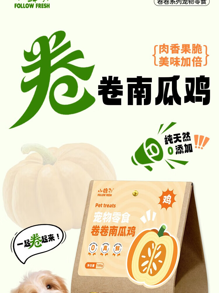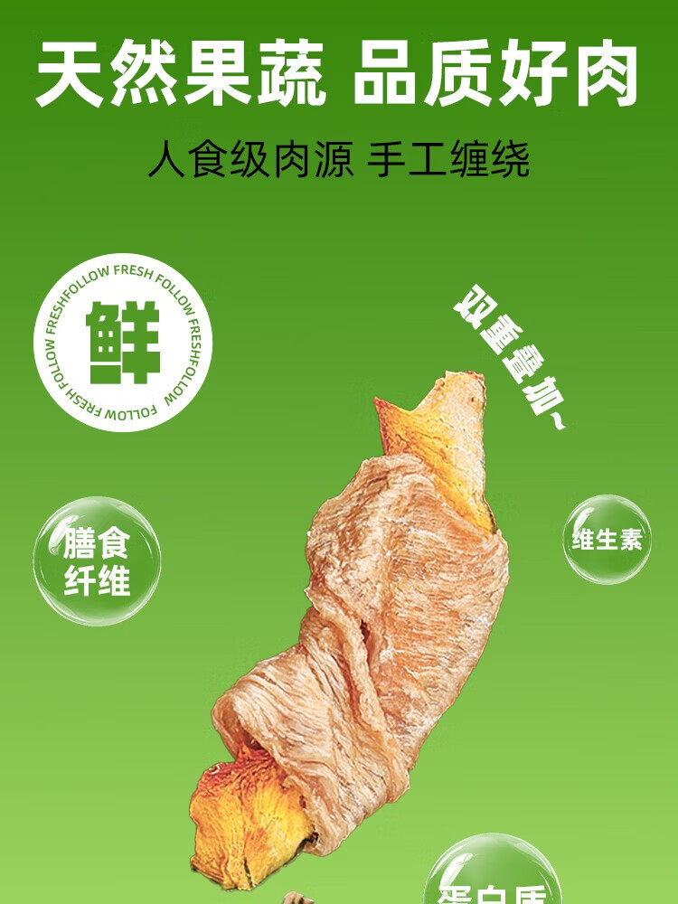 小鲜引;FOLLOW FRESH狗零食肉干 便携小包 磨牙棒训练奖励泰迪宠物狗狗零食果蔬鸡肉 鸡肉绕南瓜口味*100g
