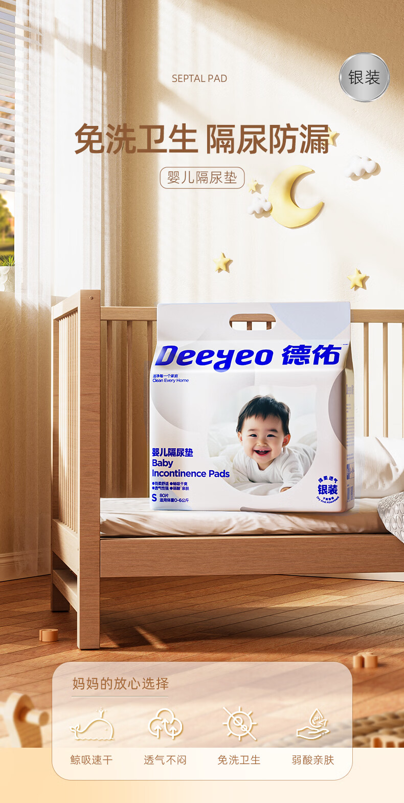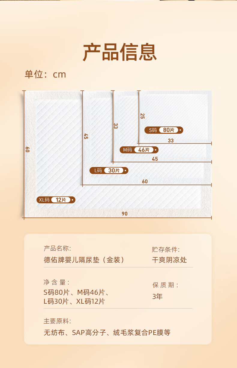 德佑 婴儿一次性隔尿垫46片33*45cm 护理垫吸水不反渗建议9kg以内