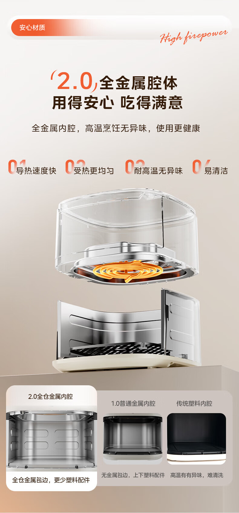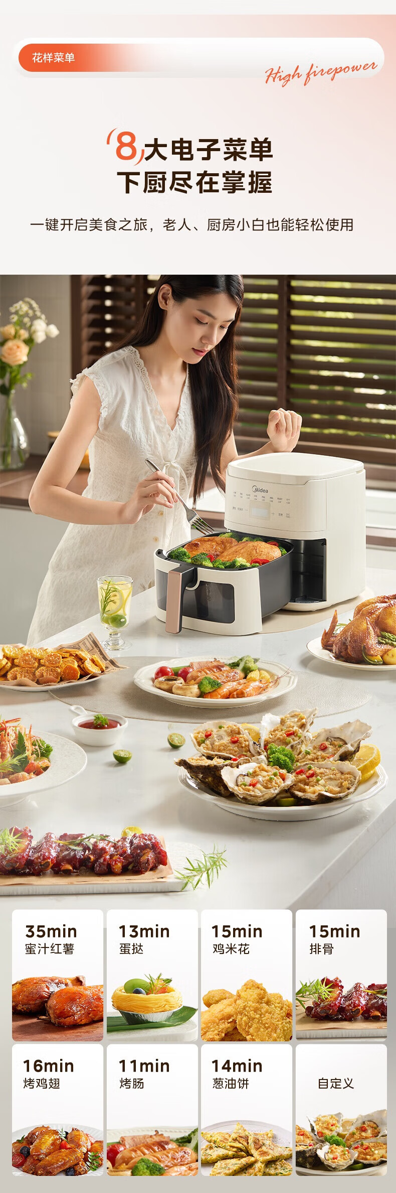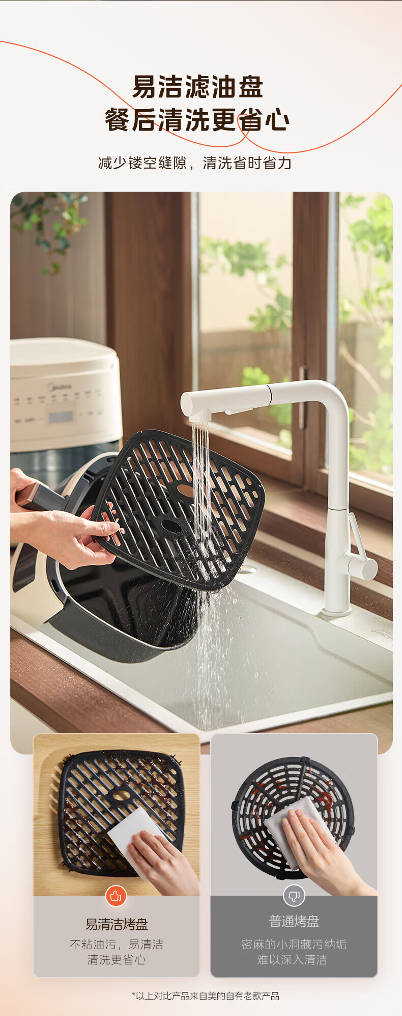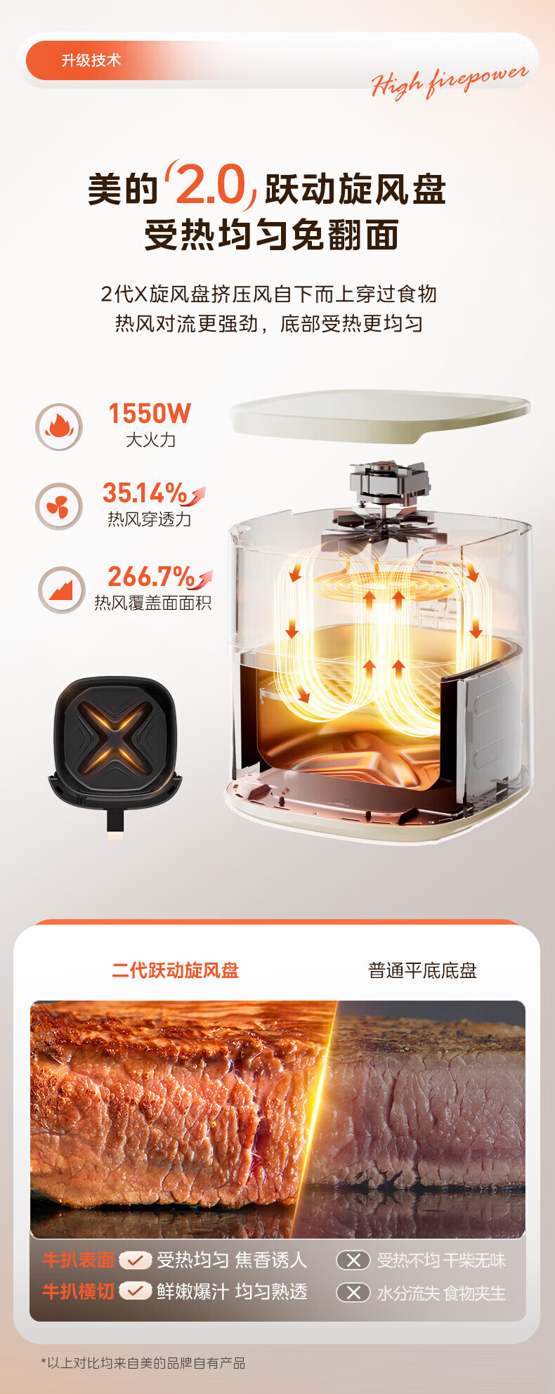 美的(Midea)空气炸锅家用可视不用翻面大容量精准控温定时免翻面无油烟电炸锅低脂煎炸锅炸鸡薯机条空气烤箱 【微蒸汽嫩烤 免翻面】风速可调 5.3L