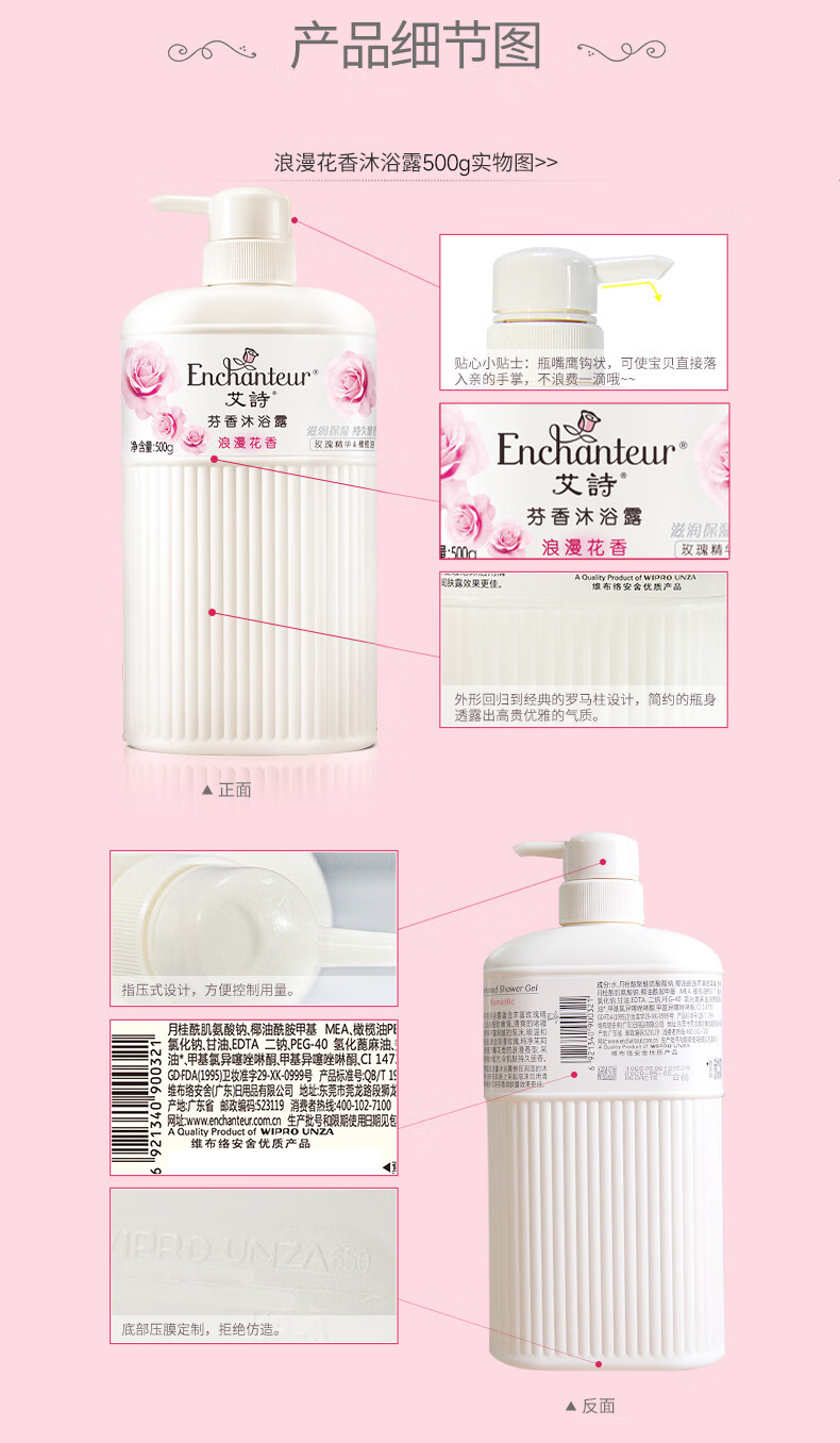艾诗(Enchanteur)香氛沐浴露沐浴乳留香香味持久男女士浪漫500g*2家庭装