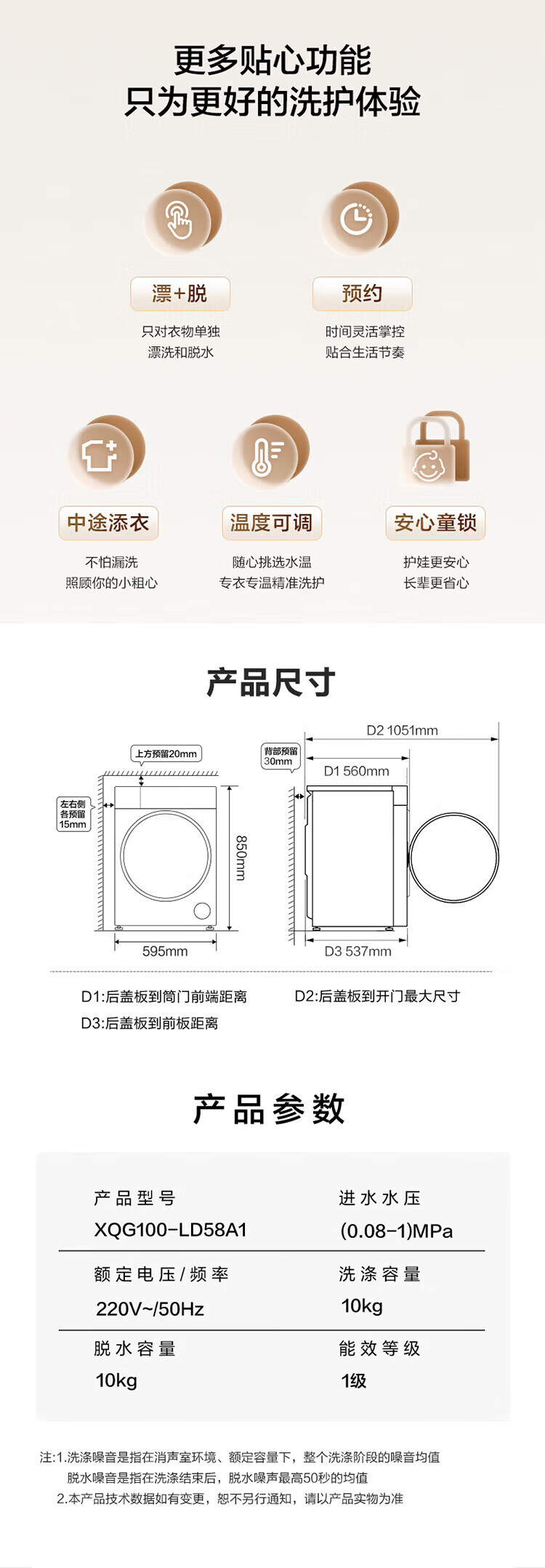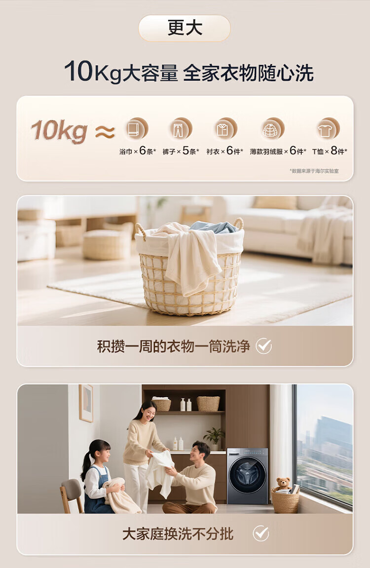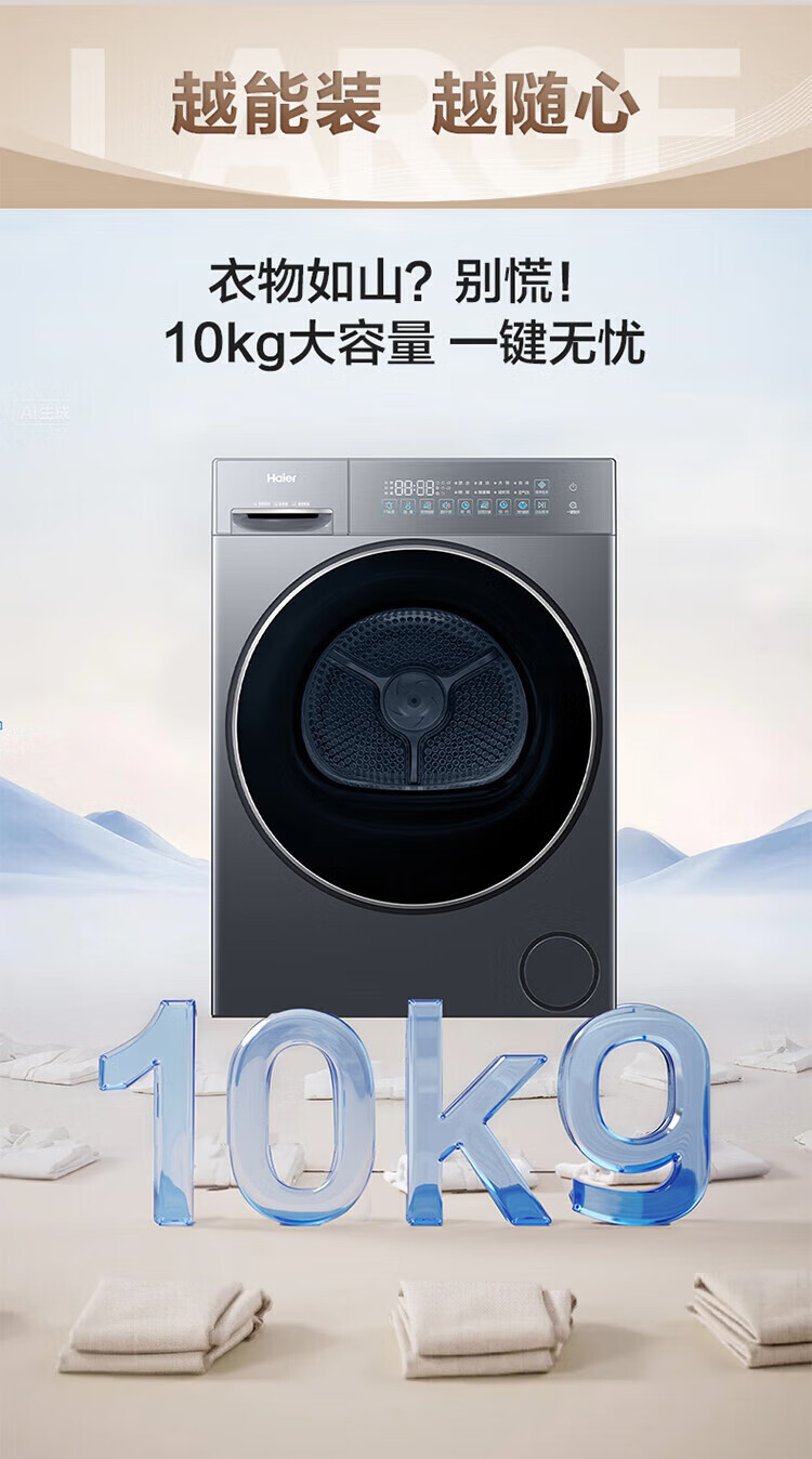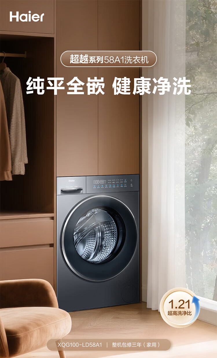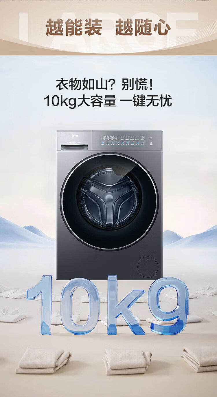 海尔滚筒洗衣机10KG全自动家用超薄嵌入直驱变频活水精华洗智能投放六维减震一级能效补贴节能LD58A1 10KG单洗38A1直驱精华洗智能投放+新衣洗 滚筒
