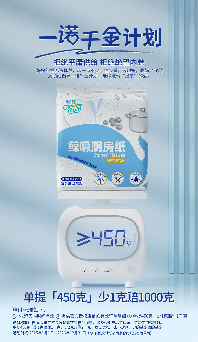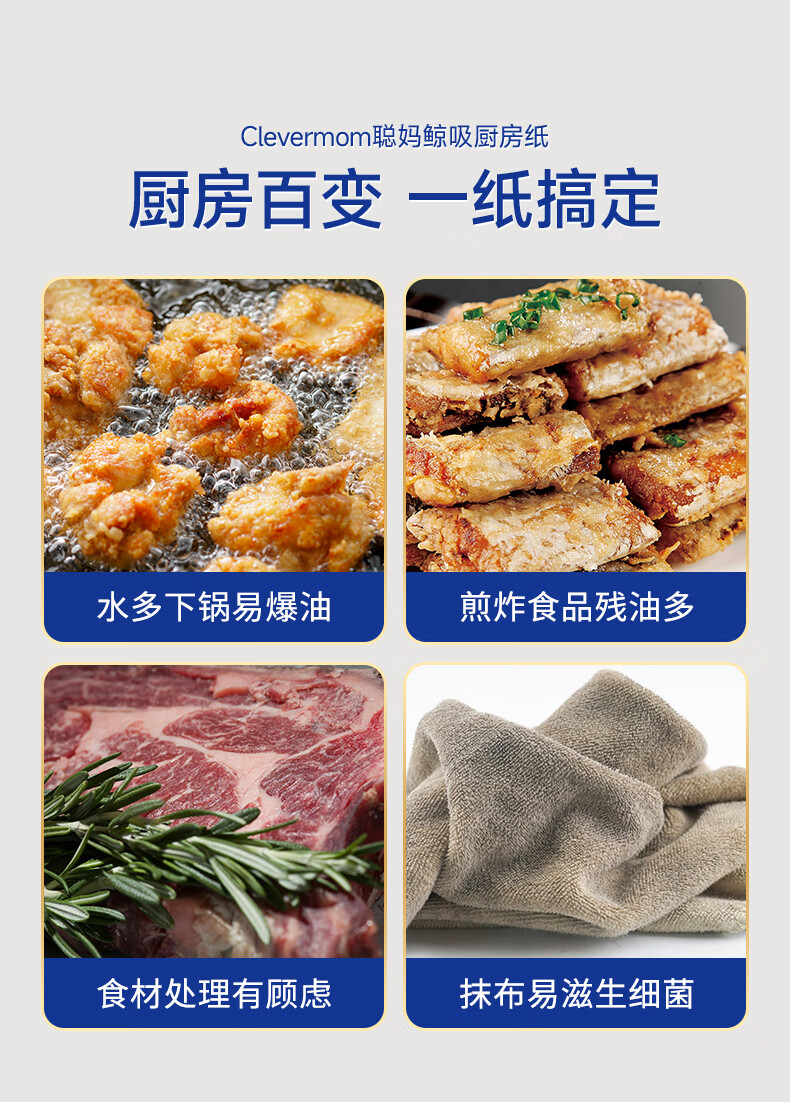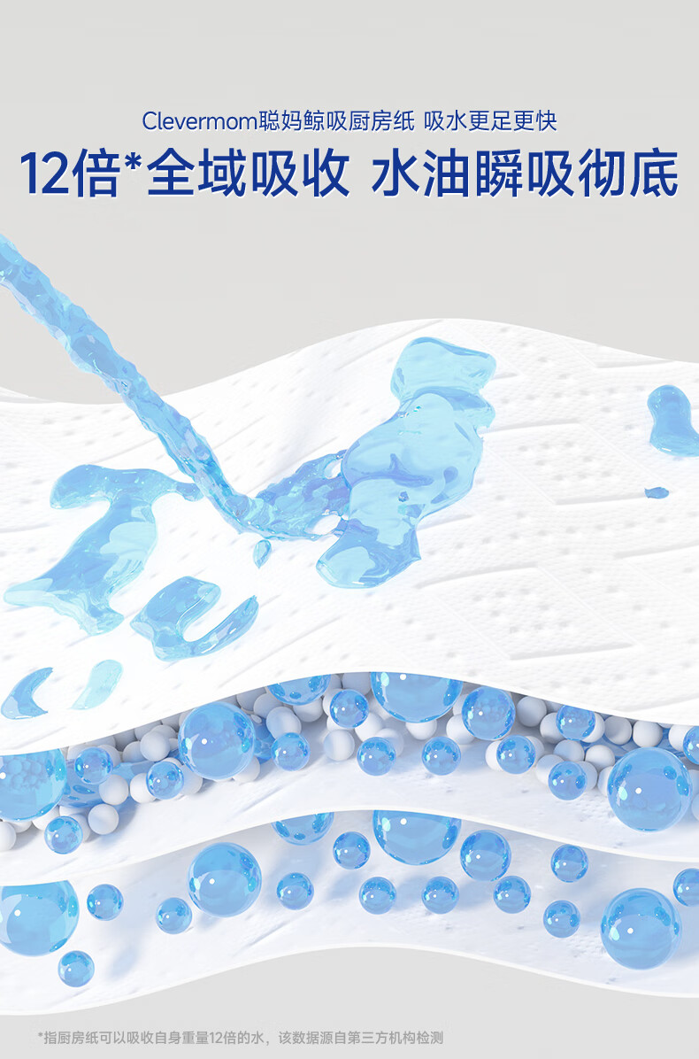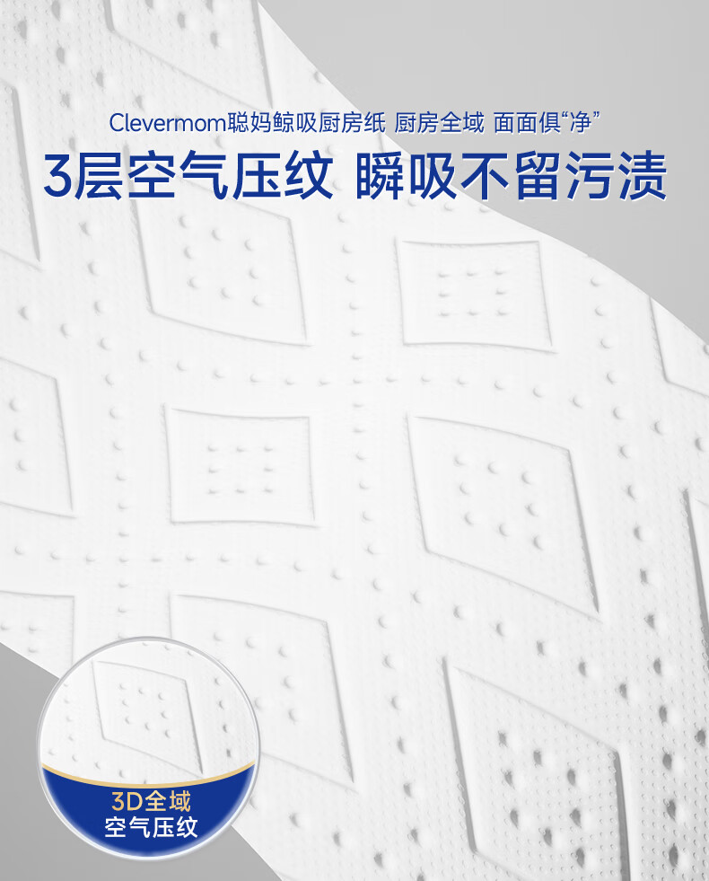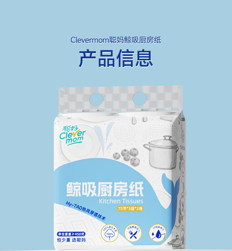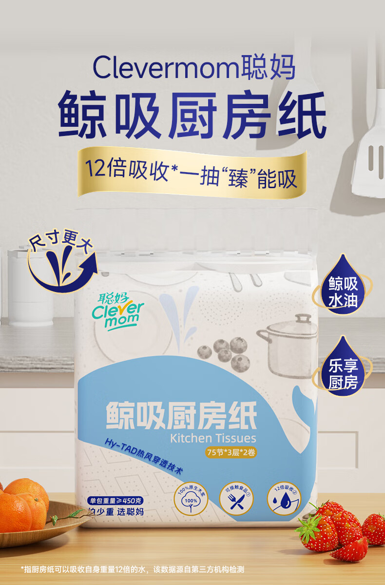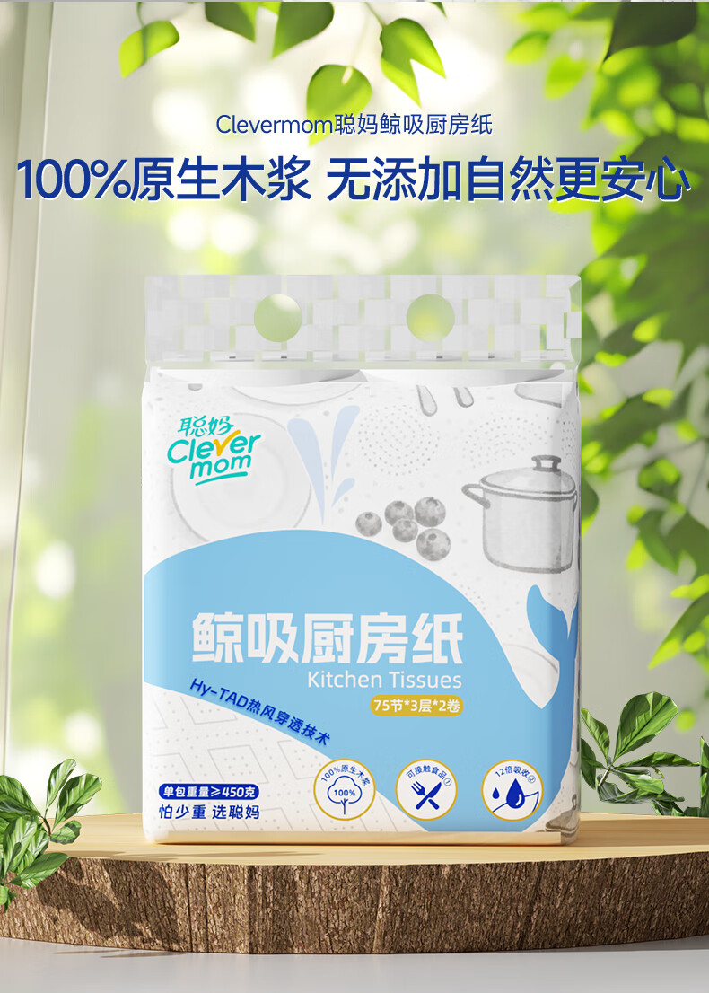聪妈厨房用纸/厨房纸巾抽纸100%原生木浆 3层 75节*2卷