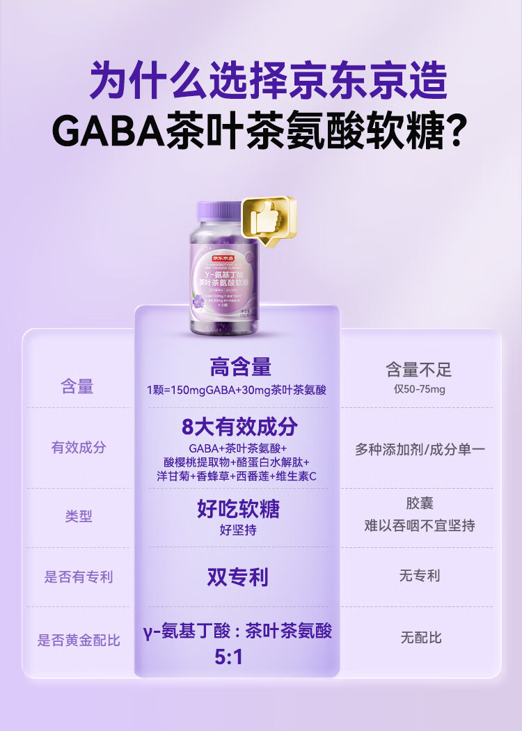 京东京造 GABA氨基丁酸软糖60粒 提高睡眠质量睡眠软糖非褪黑素成人中老年