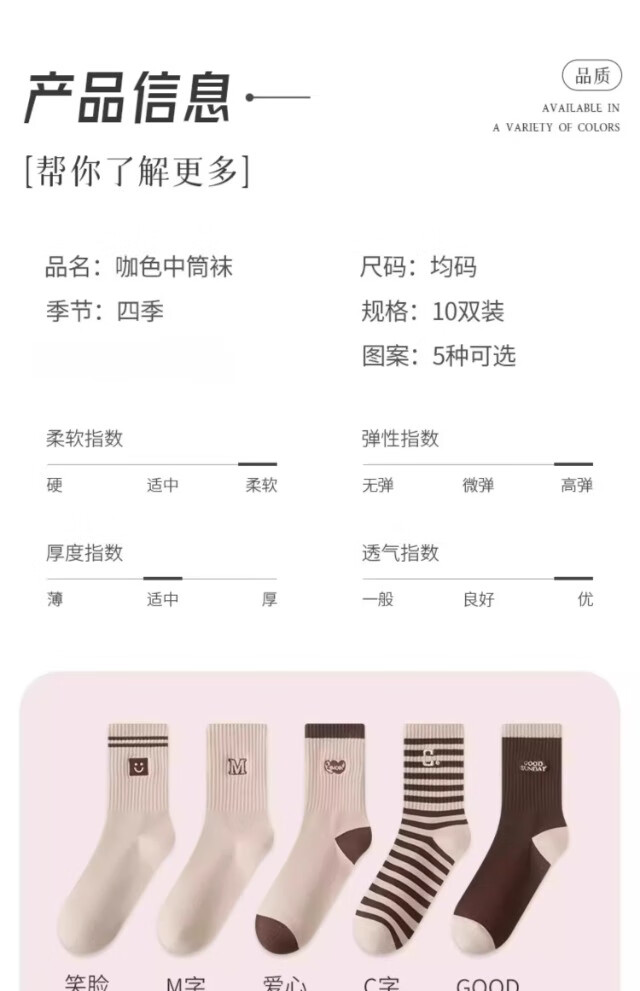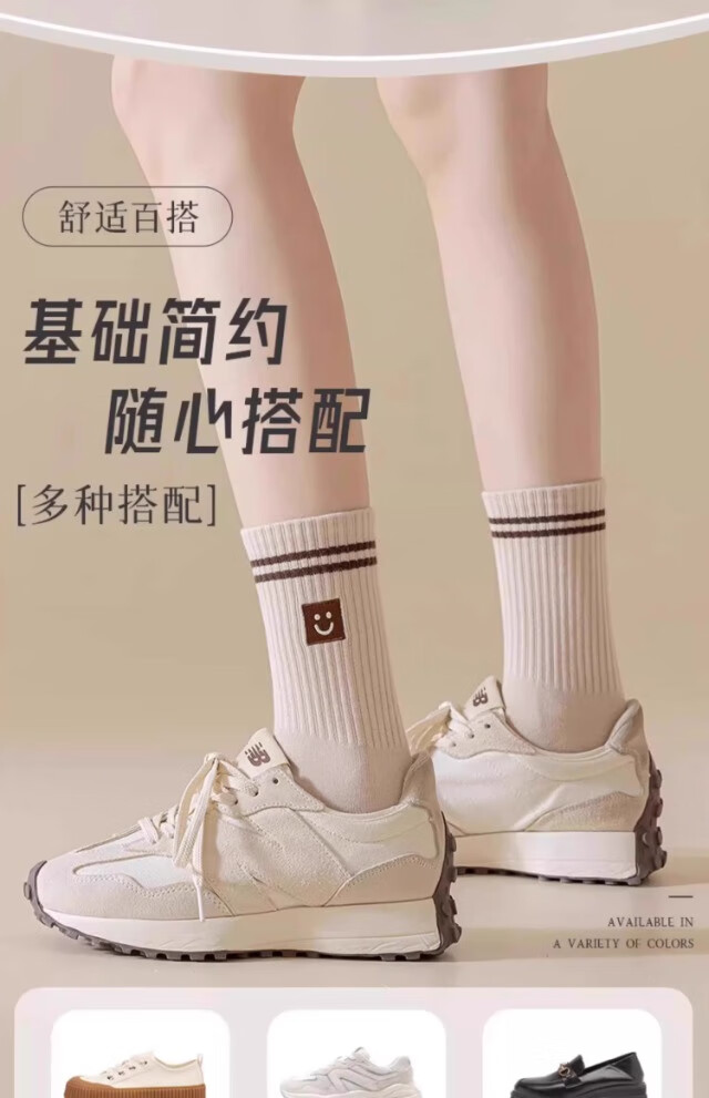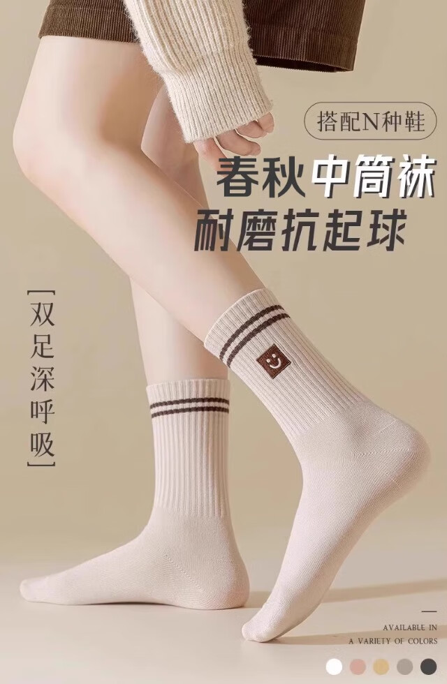 【美拉德学生袜】袜子女中筒袜防臭条纹不勒脚吸汗美拉德风春季 【10双装】颜色随机 均码
