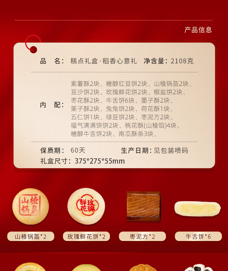 稻香村糕点礼盒牛舌饼枣花酥2108g传统特产零食大礼包春节送礼年货团购