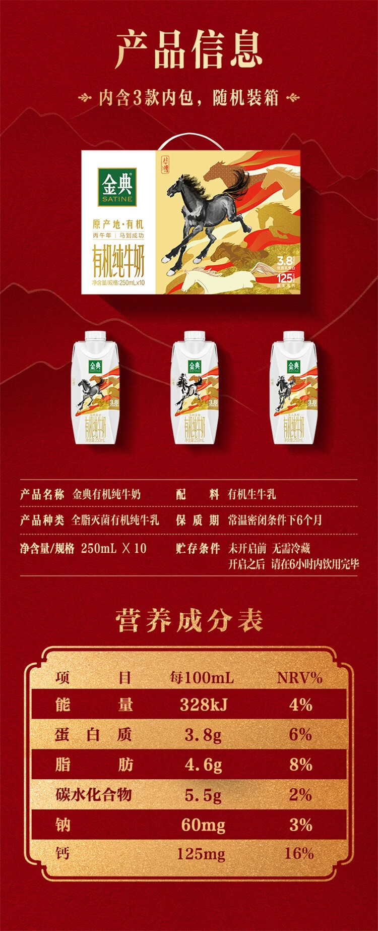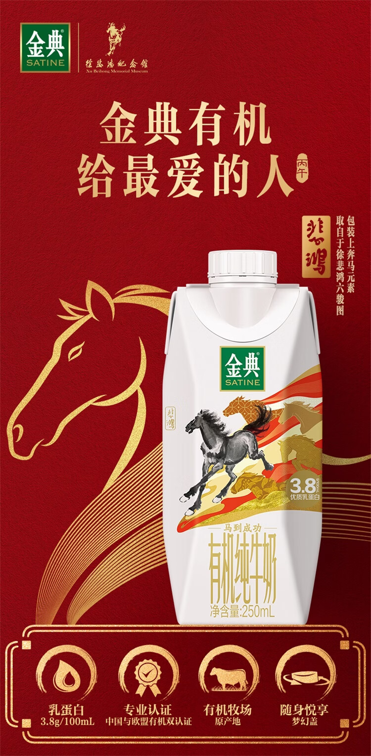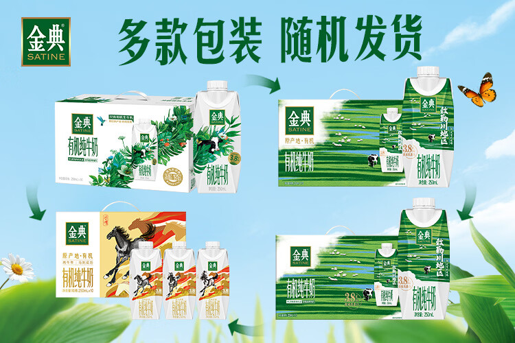 伊利金典3.8g乳蛋白有机全脂纯奶250ml*10盒新老包装随机 年货礼盒装