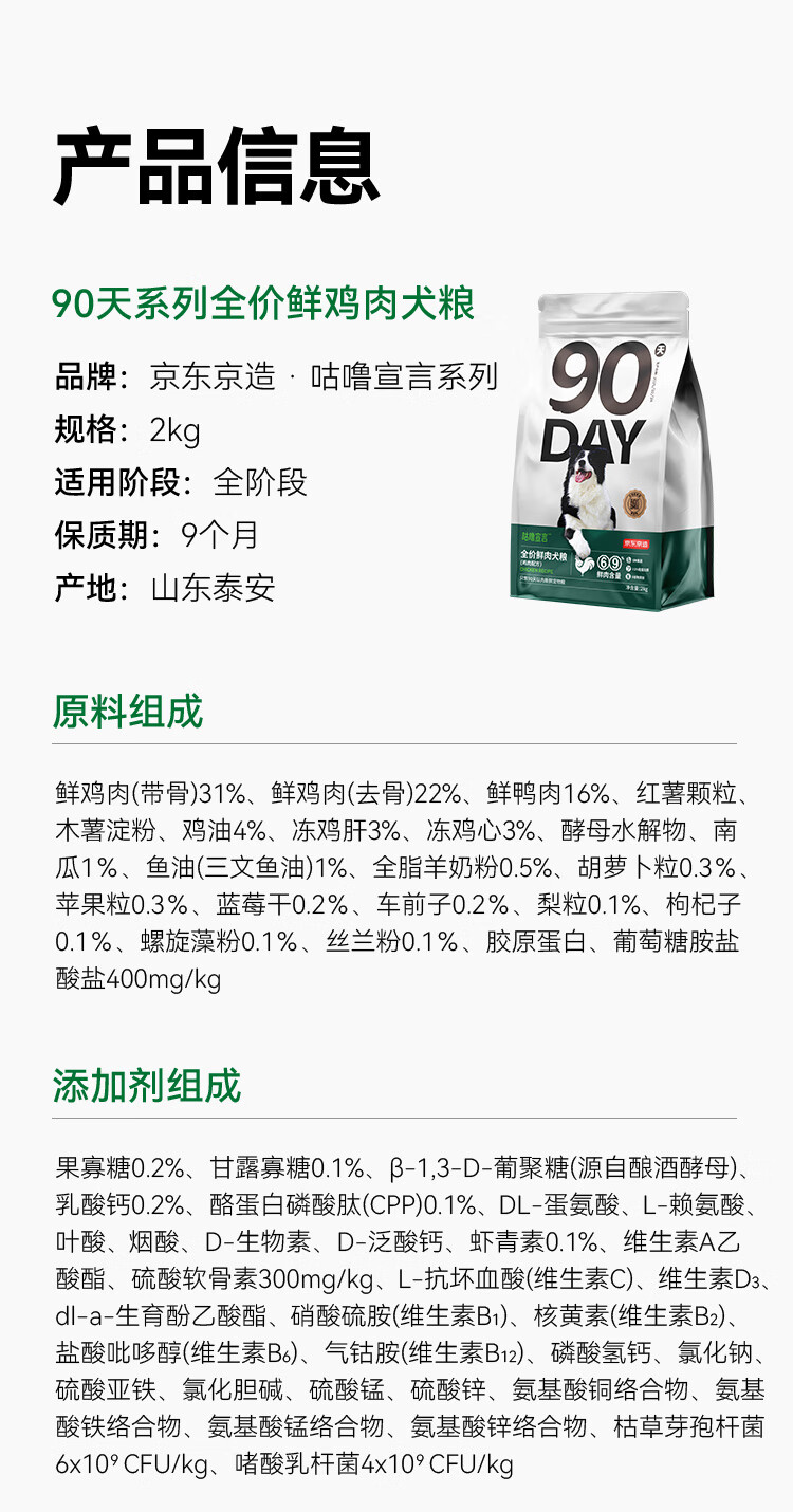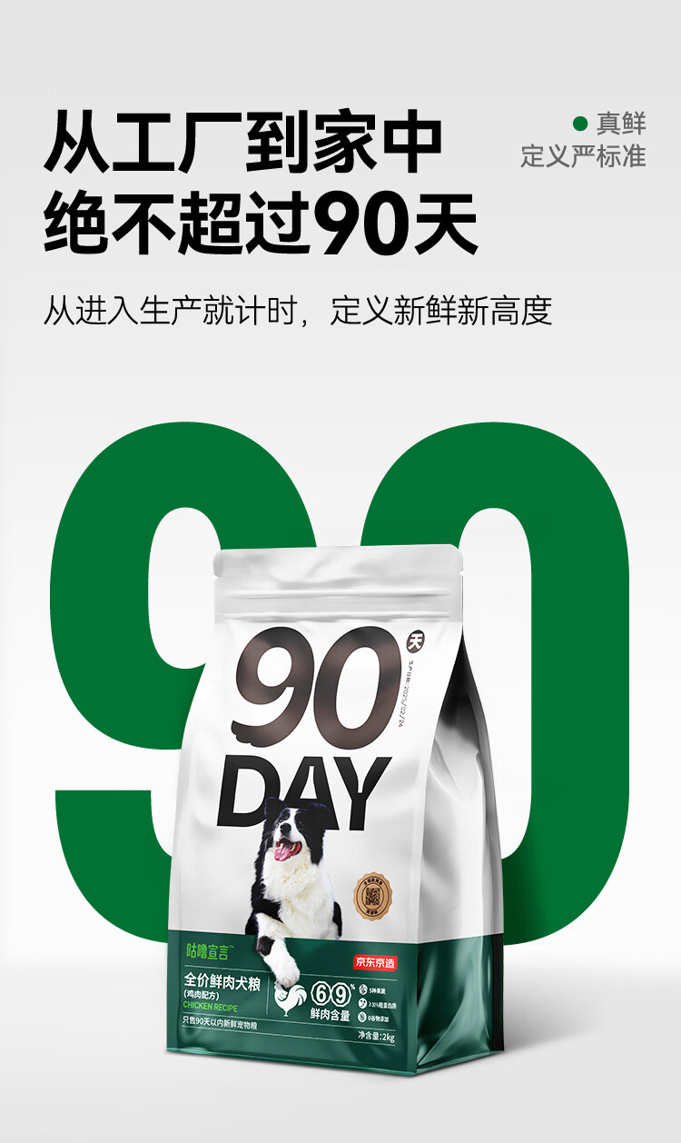 京东京造 90天全价鲜肉犬粮2kg中大型小型成犬幼犬狗粮