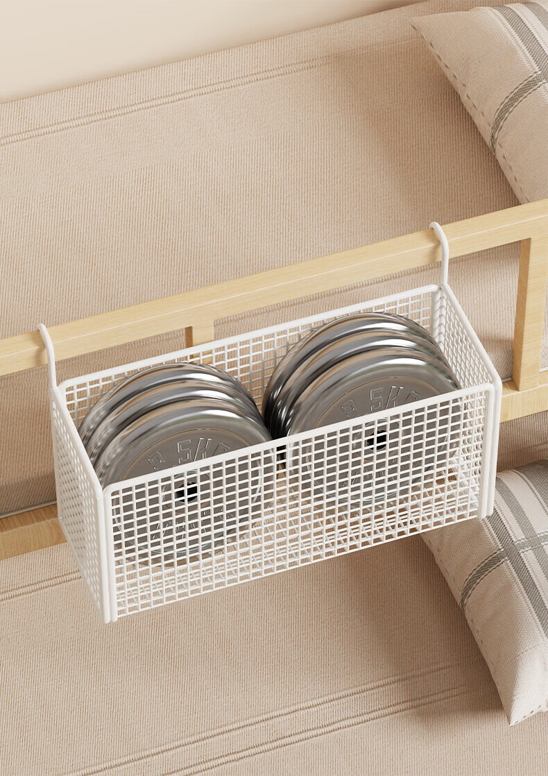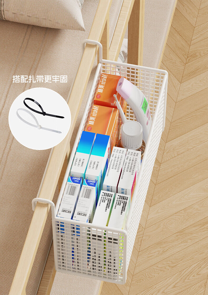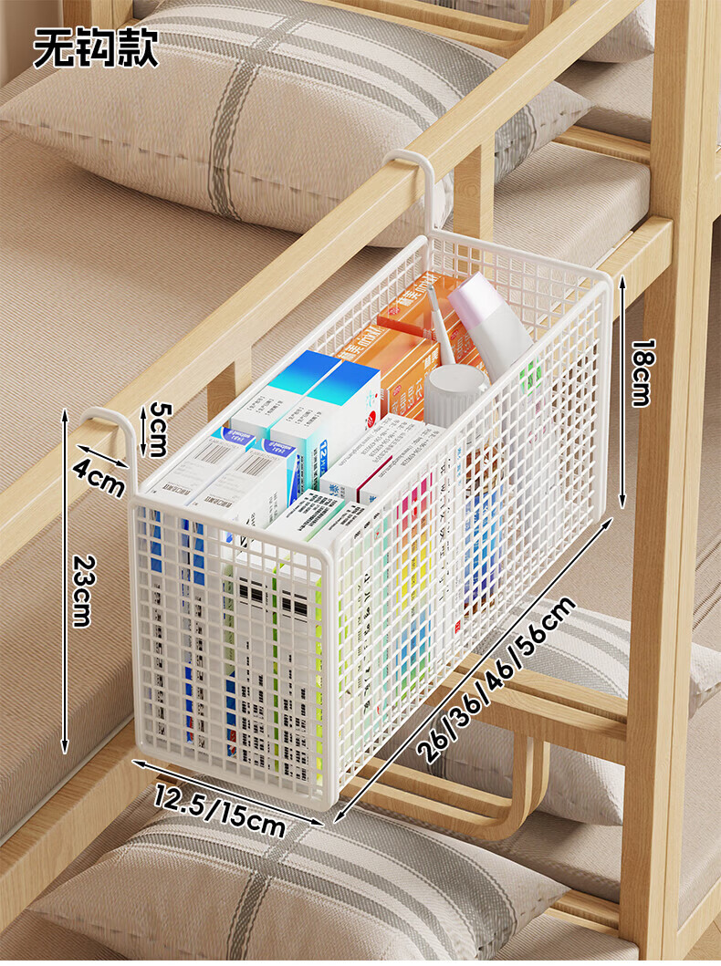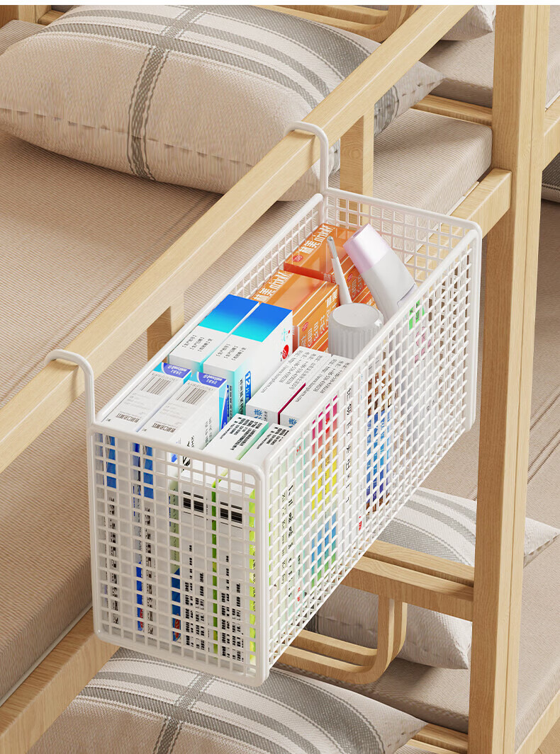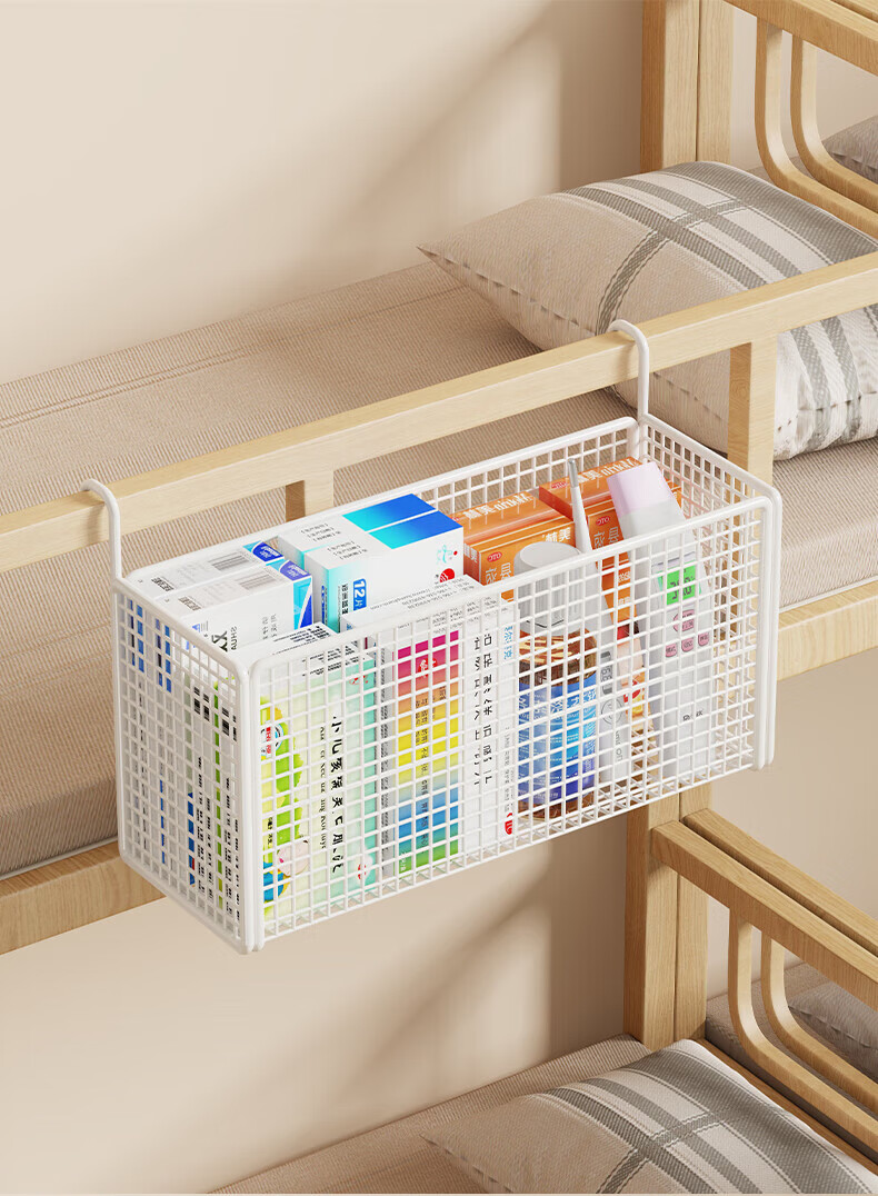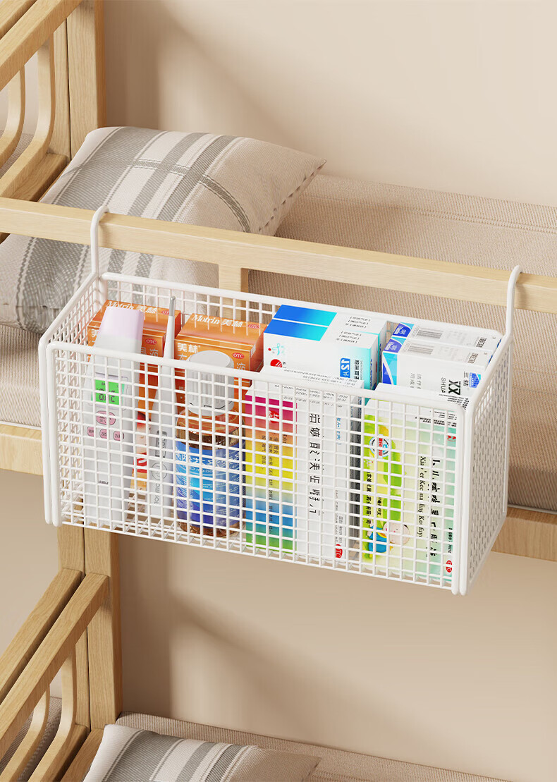 床边挂篮床头置物架宿舍上铺置物架床上收纳筐寝室下挂收纳篮挂架 白色大号-(送4根扎带)