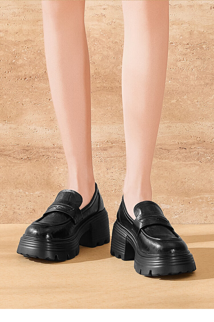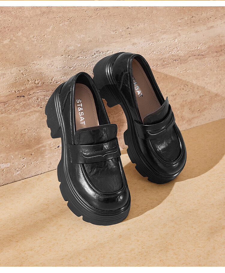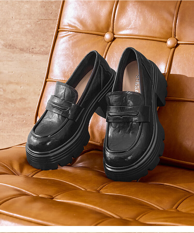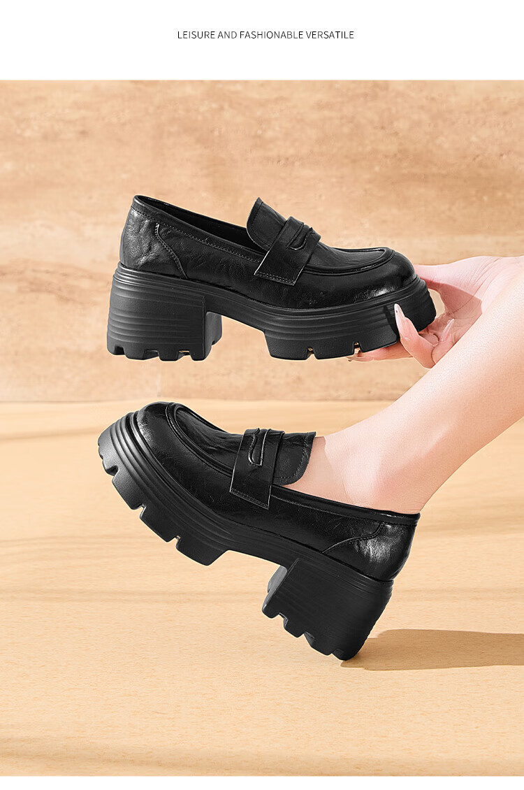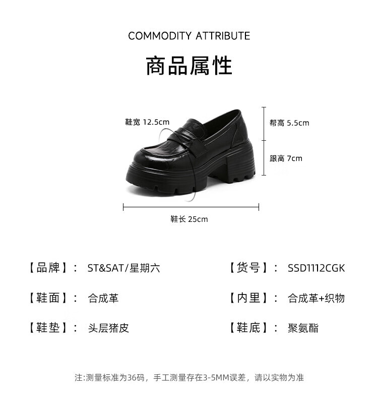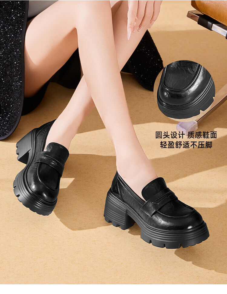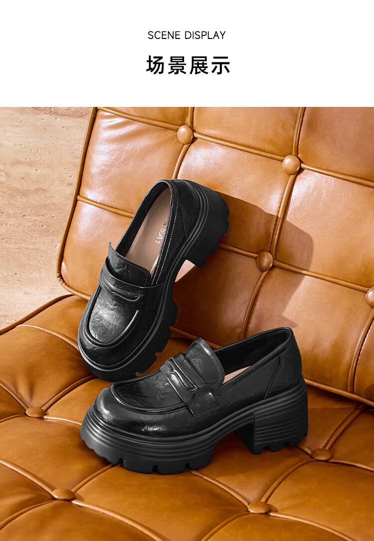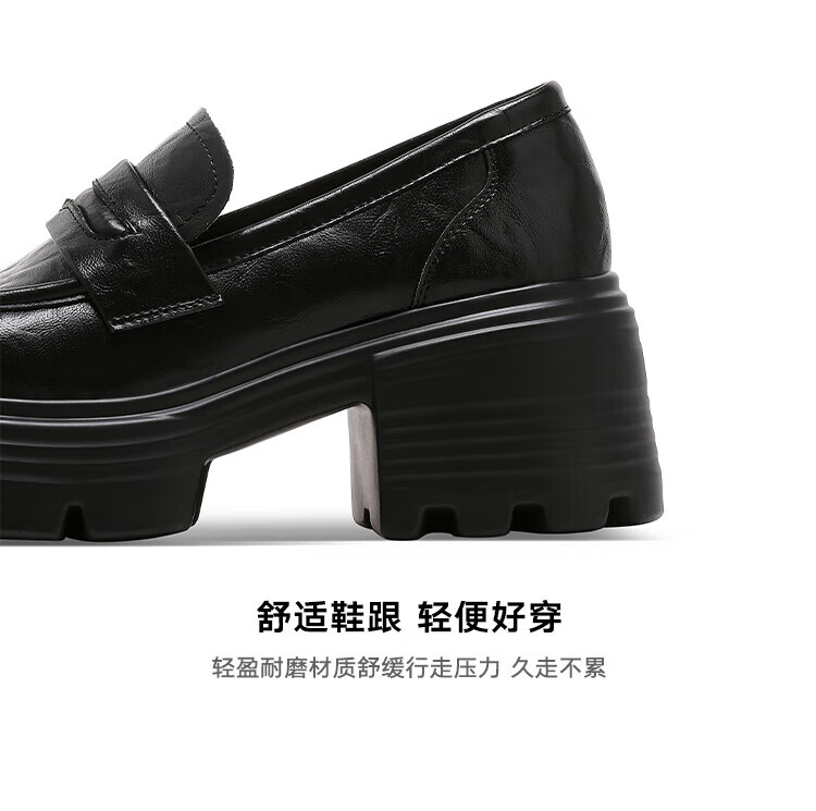 星期六厚底乐福鞋女2025新款爆款秋冬英伦风小皮鞋女款时尚玛丽珍单鞋女 黑色 37