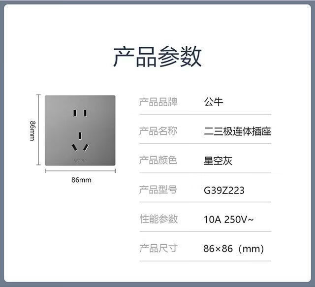 公牛(BULL)开关插座面板无边框大面板G39全屋86型G12灰白哑光套装家用款 全屋装修不麻烦/清单联系客服更省心【象牙白】 正五孔