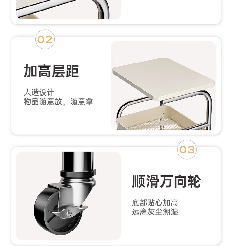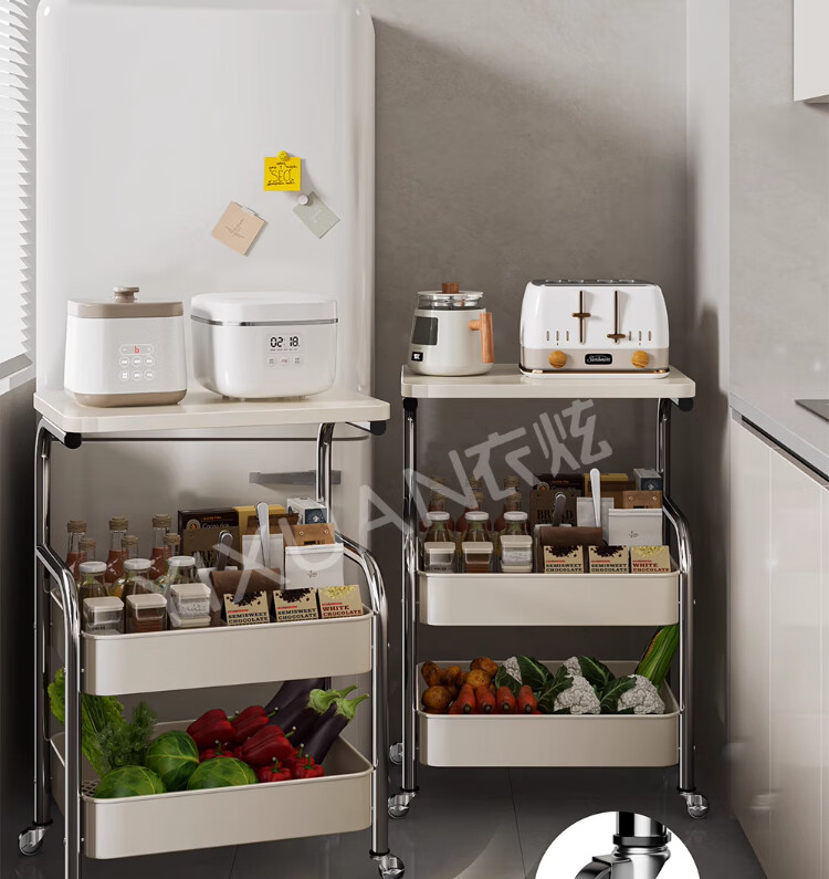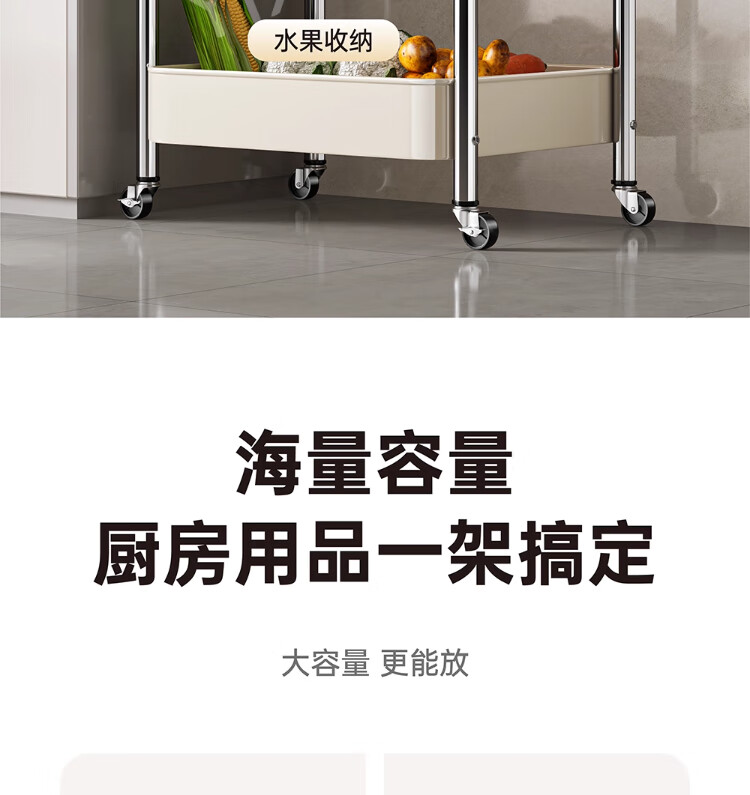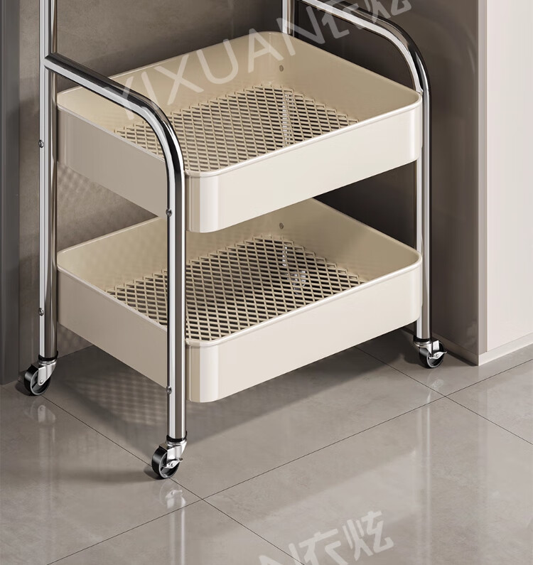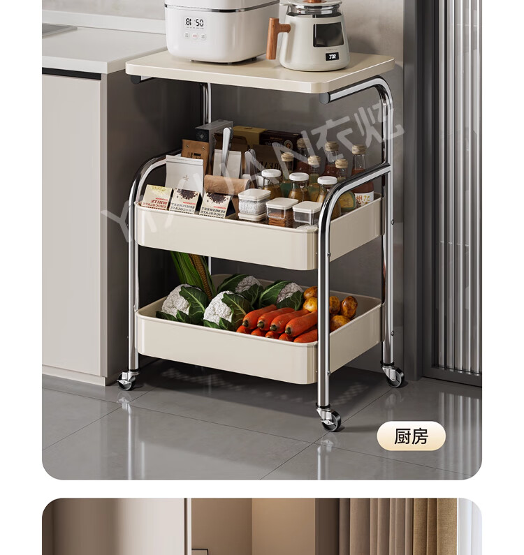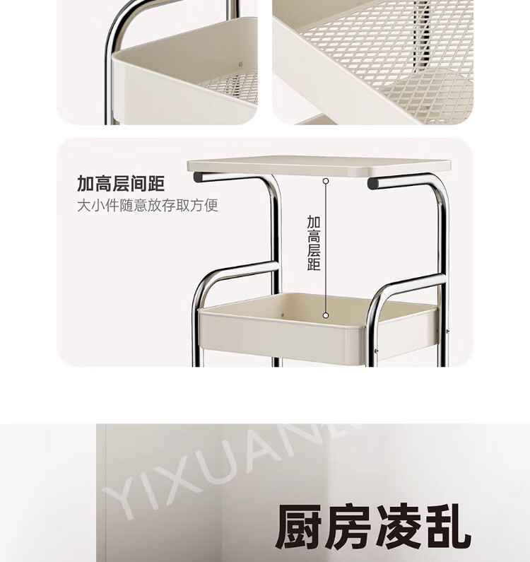 衣炫厨房小推车置物架移动多功能落地放果蔬菜篮子家用多层收纳整理架 电镀银-白板-三层