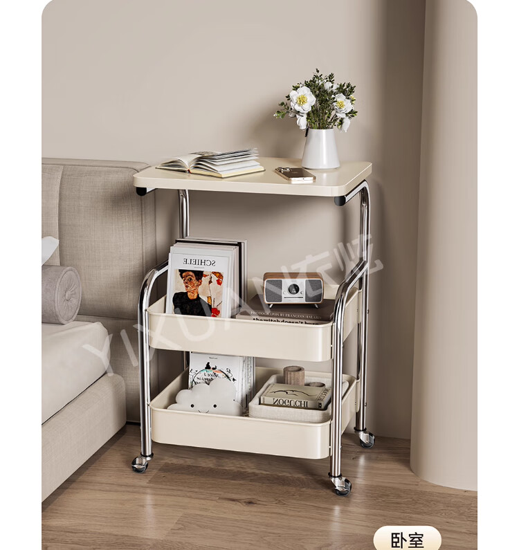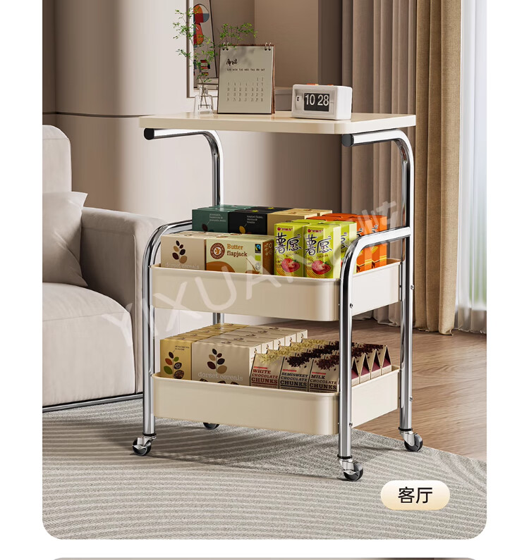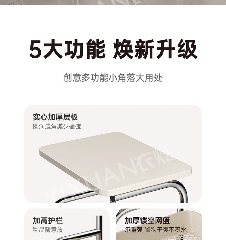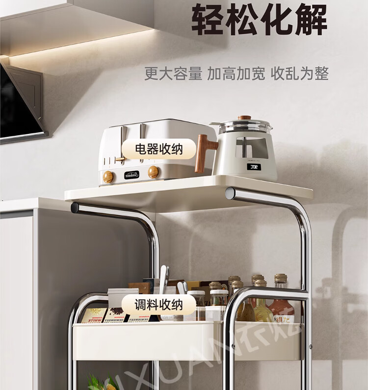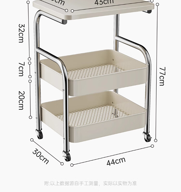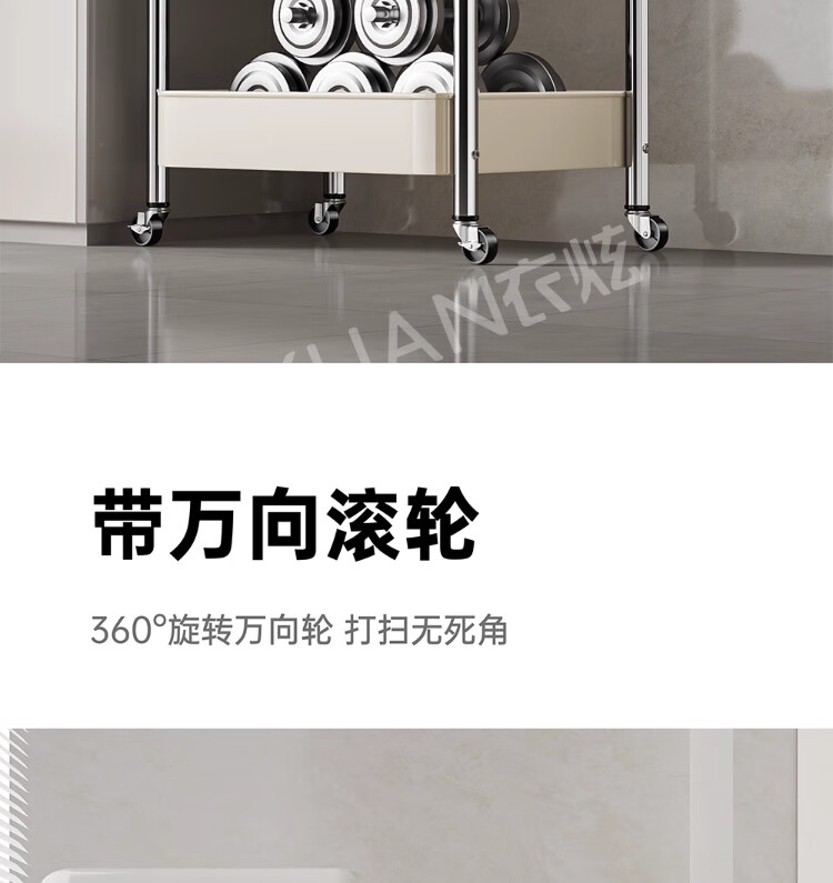 衣炫厨房小推车置物架移动多功能落地放果蔬菜篮子家用多层收纳整理架 电镀银-白板-三层