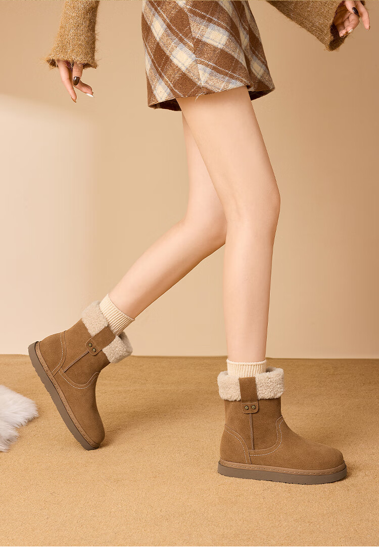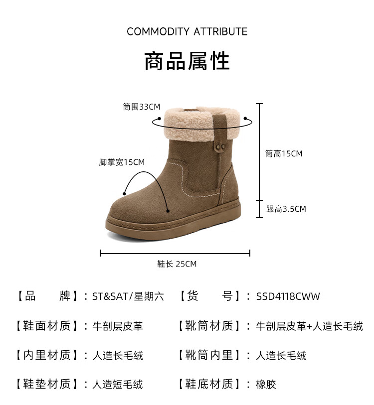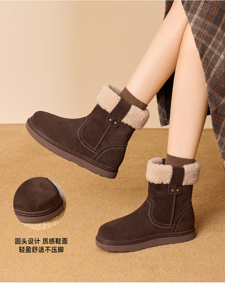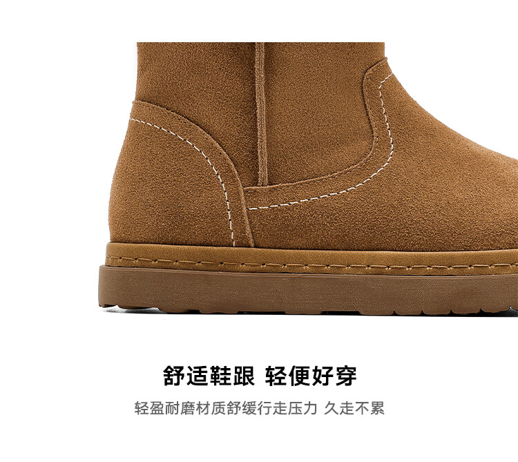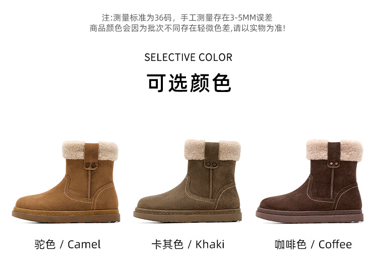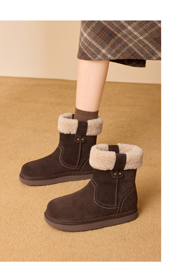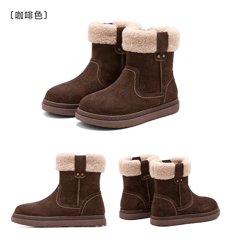 星期六厚底雪地靴女款2025新款冬季牛皮加绒马丁靴加厚保暖毛毛东北棉鞋 咖啡色 【加绒保暖】跟高3.5cm 35