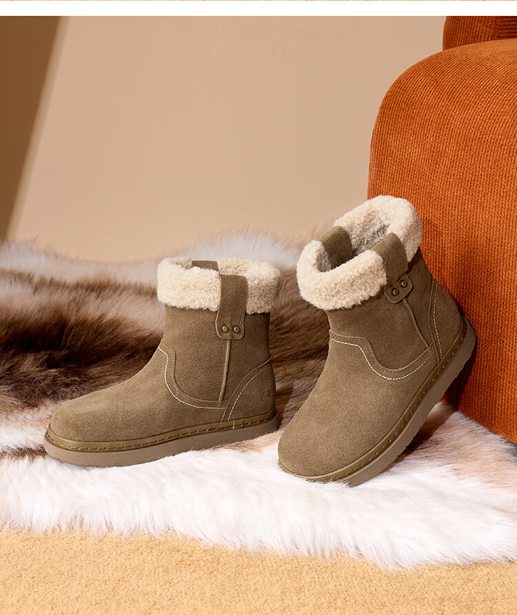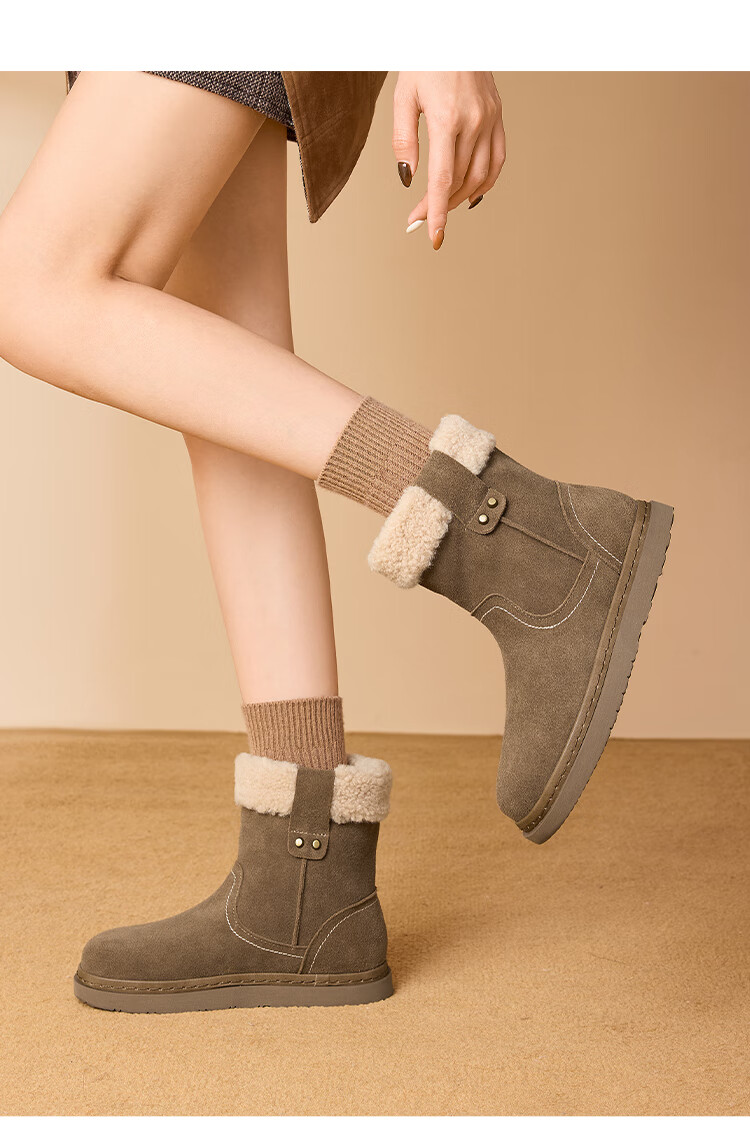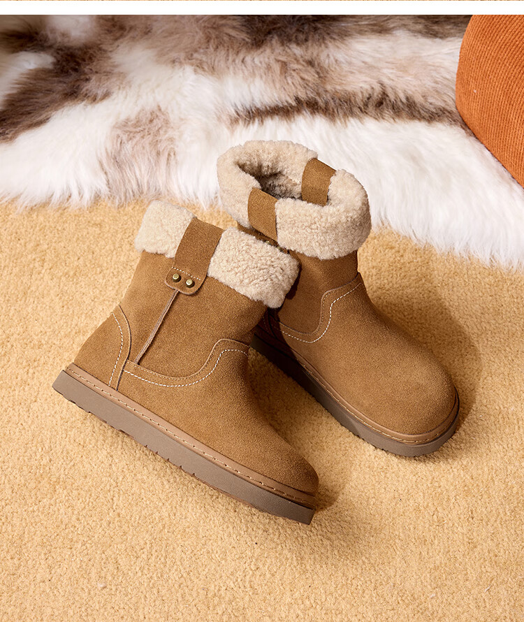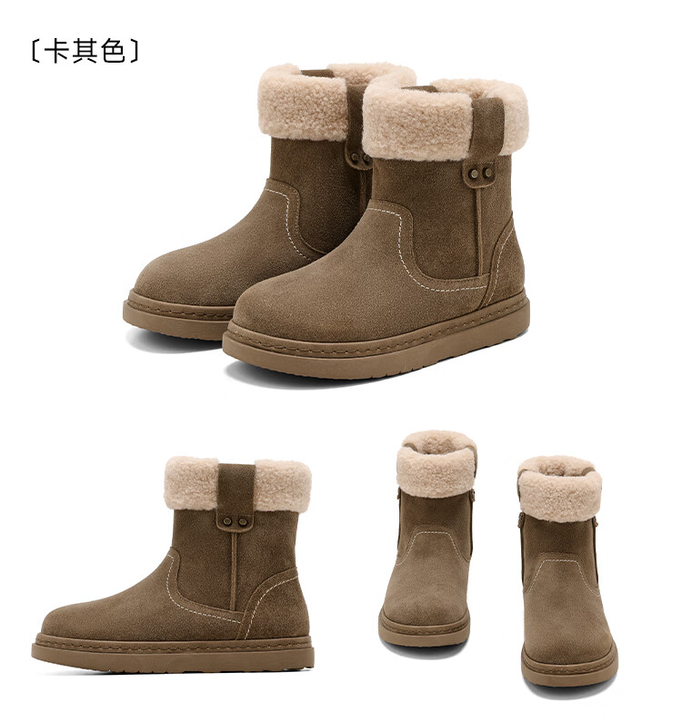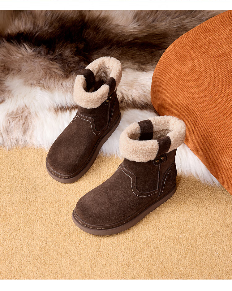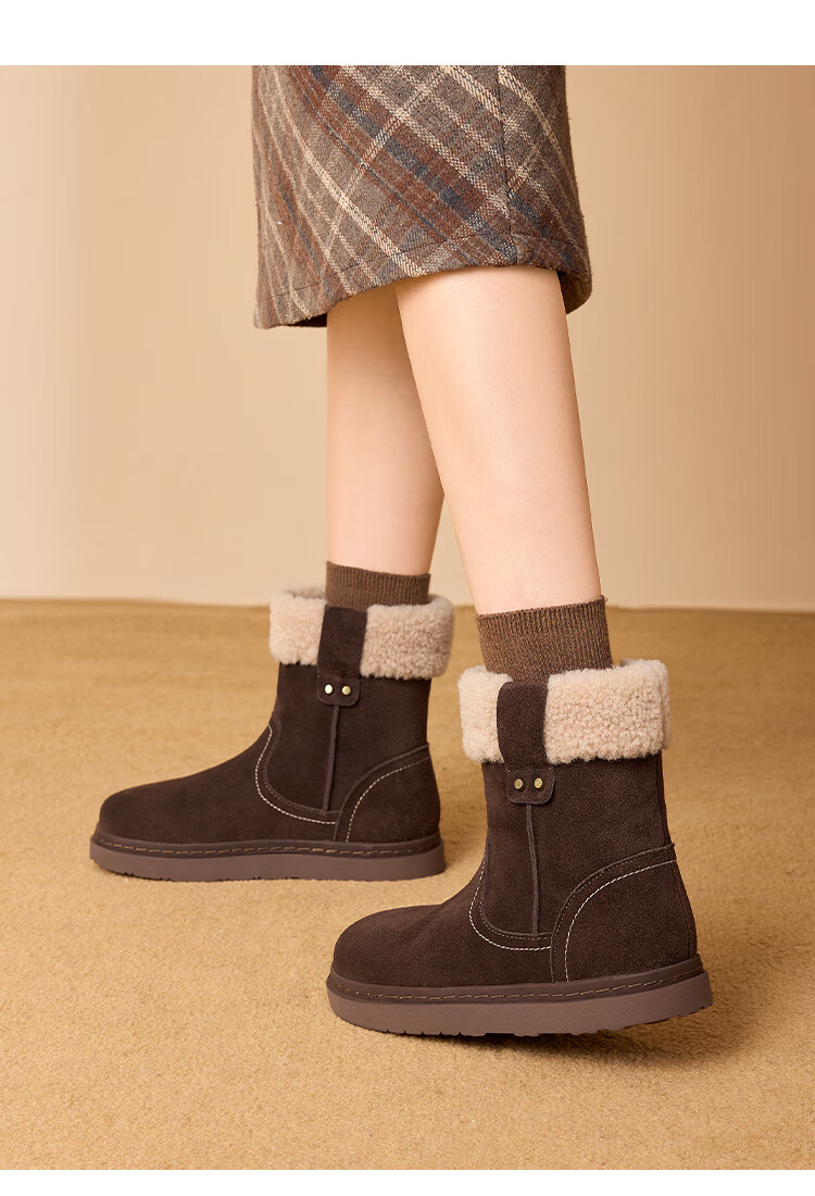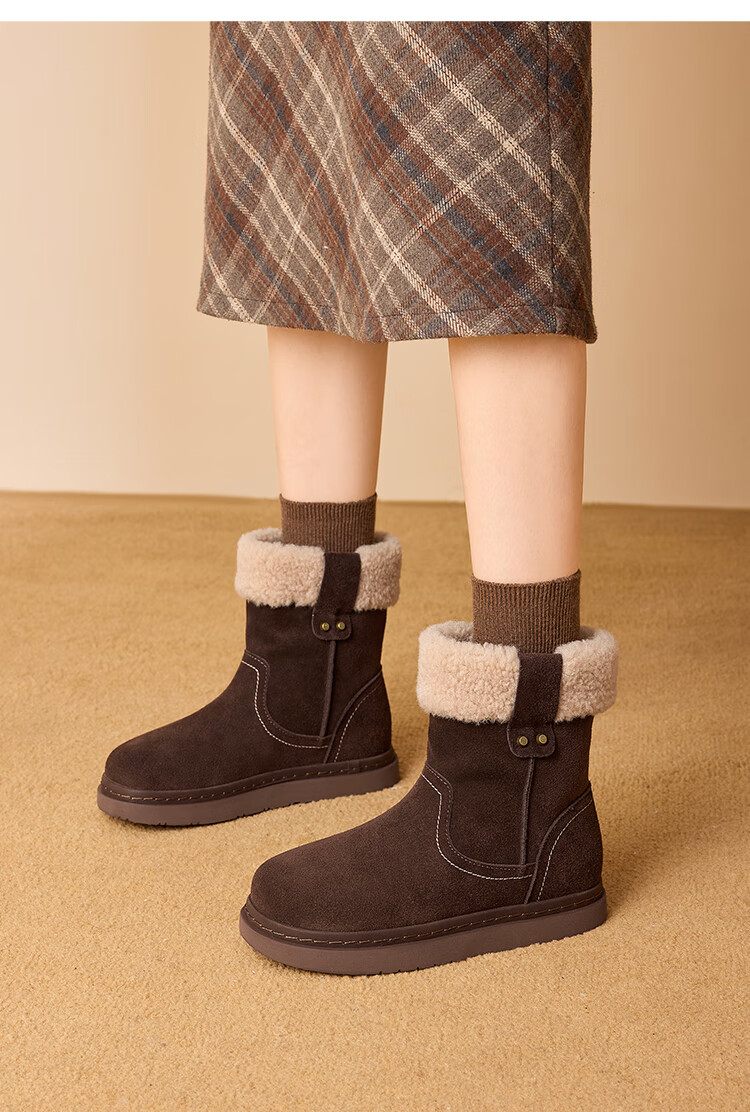 星期六厚底雪地靴女款2025新款冬季牛皮加绒马丁靴加厚保暖毛毛东北棉鞋 咖啡色 【加绒保暖】跟高3.5cm 35