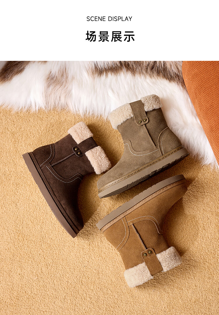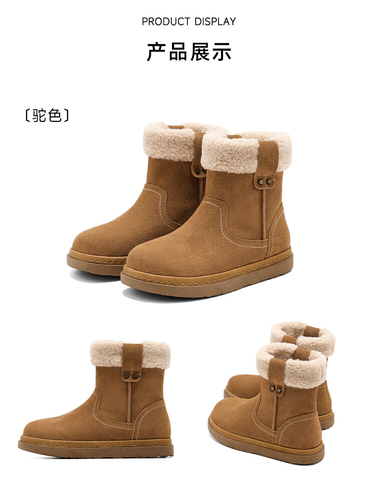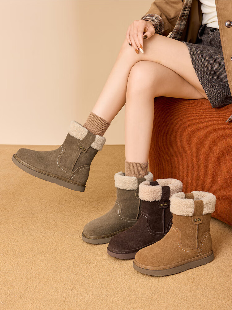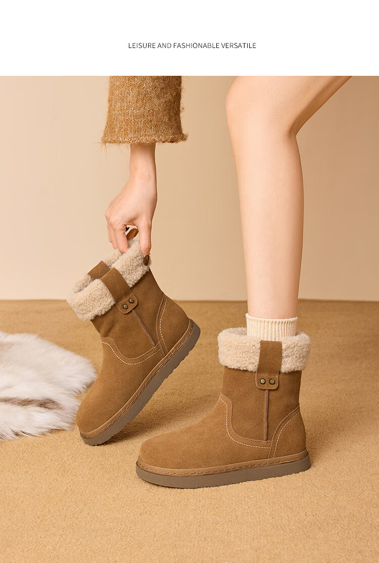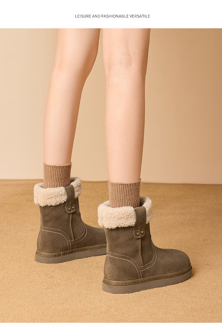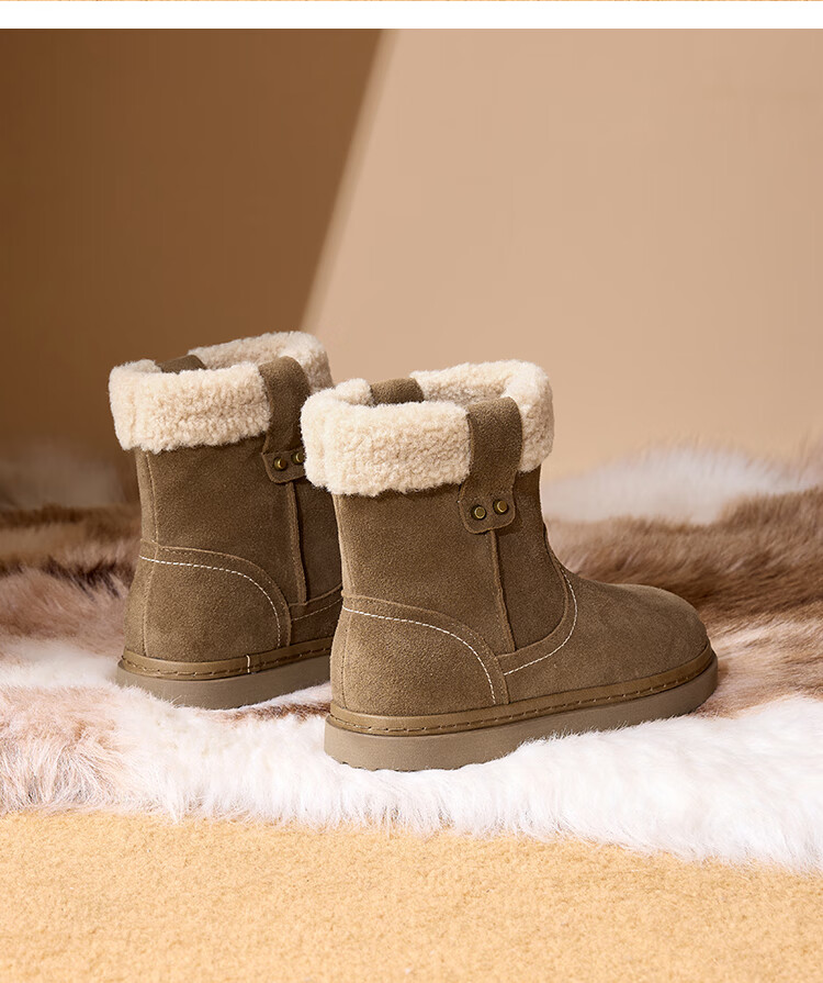 星期六厚底雪地靴女款2025新款冬季牛皮加绒马丁靴加厚保暖毛毛东北棉鞋 咖啡色 【加绒保暖】跟高3.5cm 35