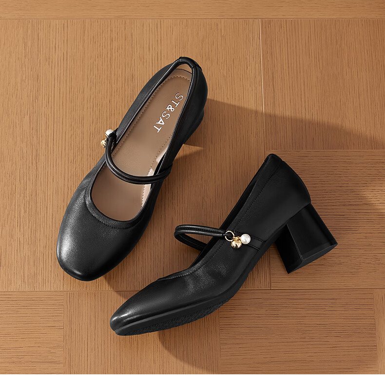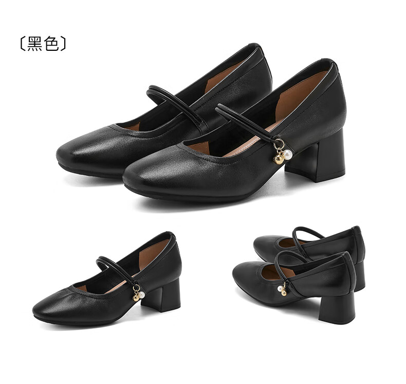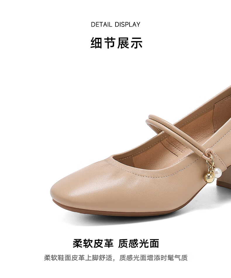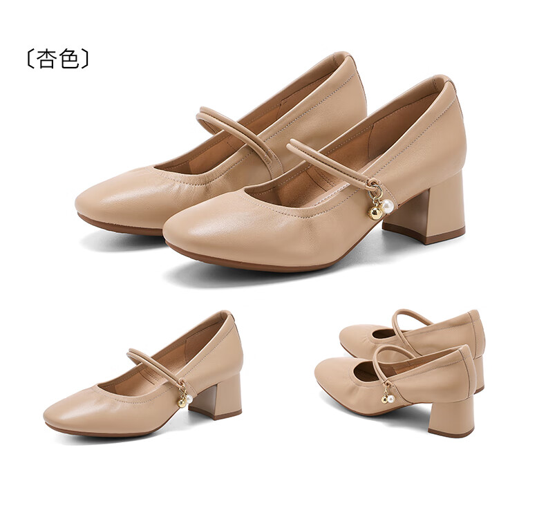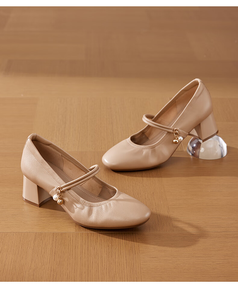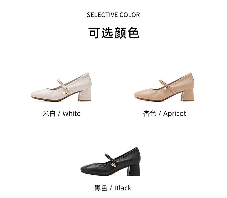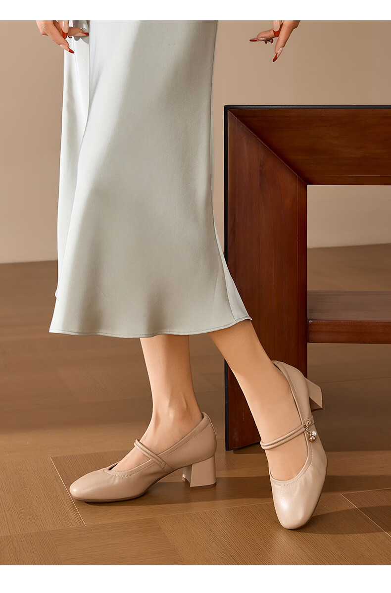 星期六羊皮高跟鞋女2025夏季新款法式复古单鞋粗跟不累脚玛丽珍鞋 米白 35