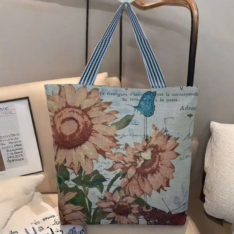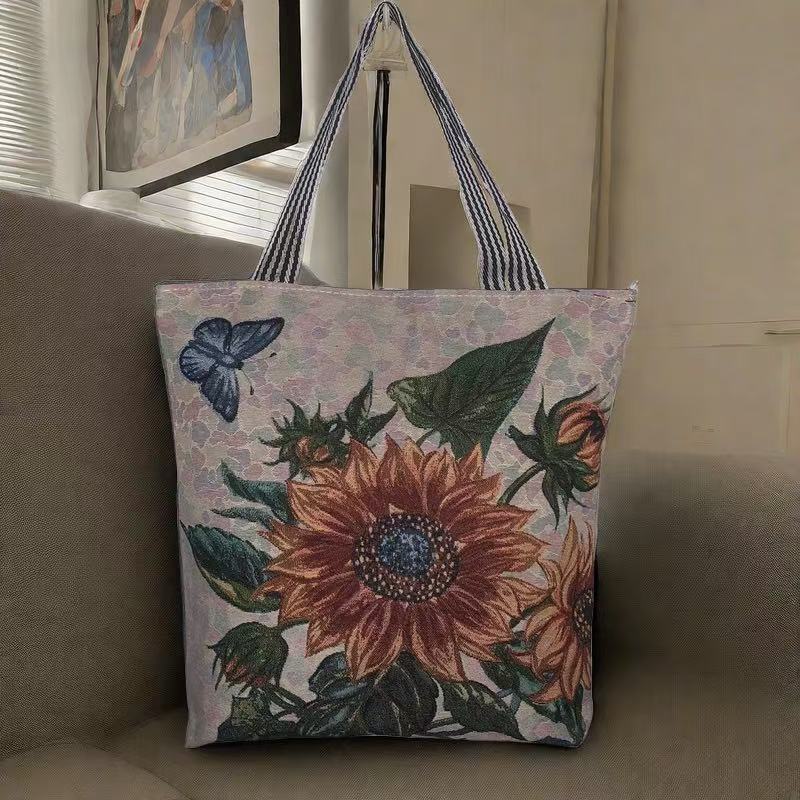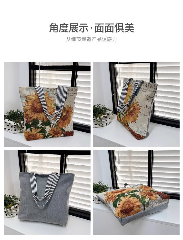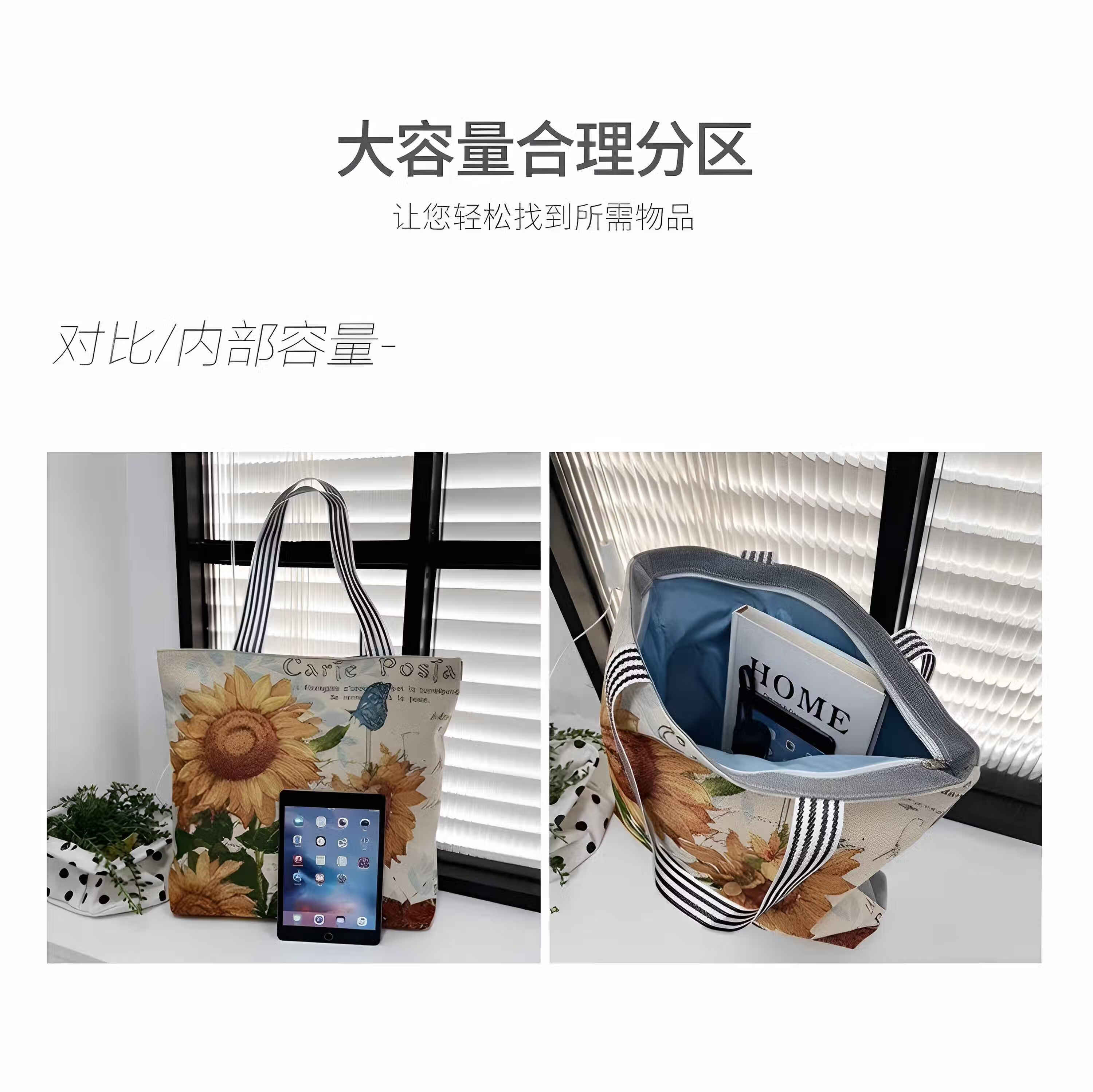 朋意手提帆布包复古时尚单肩包小众手提包帆布袋上班 包包 帆布袋手提包-向日葵2号-1个 无规格