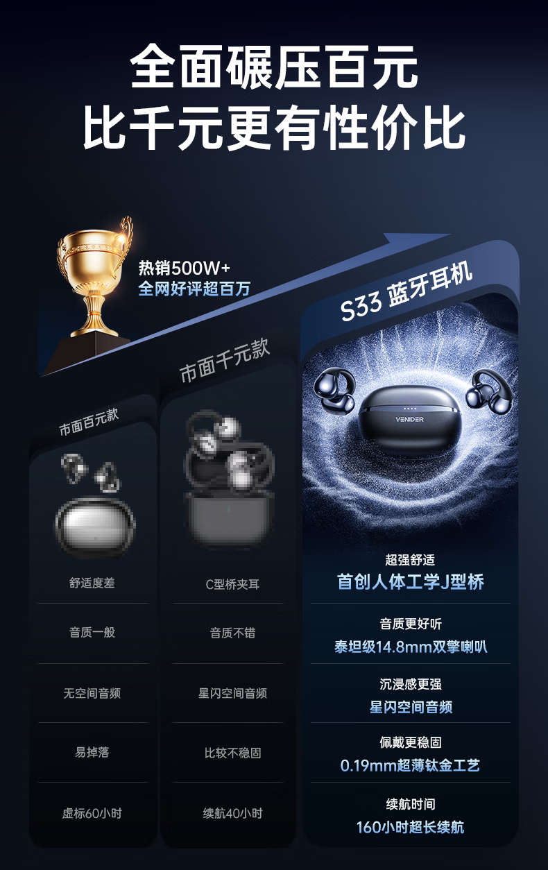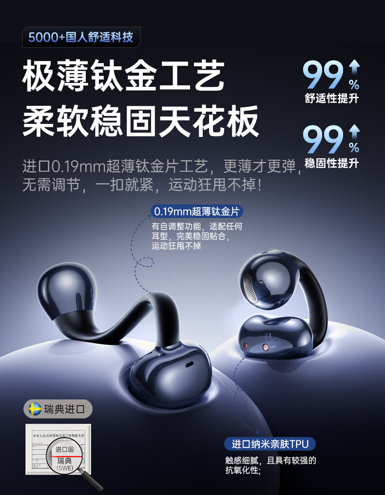 唯立德【国家补贴15%丨全网好评百万】蓝牙耳机耳夹式超长续航无线不伤不入耳朵跑步运动开放式类骨传导