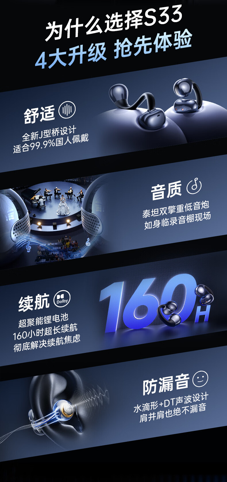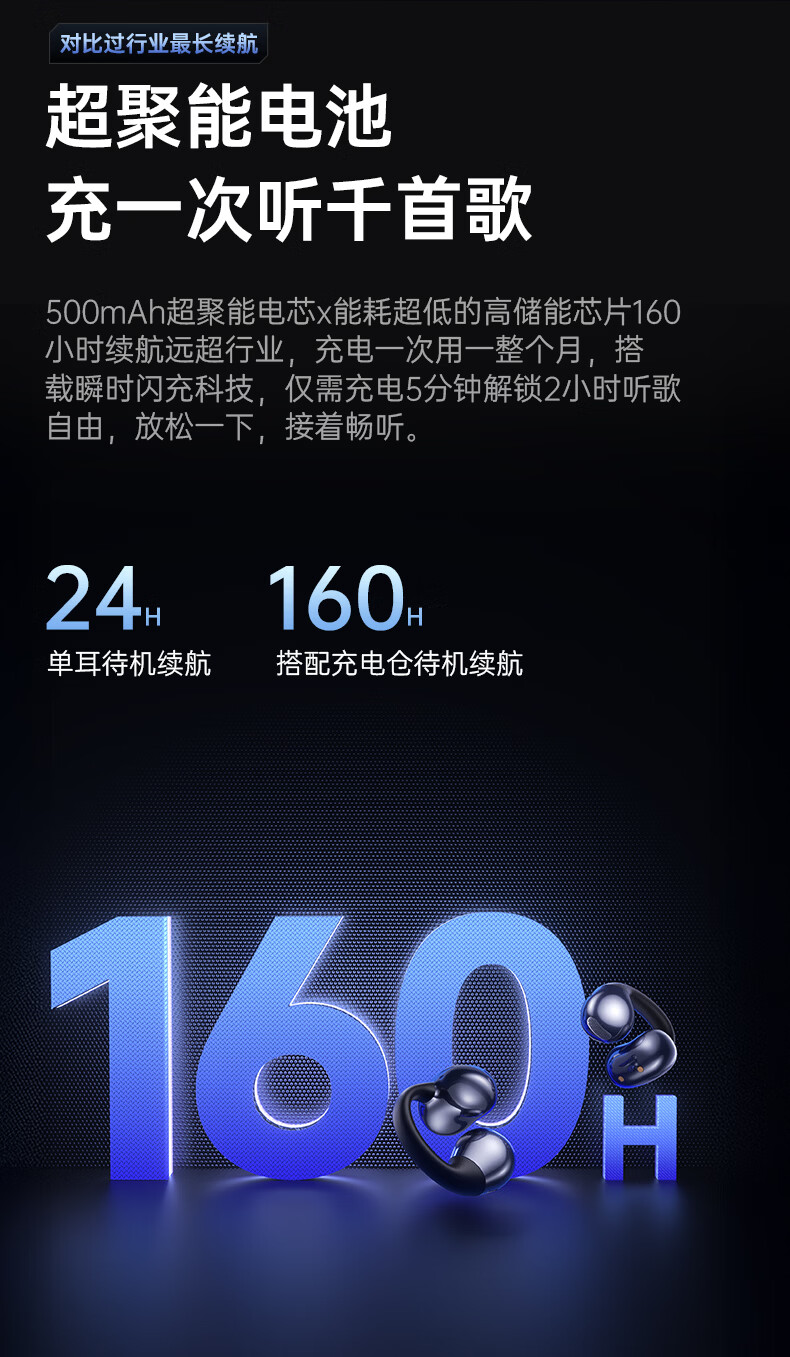 Linklike【100%好评丨60H超长续航】蓝牙耳机耳夹式音乐榜前十无线运动耳机跑步不伤耳朵 60H超长续航丨云感佩戴 千元级配置+苹果华为安卓通用