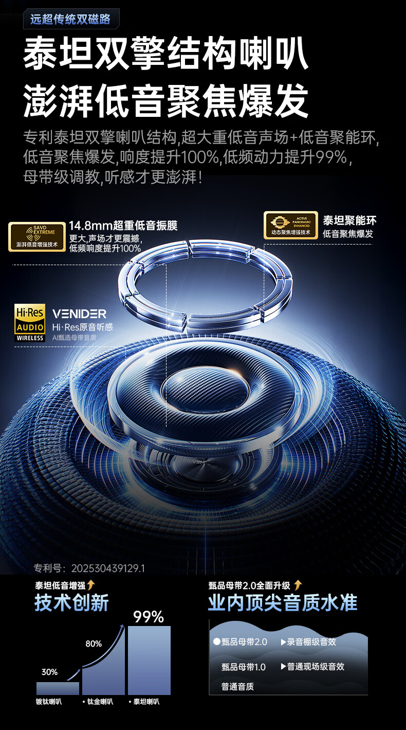 籁特易耳【八仓现货】星环Ultra蓝牙耳机入耳式真无线HiFi高音质主动降噪超长续航游戏音乐运动耳机 柔蓝【千元音质丨深空降噪】 LDAC/LHDC-双版本