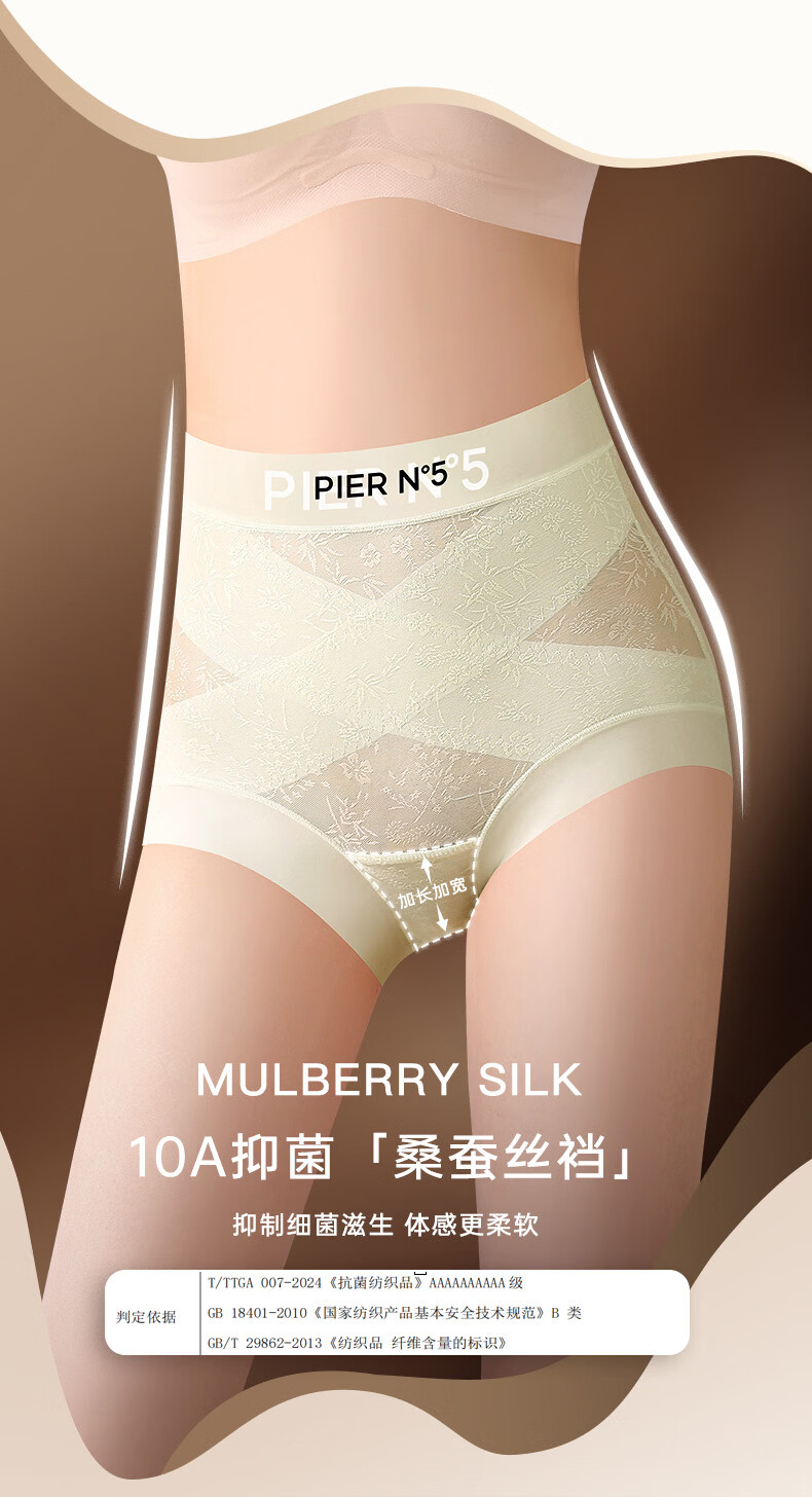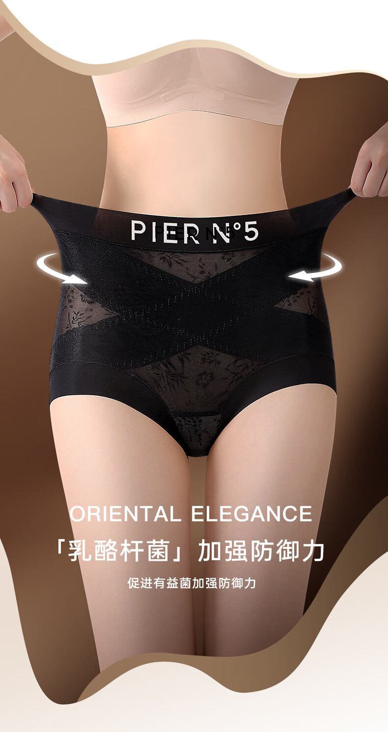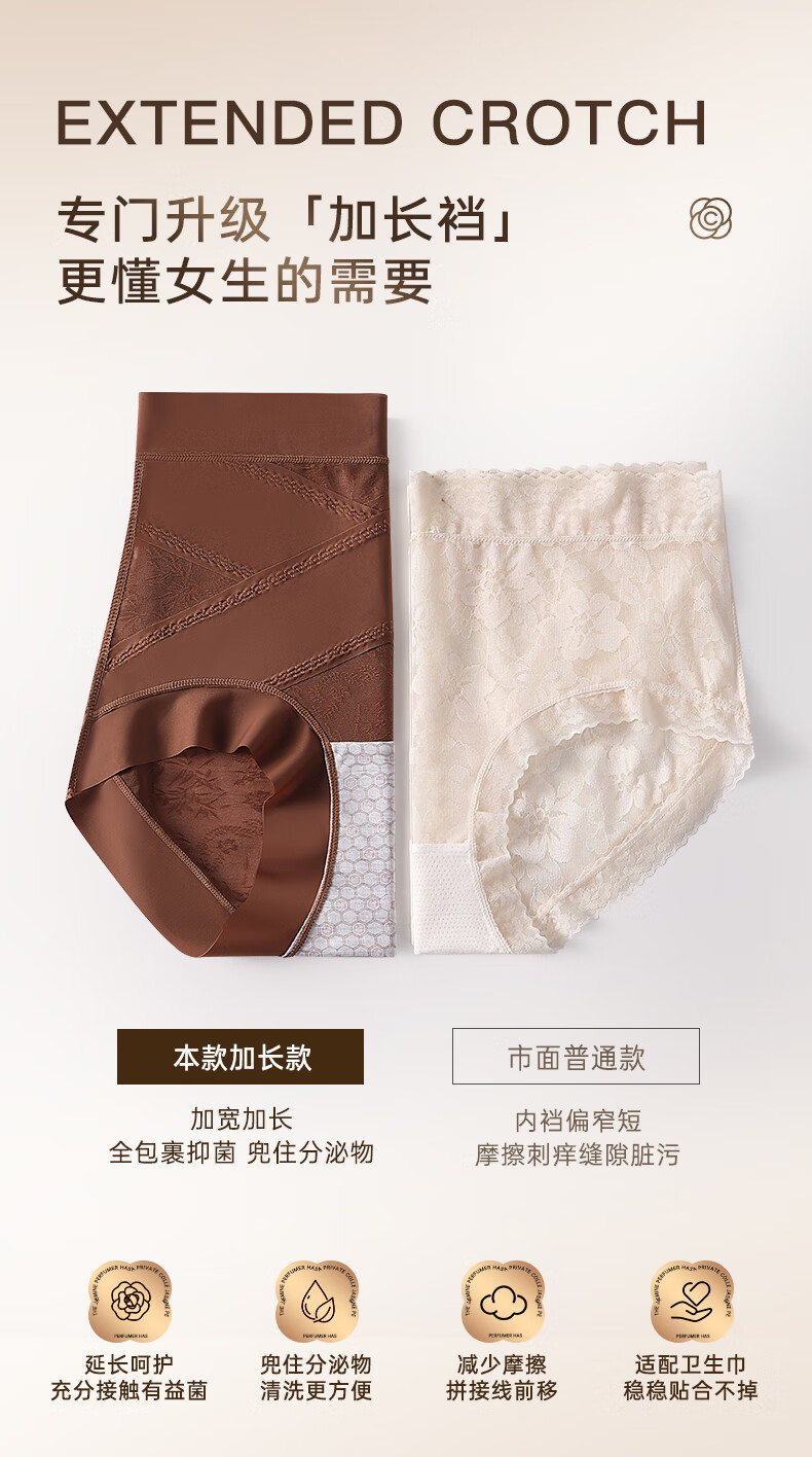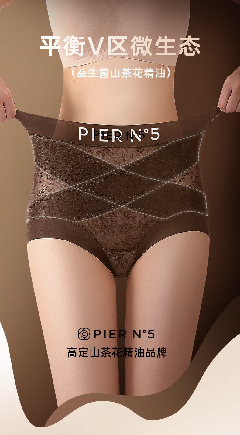 草本初色秋冬女士内裤新款山茶花精油无痕中高腰轻收腹全包裹平角塑形