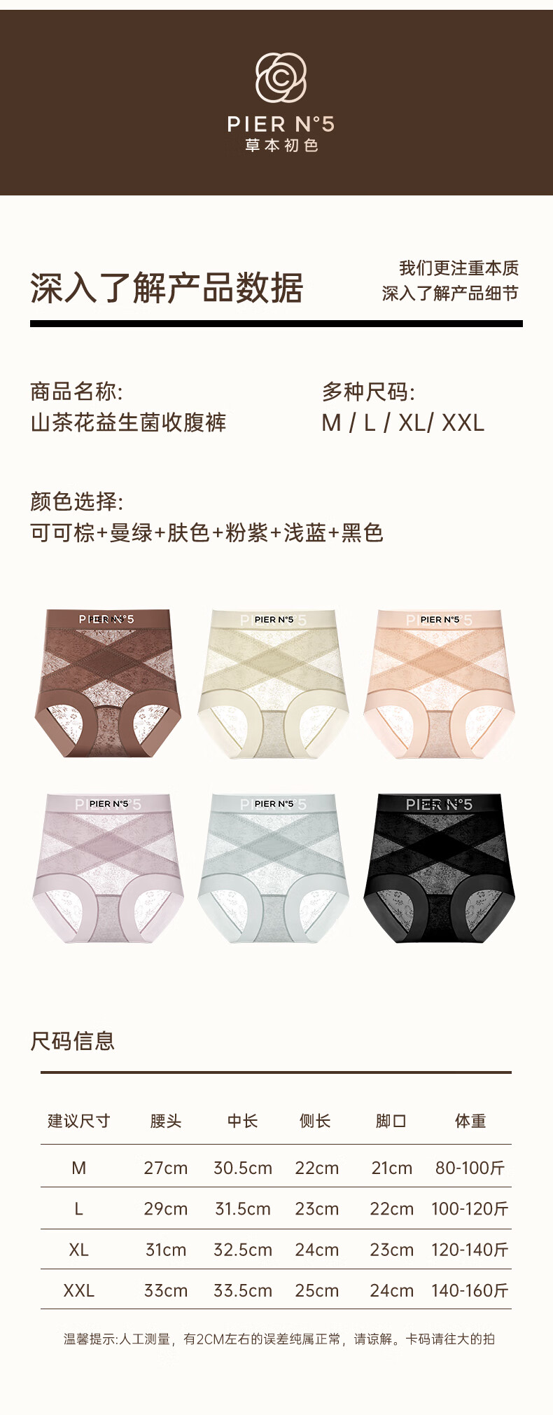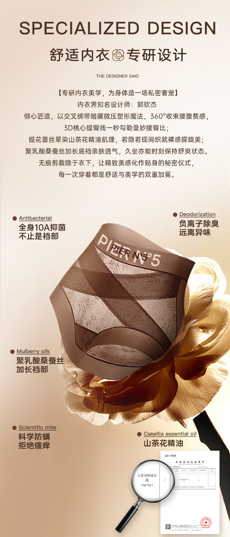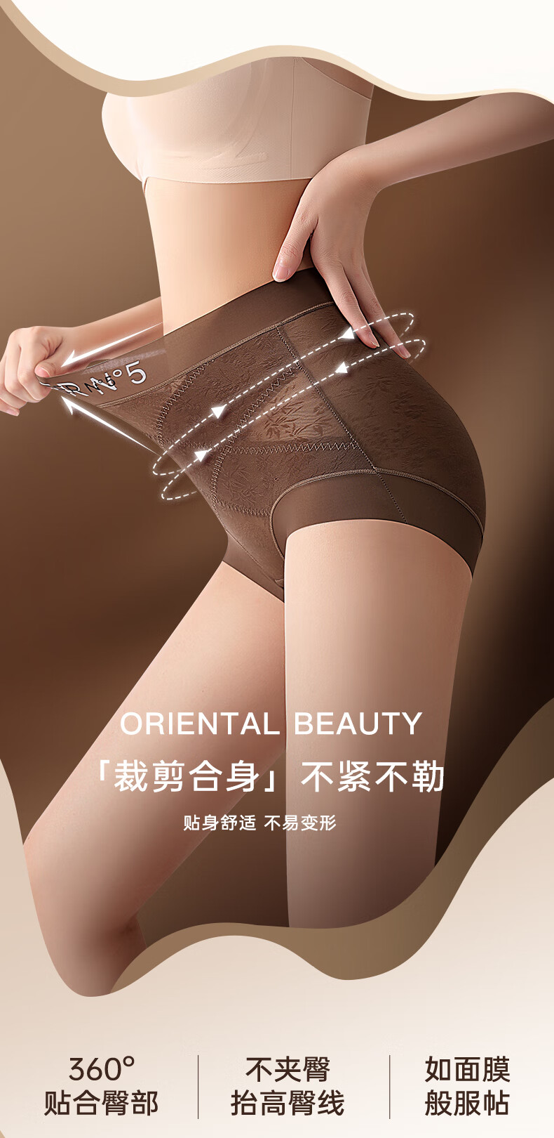 草本初色秋冬女士内裤新款山茶花精油无痕中高腰轻收腹全包裹平角塑形
