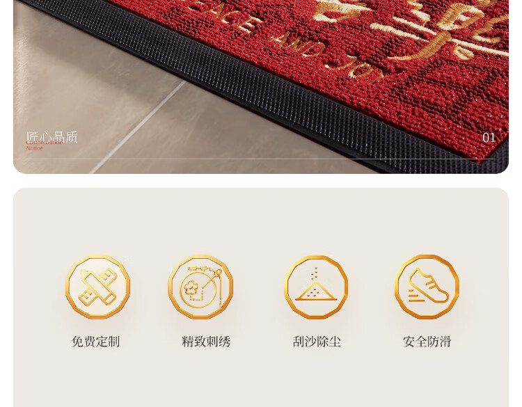 朗格高端入户地垫轻奢脚垫进户门垫红色别墅乔迁豪宅室外门内防滑垫子