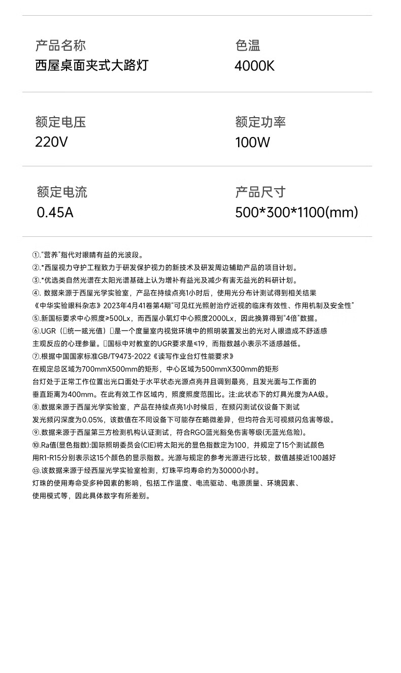 西屋(Westinghouse)逐光护眼灯大路灯儿童学习全光谱台灯学生阅读专用桌面夹式灯Z WWZ100