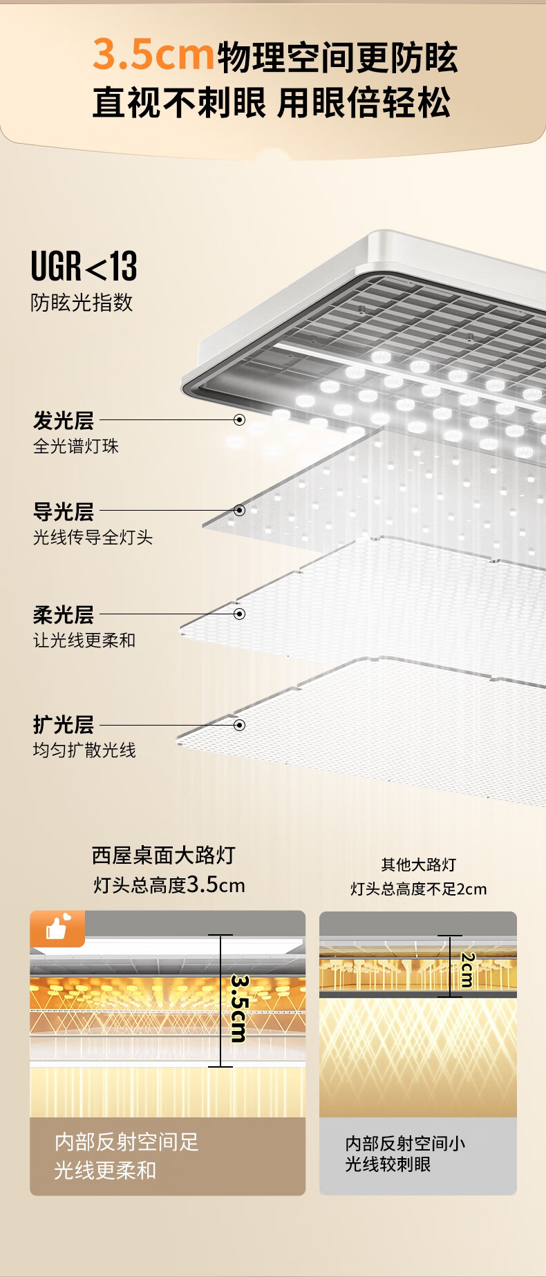 昆迪卡护眼超薄吸顶灯客厅灯长方形大厅卧室吸顶灯房间简约大气书房中山 黑金50cm园48瓦 三色变光