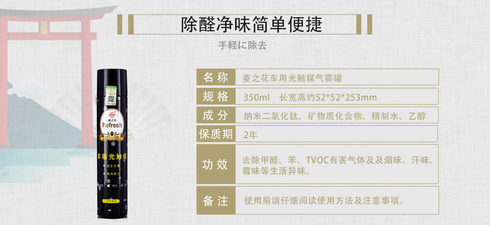 菱之花菱之花 新车除味去甲醛 日本进口车用光触媒喷剂 车内除TVOC异味 车用光触媒350ml