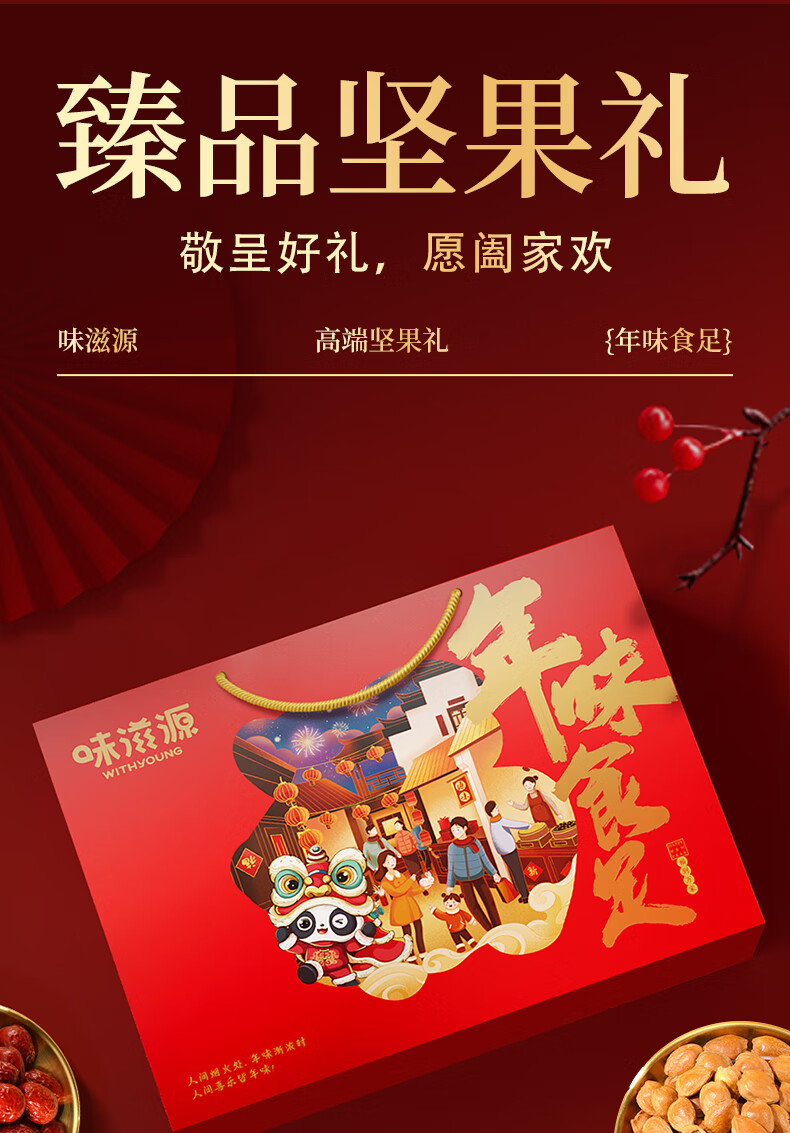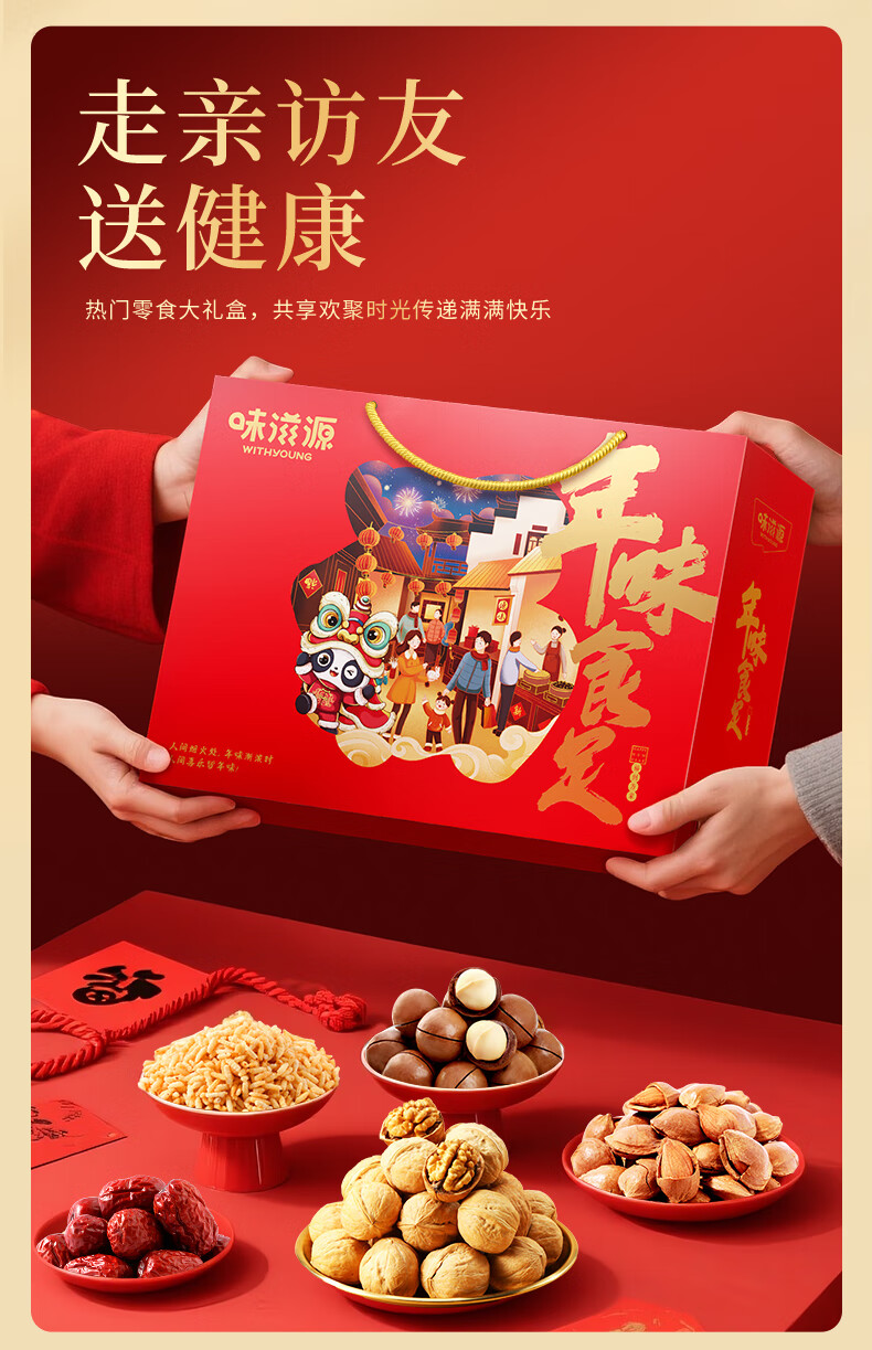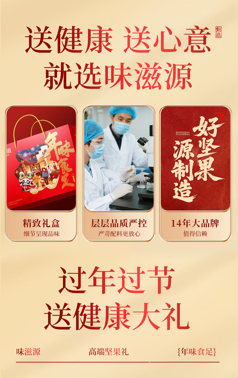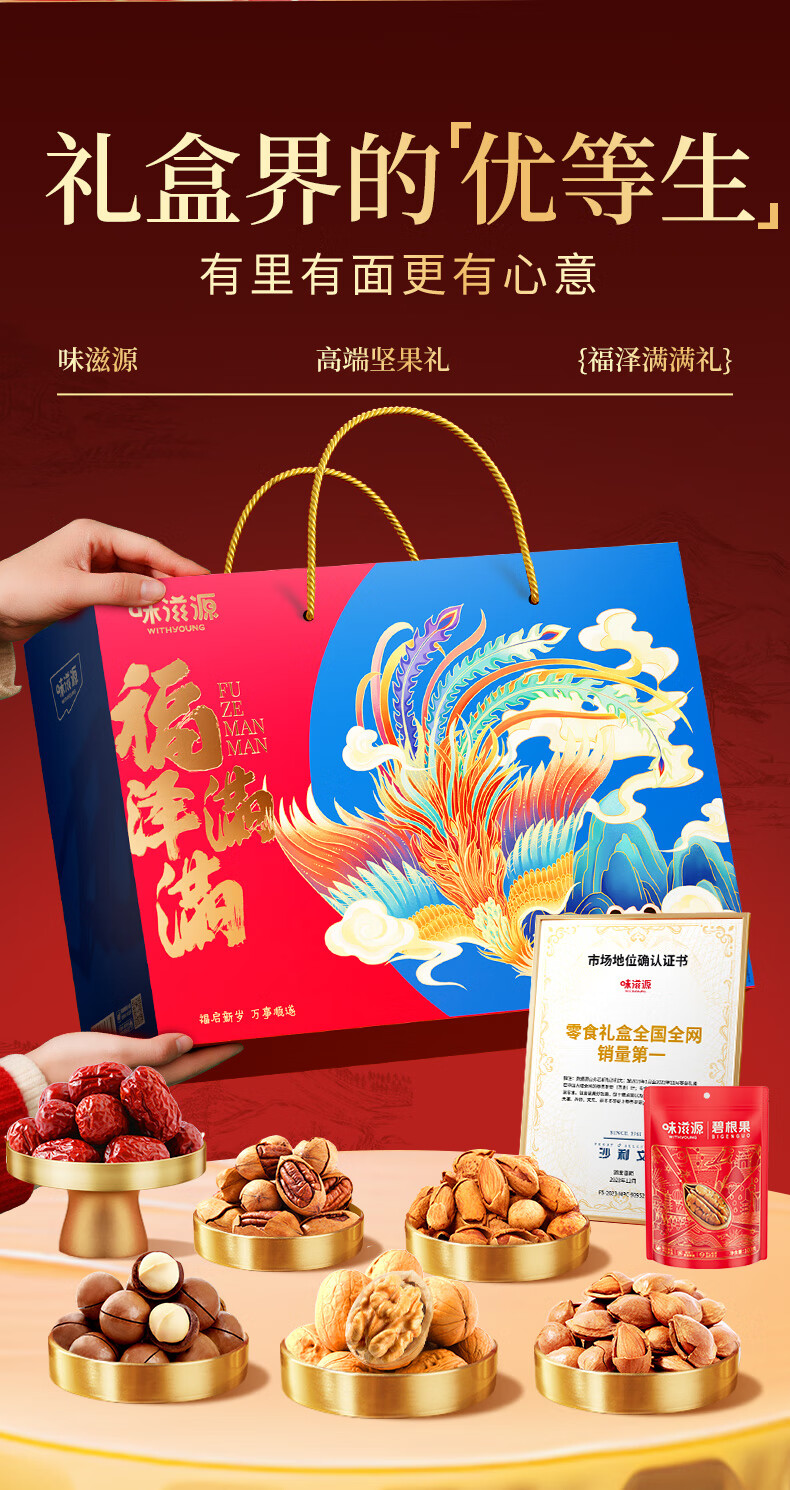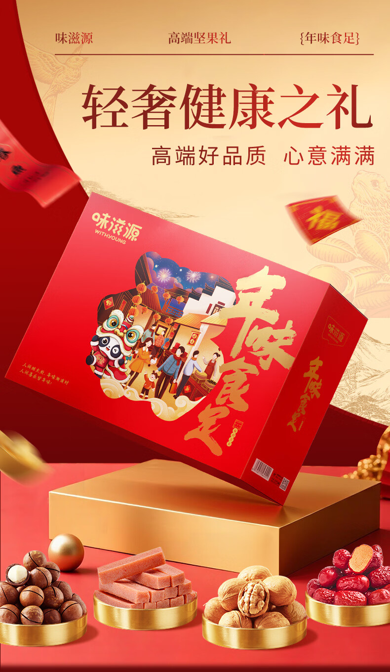 味滋源年货节坚果礼盒混合坚果炒货每日坚果年货节日送礼企业团购 【礼盒装】坚果礼盒1406g【10包】