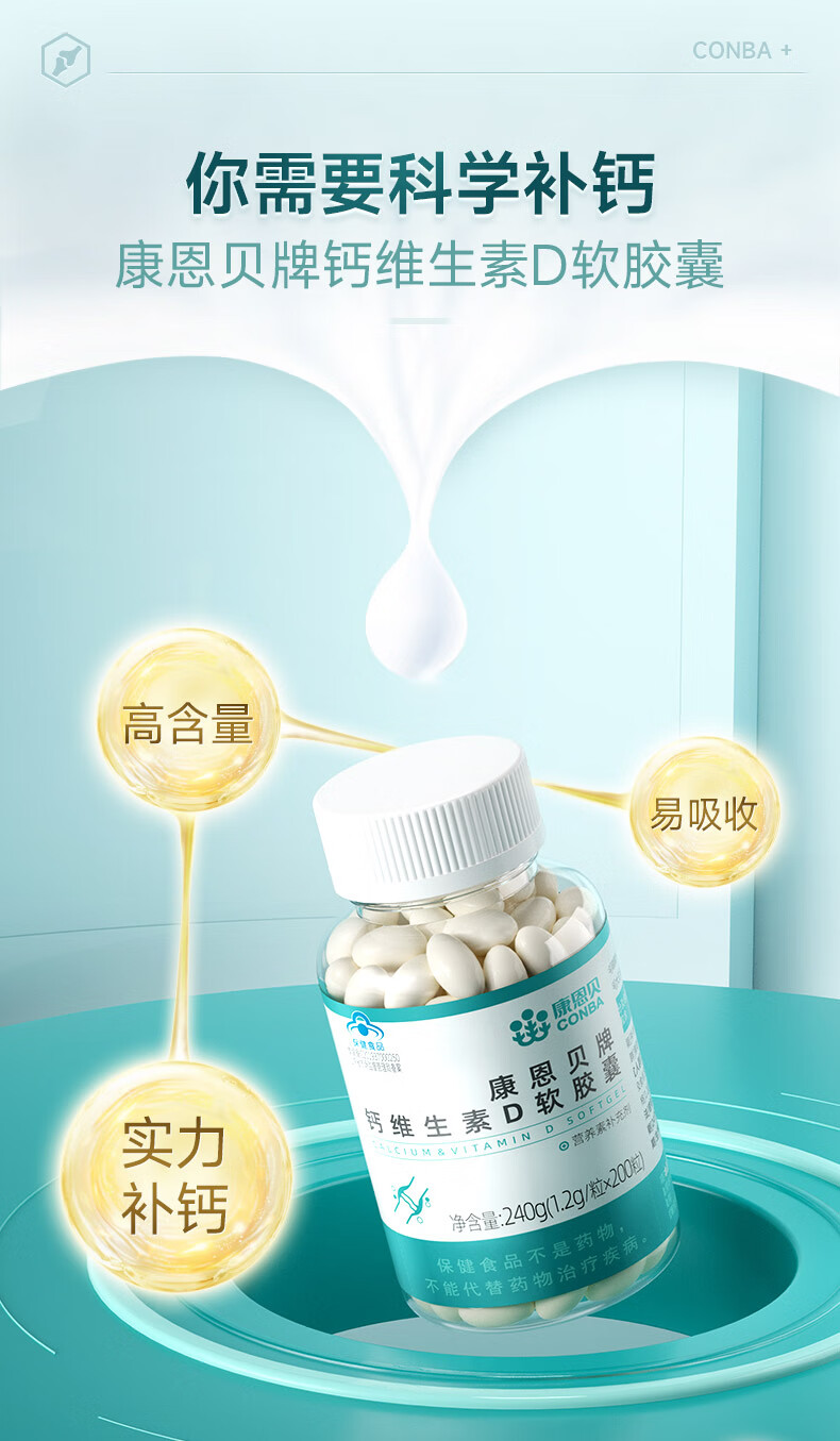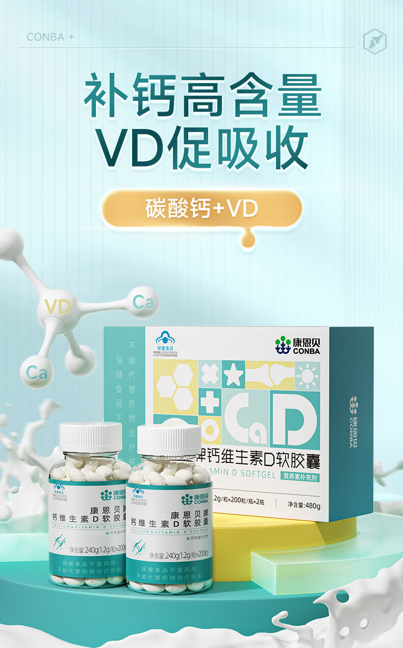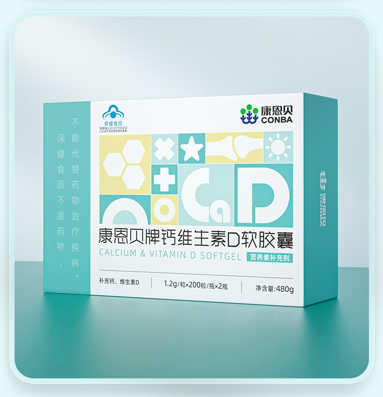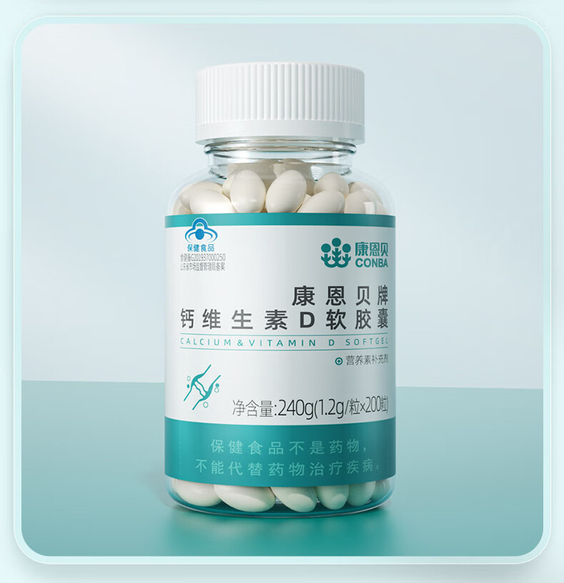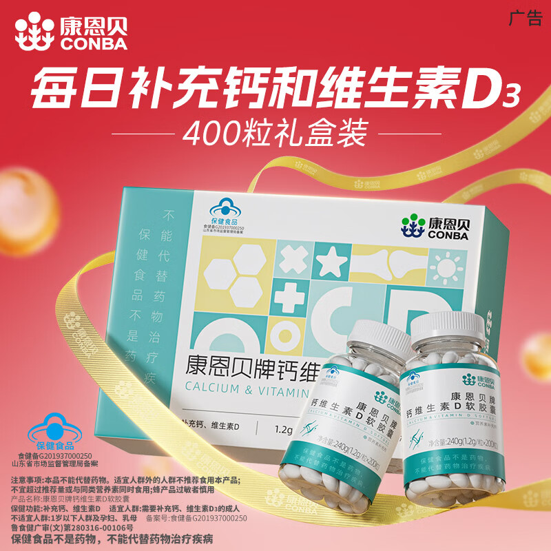康恩贝钙D软胶囊200粒*2瓶瓶礼盒装 钙维生素d 中老年成人 送长辈 礼盒