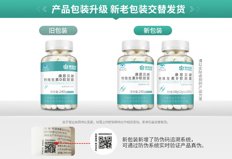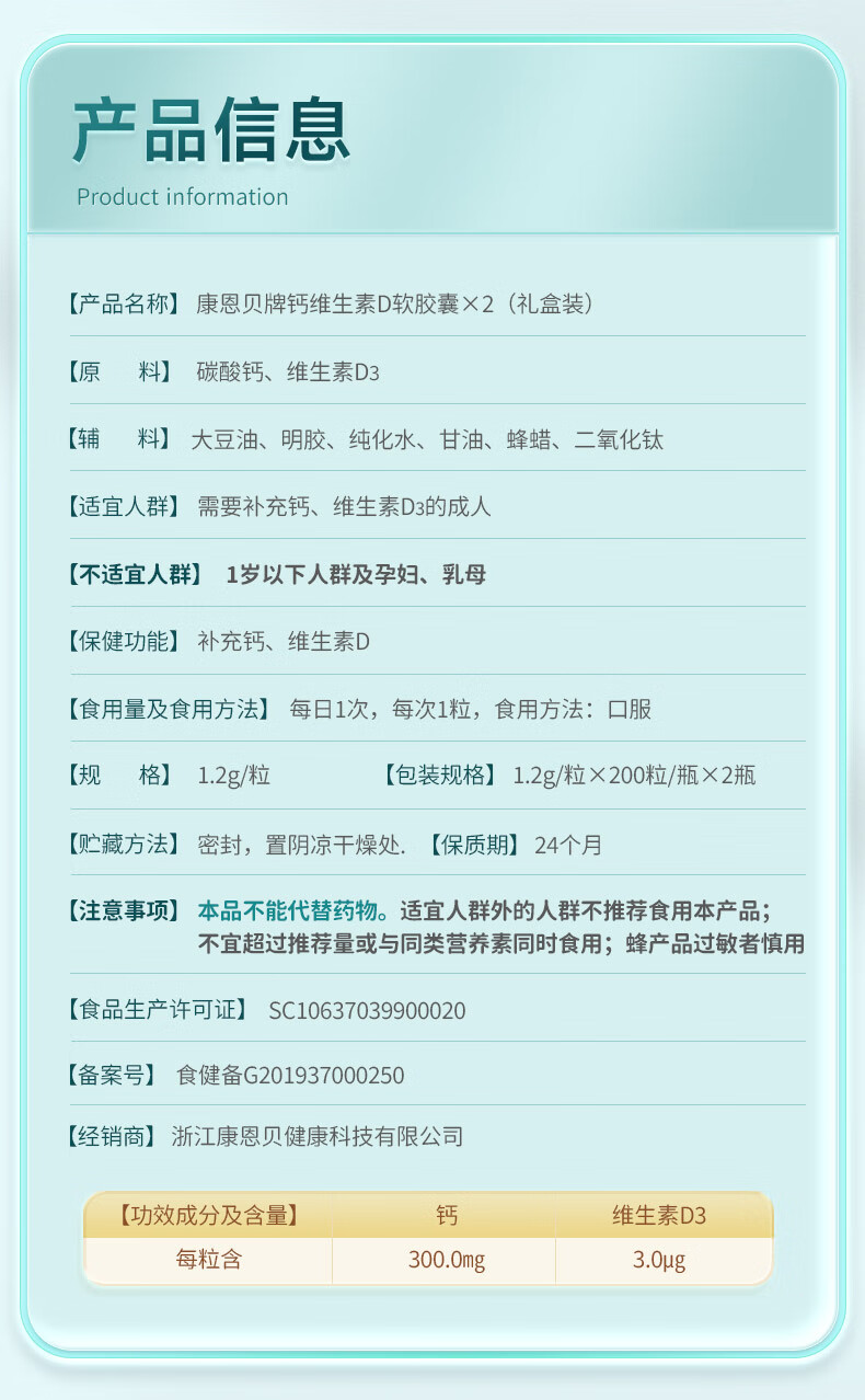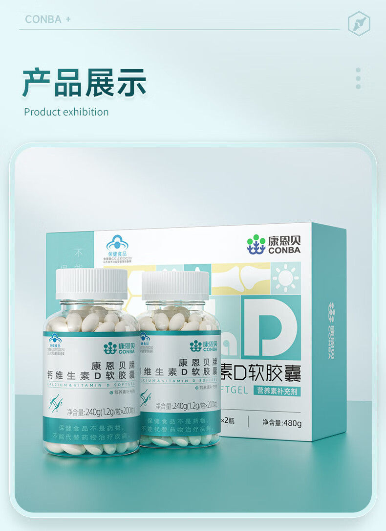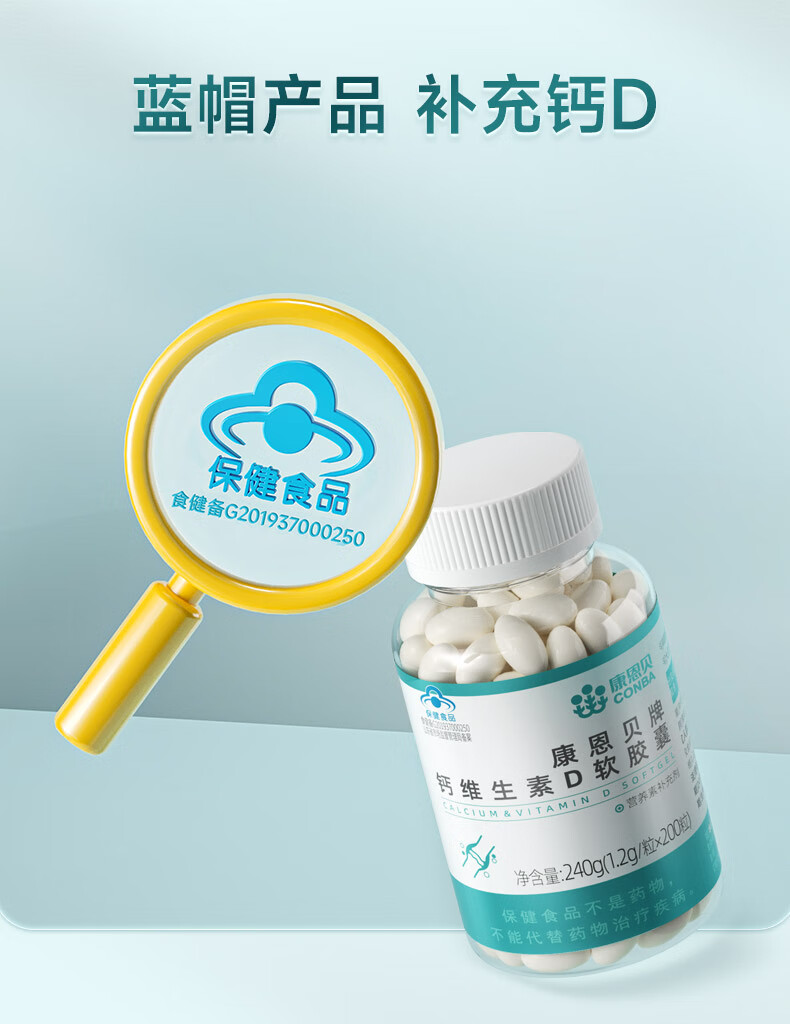 康恩贝钙D软胶囊200粒*2瓶瓶礼盒装 钙维生素d 中老年成人 送长辈 礼盒
