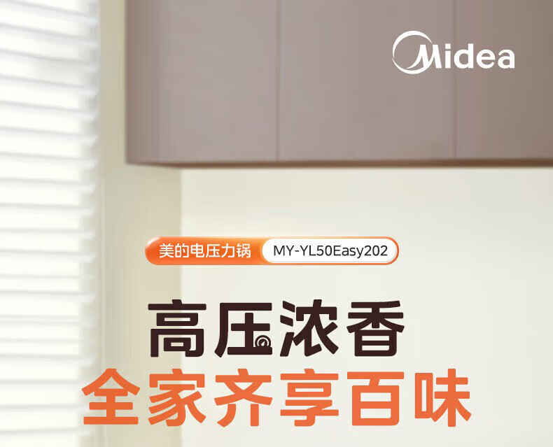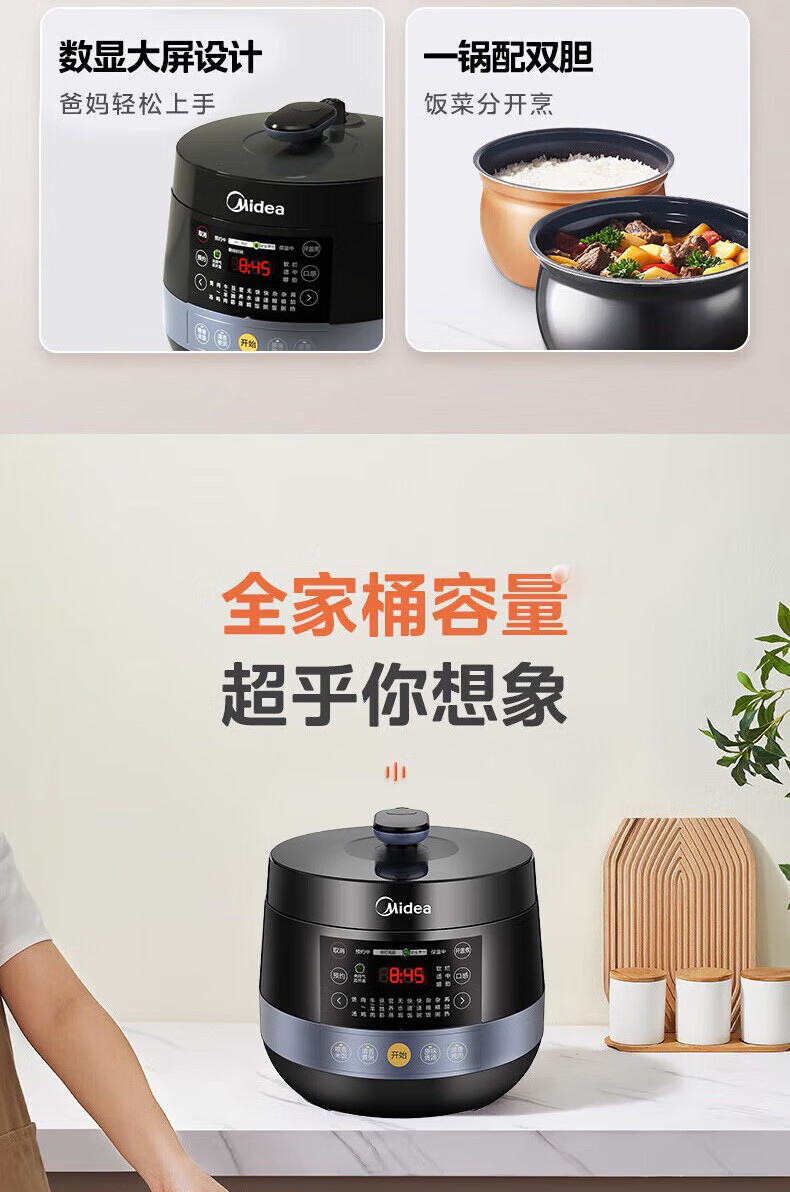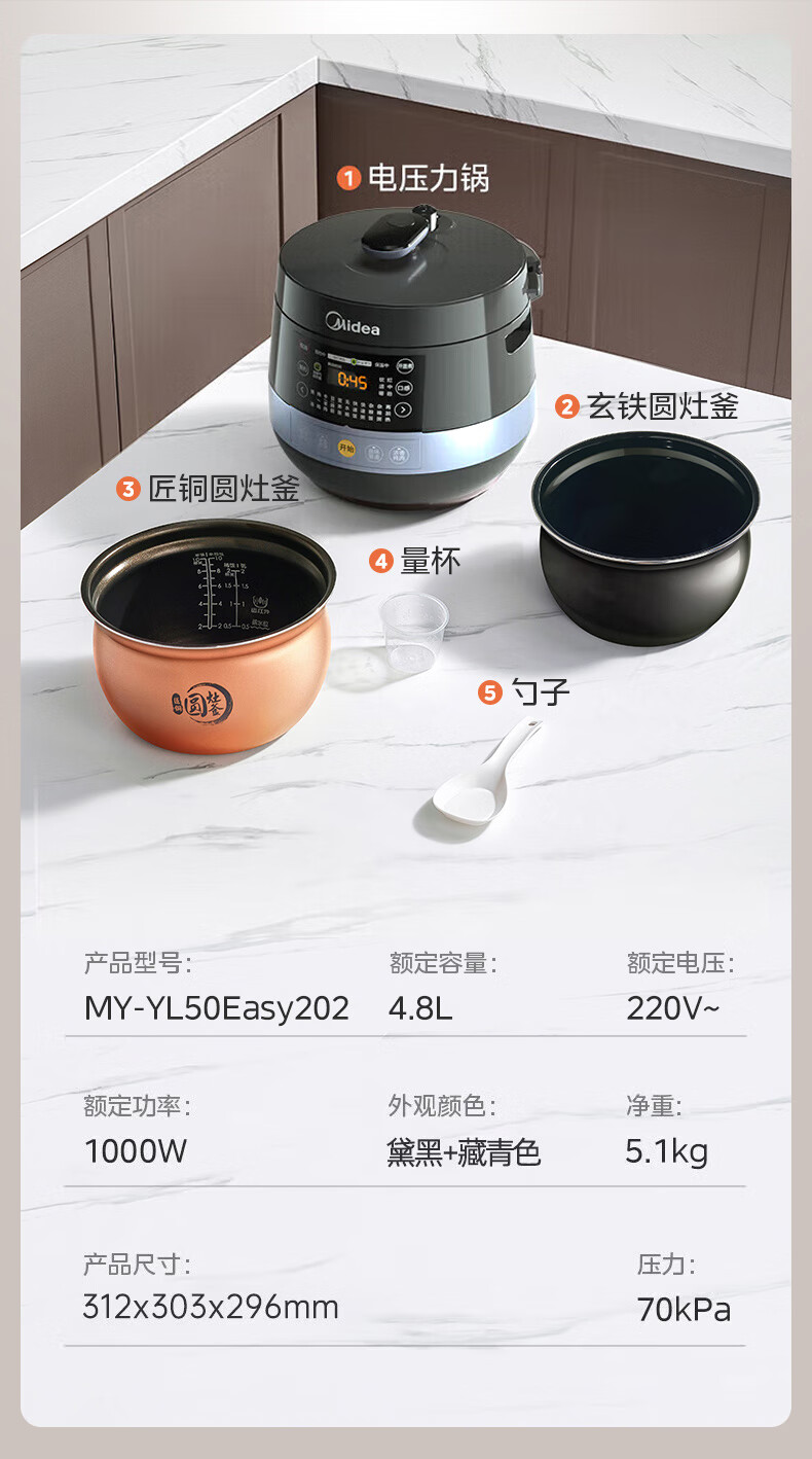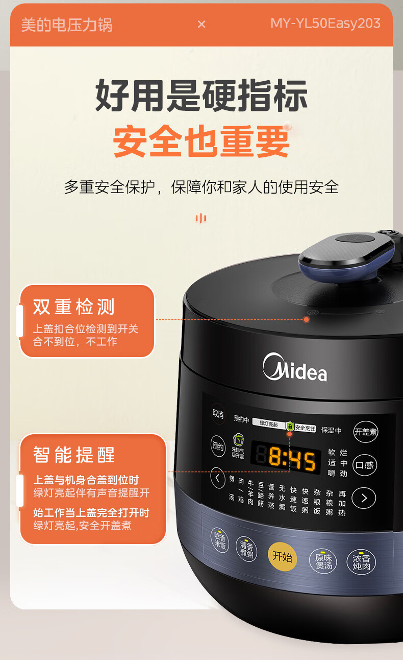美的(Midea)电压力锅圆釜系列双胆高压电饭锅 家用全自动智能预约开盖煮小米粥炖汤YL50Easy202电饭煲4-6人