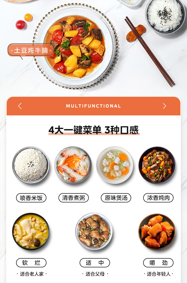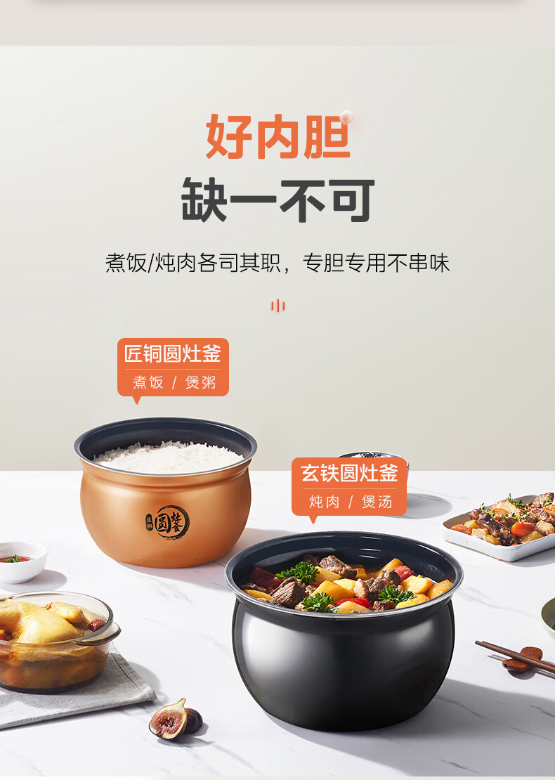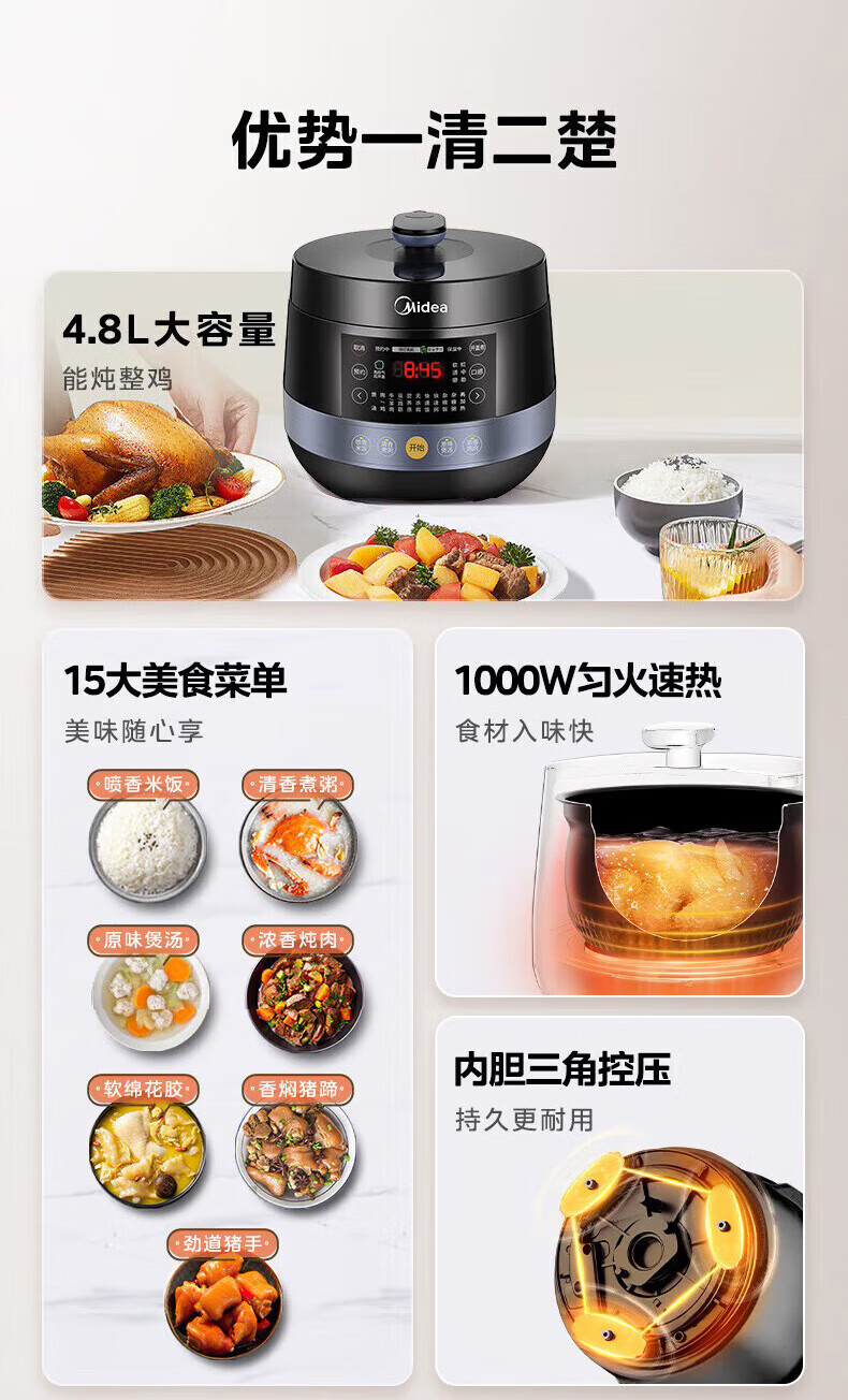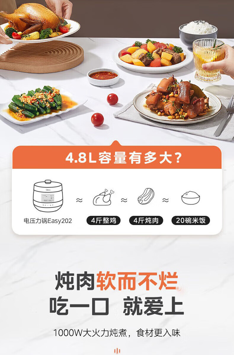 美的(Midea)电压力锅圆釜系列双胆高压电饭锅 家用全自动智能预约开盖煮小米粥炖汤YL50Easy202电饭煲4-6人