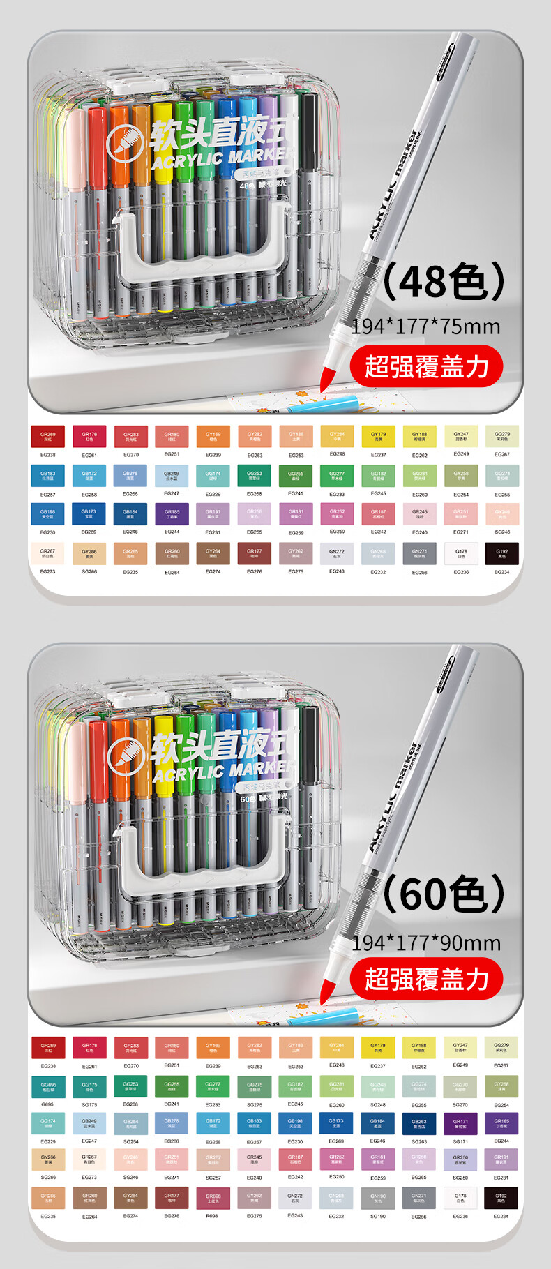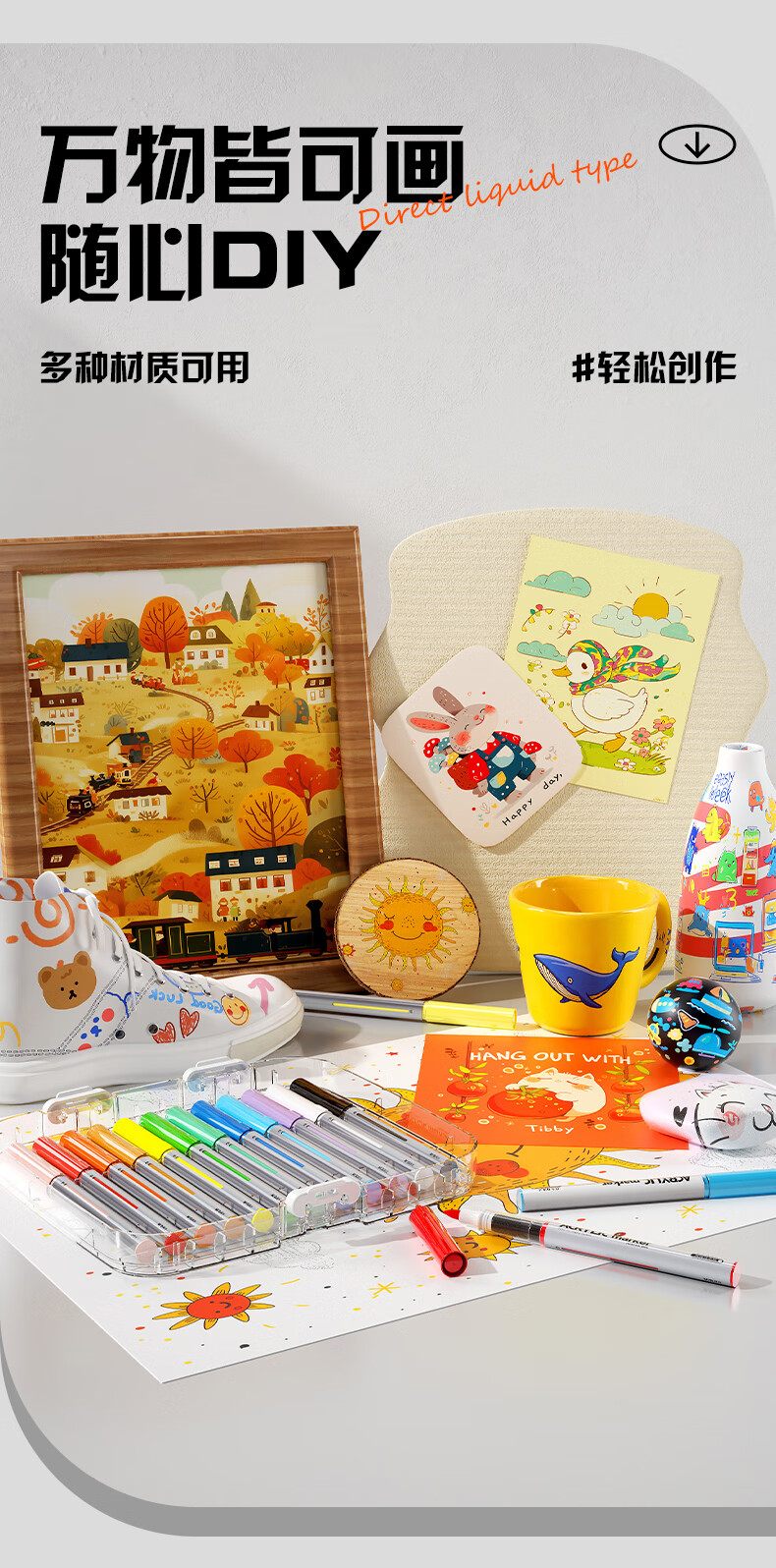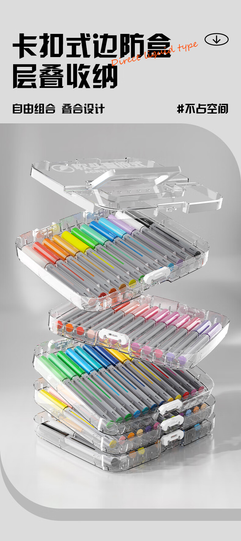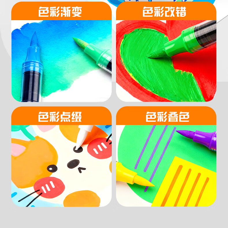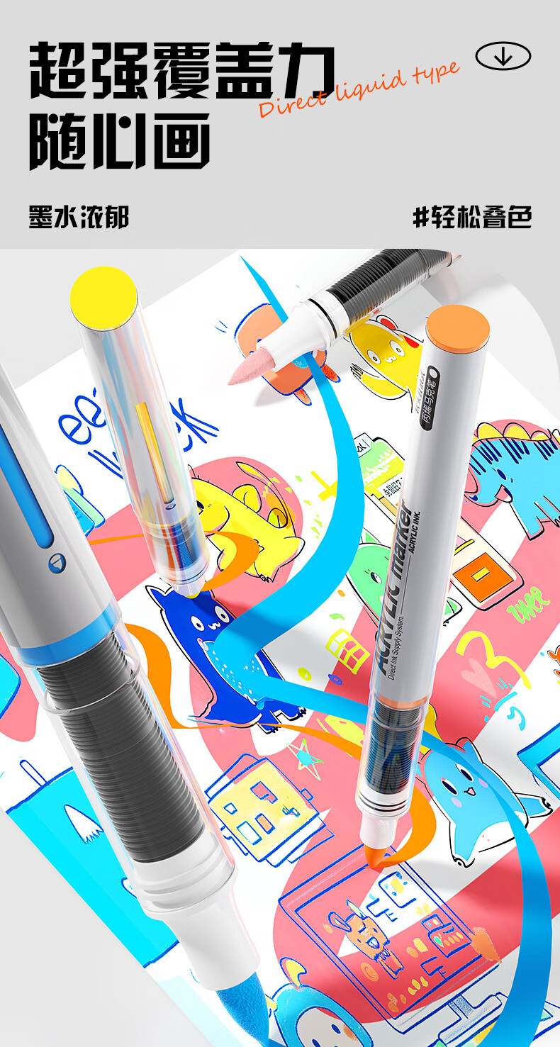 晨光(M&G)文具直液式丙烯马克笔36色软头学生儿童叠盒可水洗画笔记号笔荧光笔手绘 生日礼物 APMT80P0