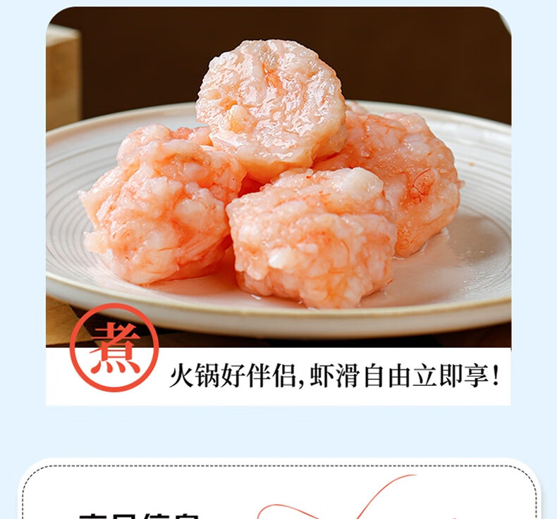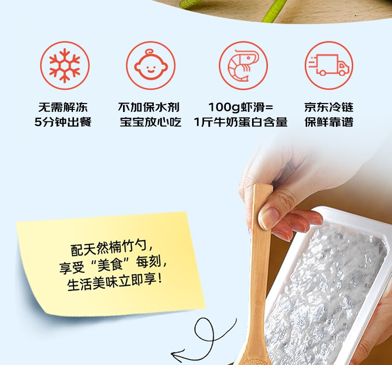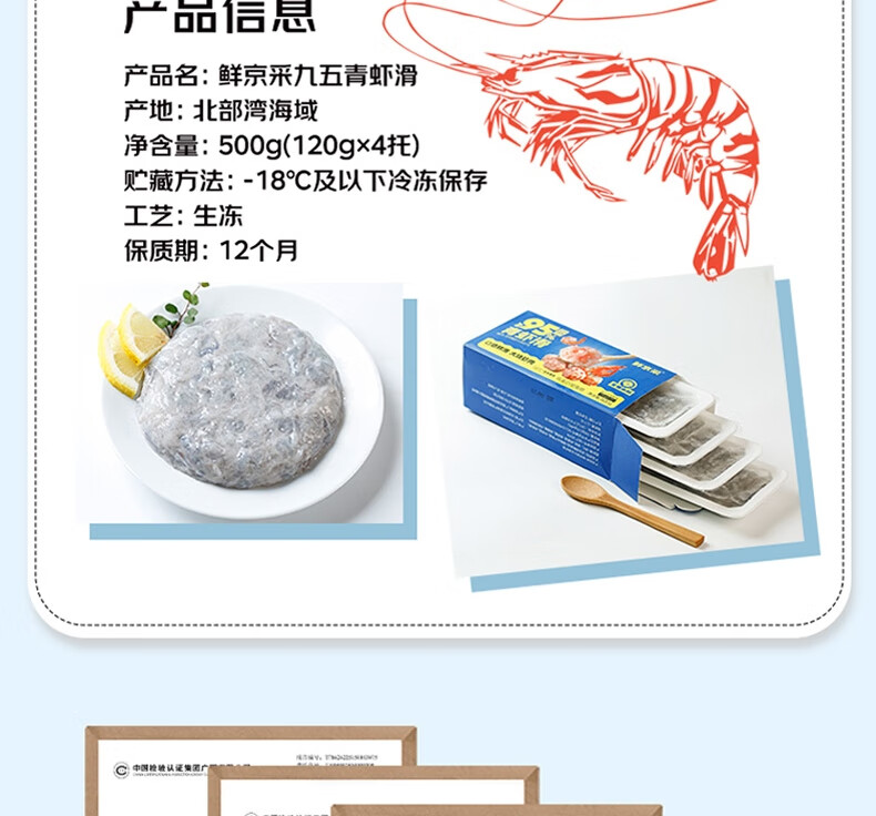 鲜京采 【无保水剂】虾含量 95%北海青虾滑 500g盒装 火锅食材 源头直发