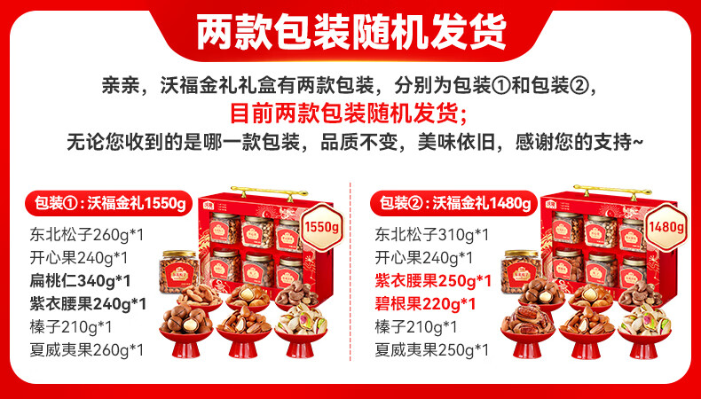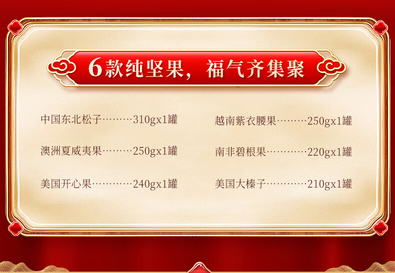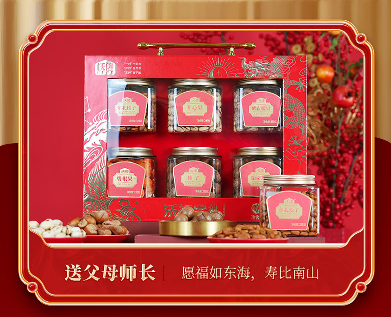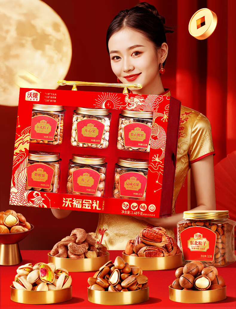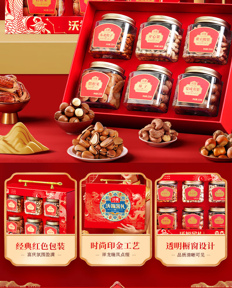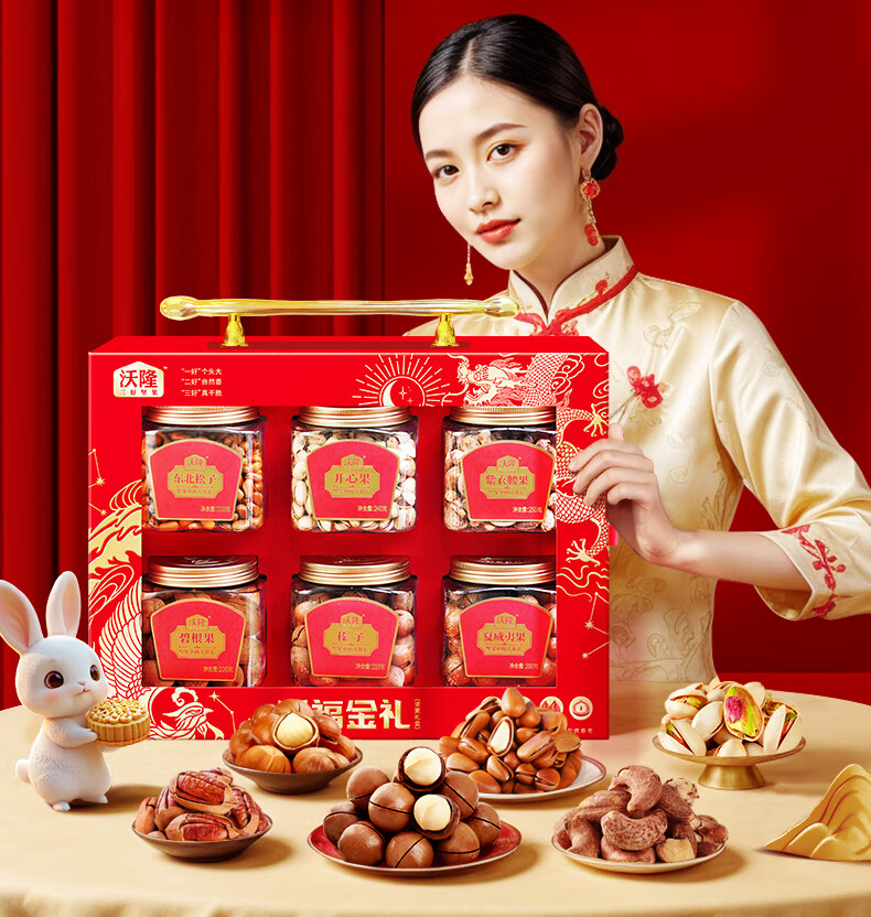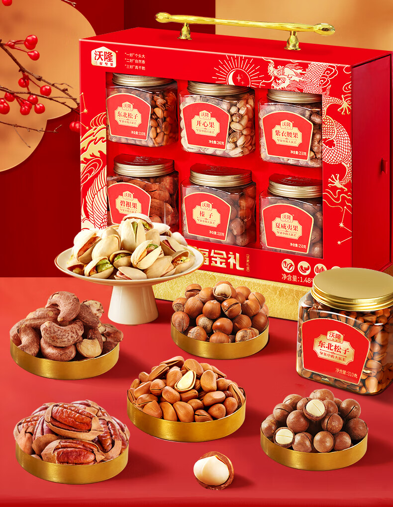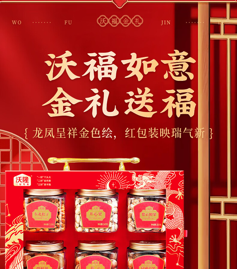 沃隆沃福金礼高端纯坚果礼盒6罐装1480g商务送礼干果炒货节日礼盒